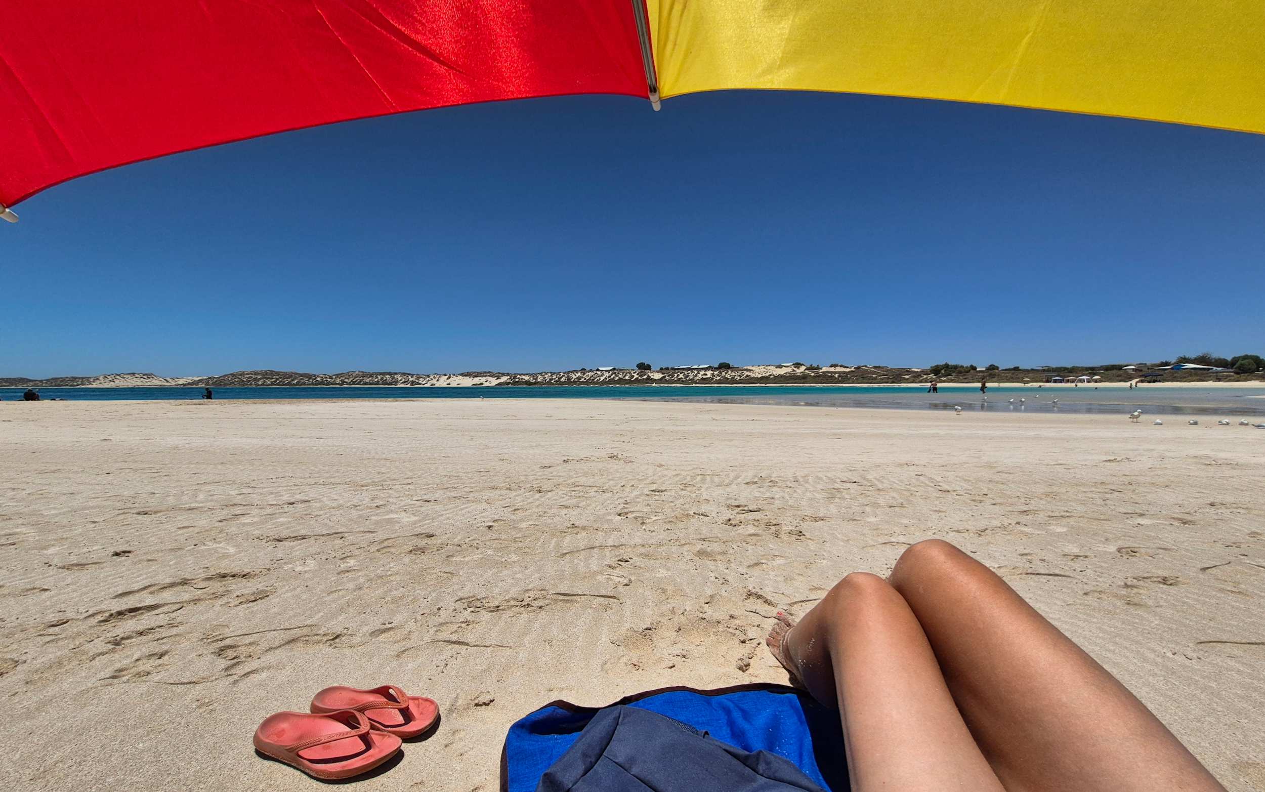 Im Augenblick sitzen wir in Denham, Verwaltungssitz und einzige Ortschaft des 'Shire (Bezirk) of Shark Bay' (UNESCO-Welterbe), gleichzeitig westlichste Gemeinde Australiens mit etwas mehr als 600 Einwohner, in einem angenehmen Café, haben zum Frühstück Fischbrötchen (gute Lachsbagels) gegessen und wie immer die größten Becher 'Flat white' (Ulrike) und 'Latte' (Wilhelm) getrunken. So weit, so gut.