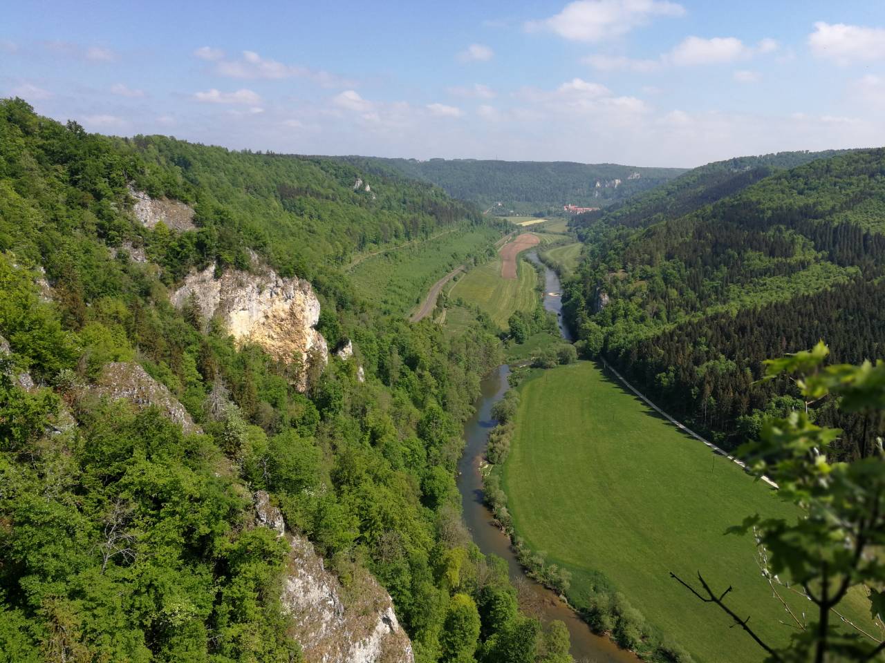 Wunderschönes oberes Donautal, im Hintergrund Kloster Beuron. Aufgenommen vom Knopfmacherfelsen. Ein Tipp von Beate und Robert, in deren schönen Zuhause