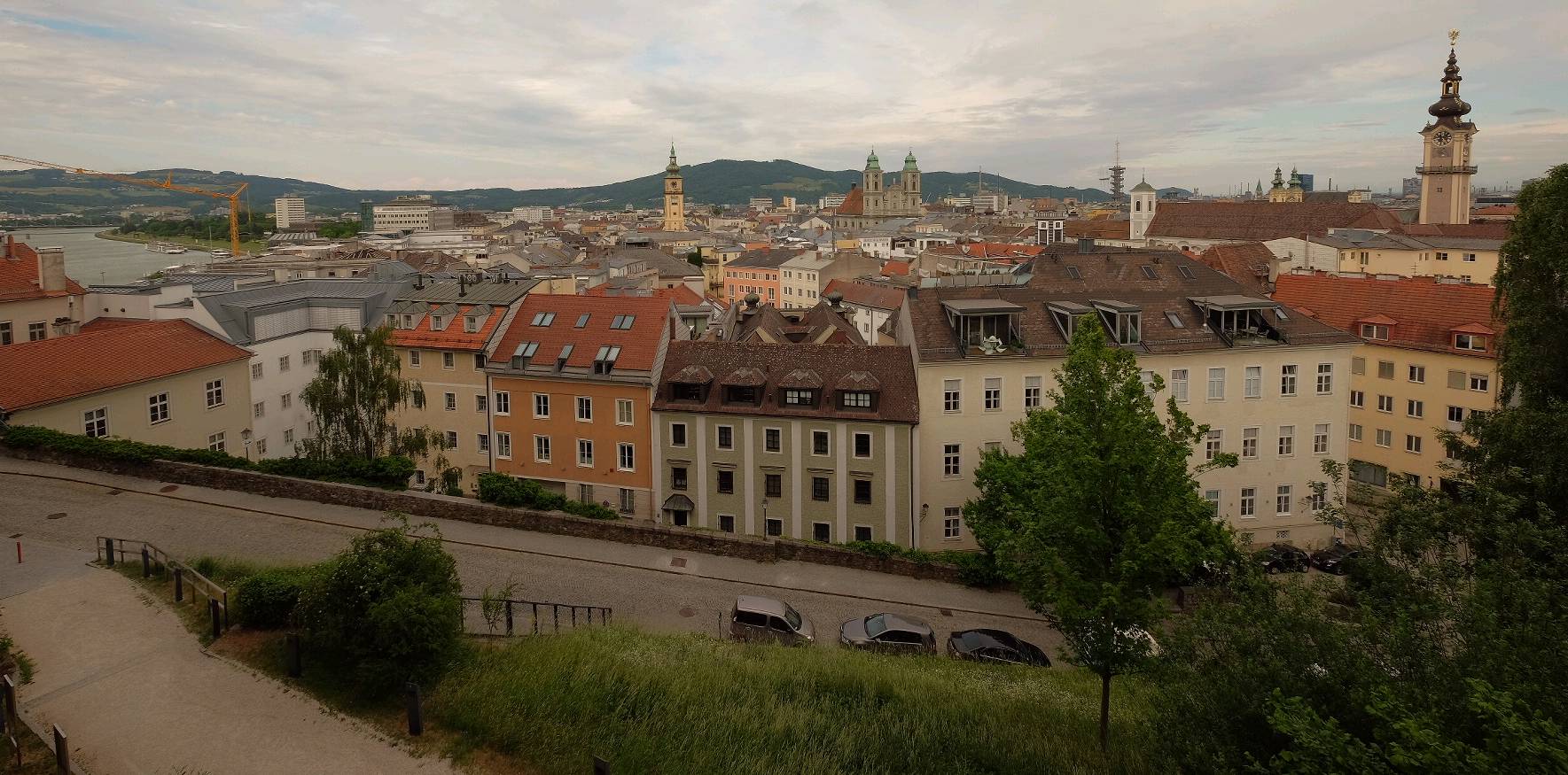 Stadtrundgang in Linz mit Besuch der größten Kirche Österreichs, dem Maria-Empfängnis-Dom (bis zu 20.000 Gläubige passen rein). Blick auf Linz vom Schloss aus.