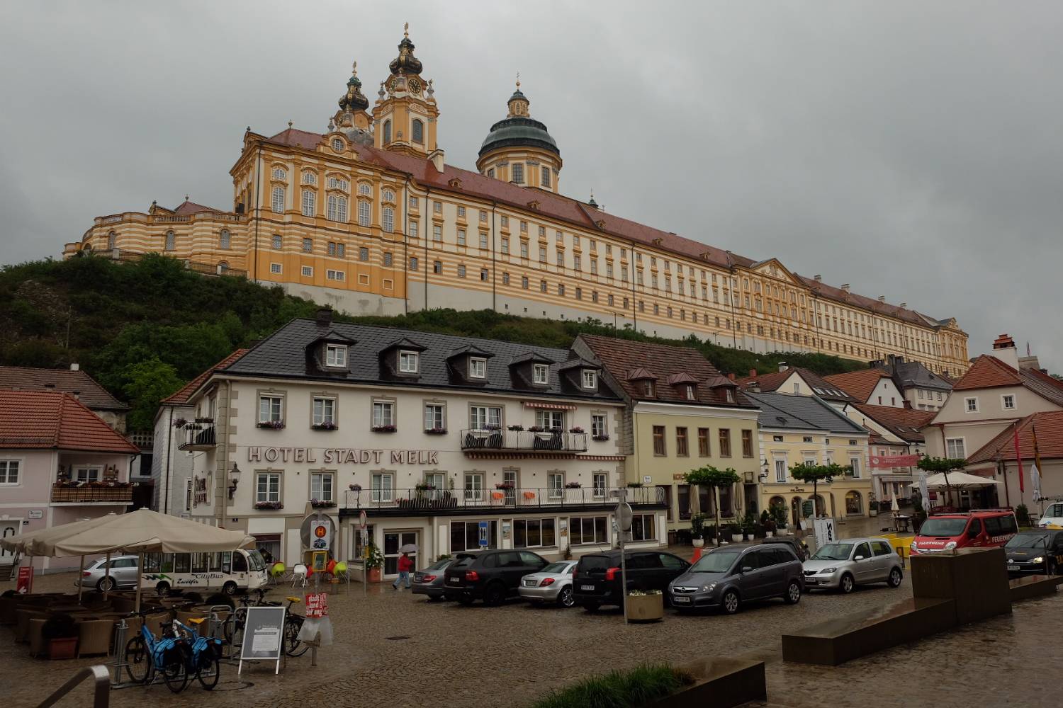 Bei Dauerregen: Das gigantische Kloster Melk.