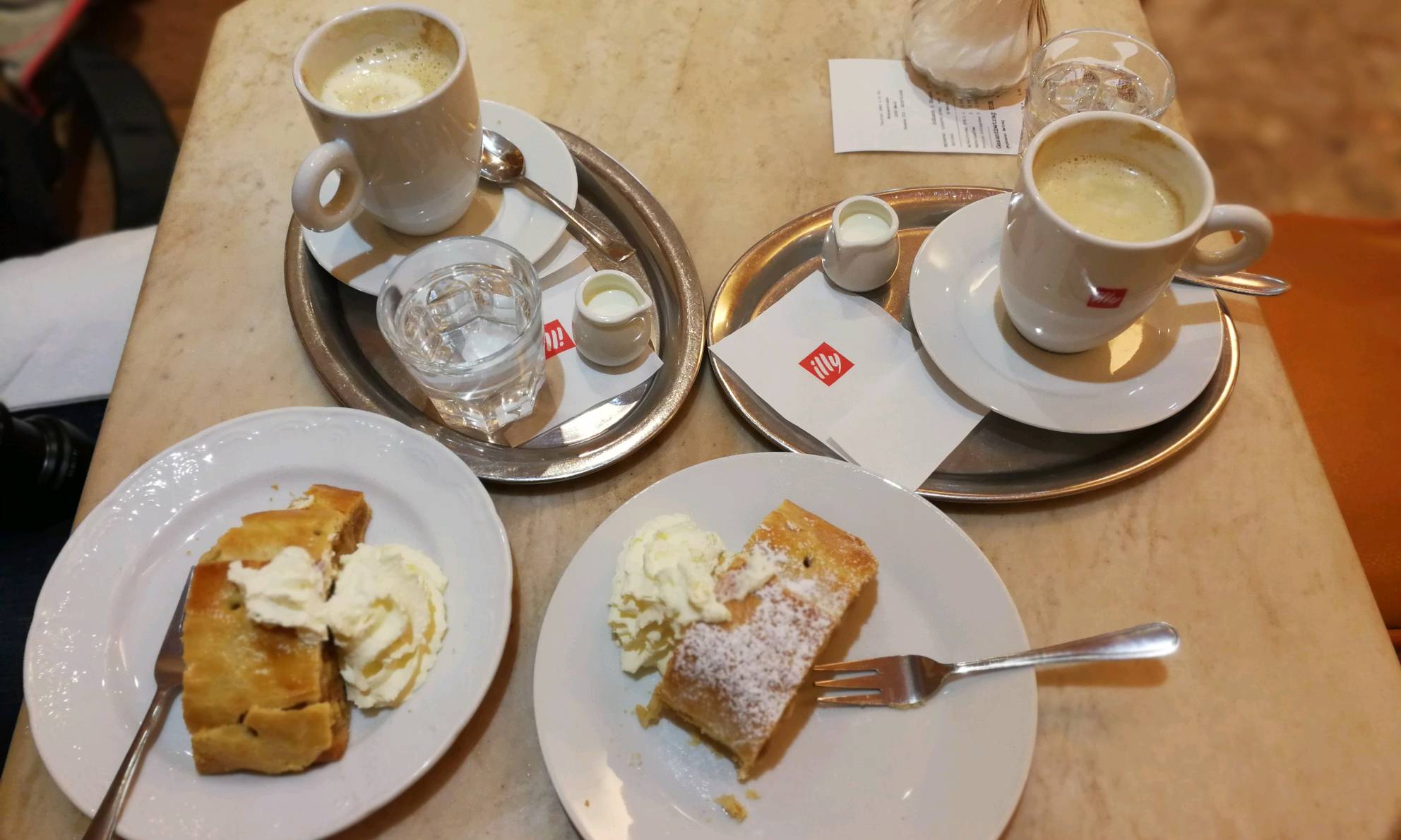 Draußen Regen, drinnen Kaffee und leckerer Strudel.
