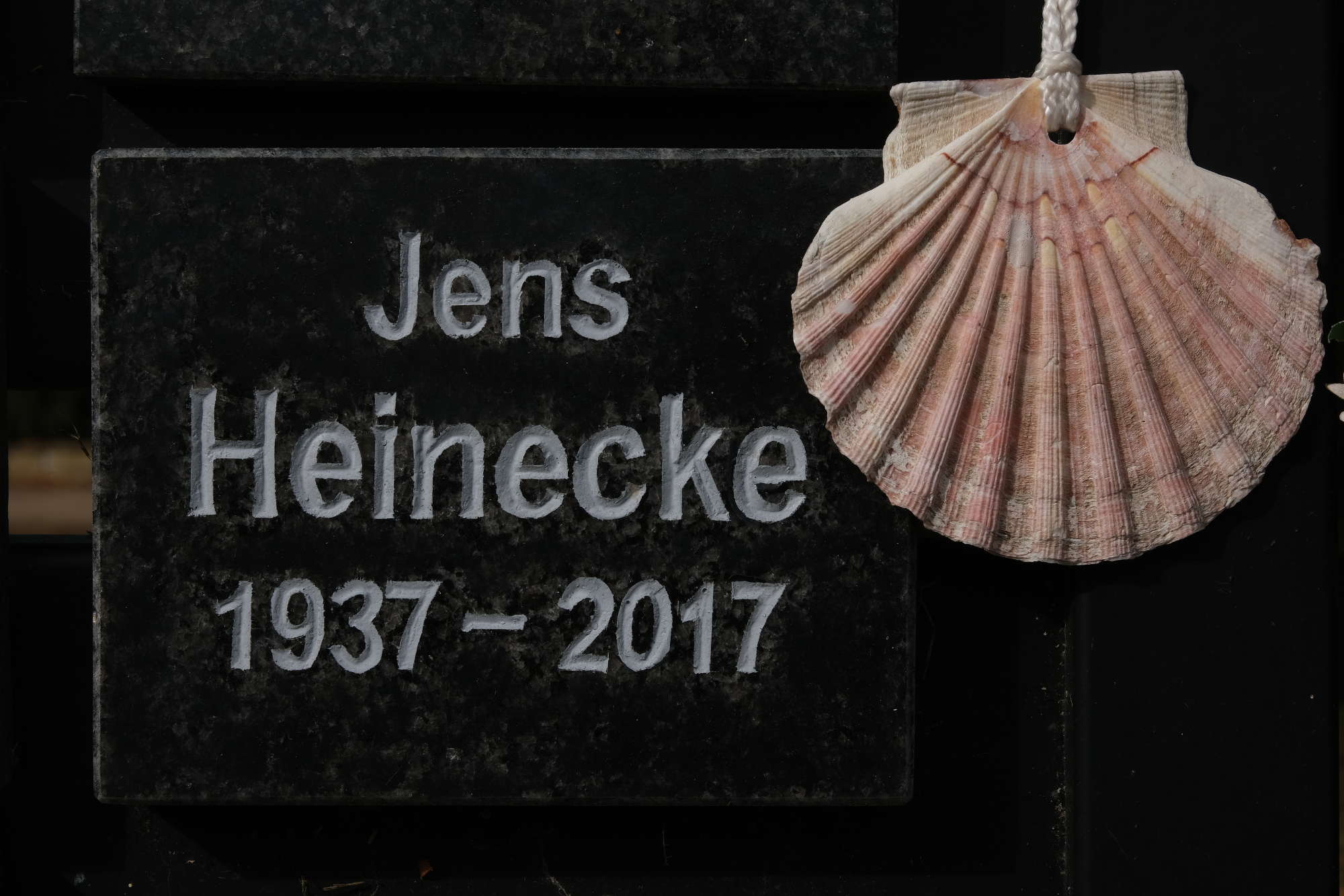 Wir fahren nach Bleckede, wo wir das Grab von Jens besuchen: Seine Jakobsmuschel, die sich Wilhelm ausgeliehen und nach Santiago de