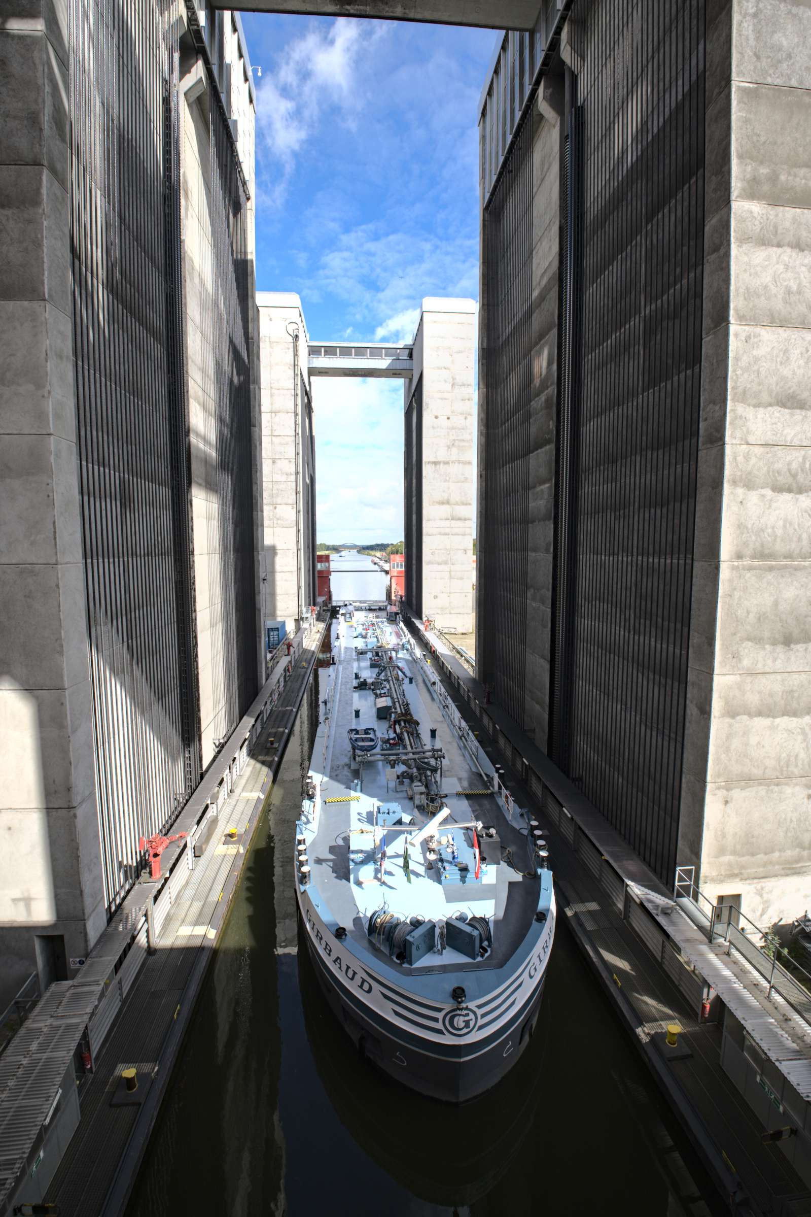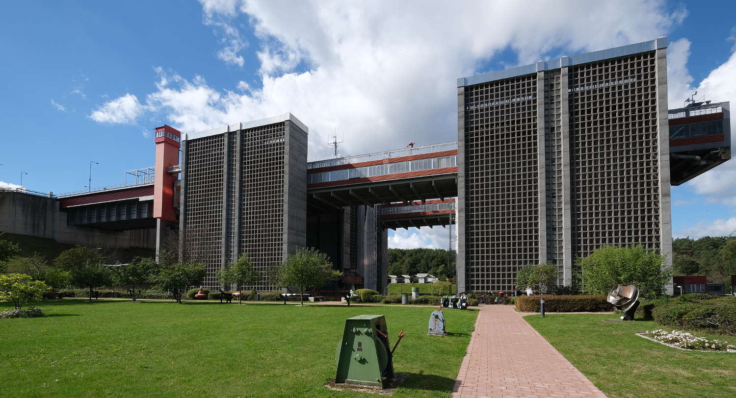 Das in der Nähe befindliche beeindruckende Schiffshebewerk, das Schiffe (bis 100 m Länge und 12 m Breite) 38 m nach oben oder unten hievt, besichtigen wir natürlich.