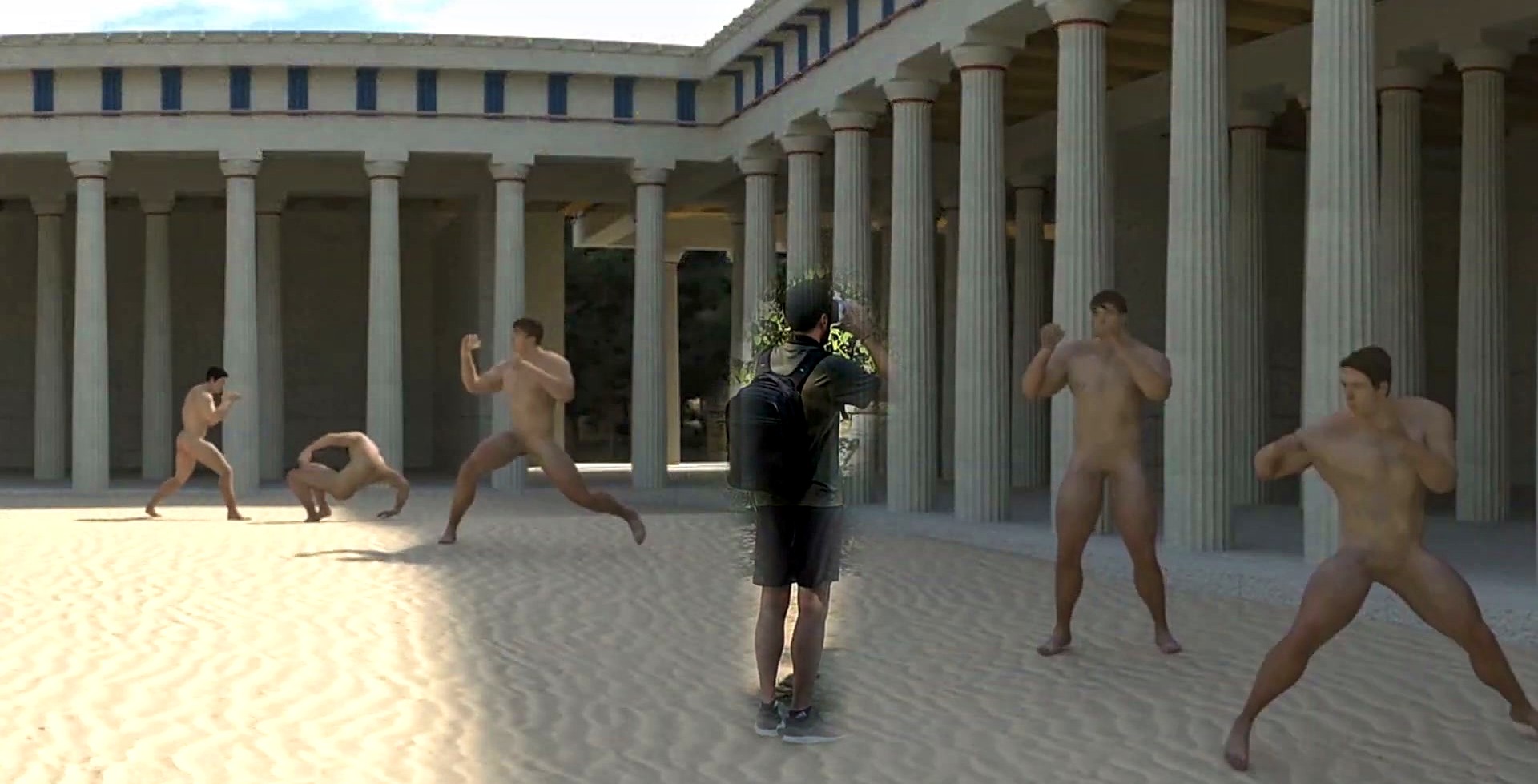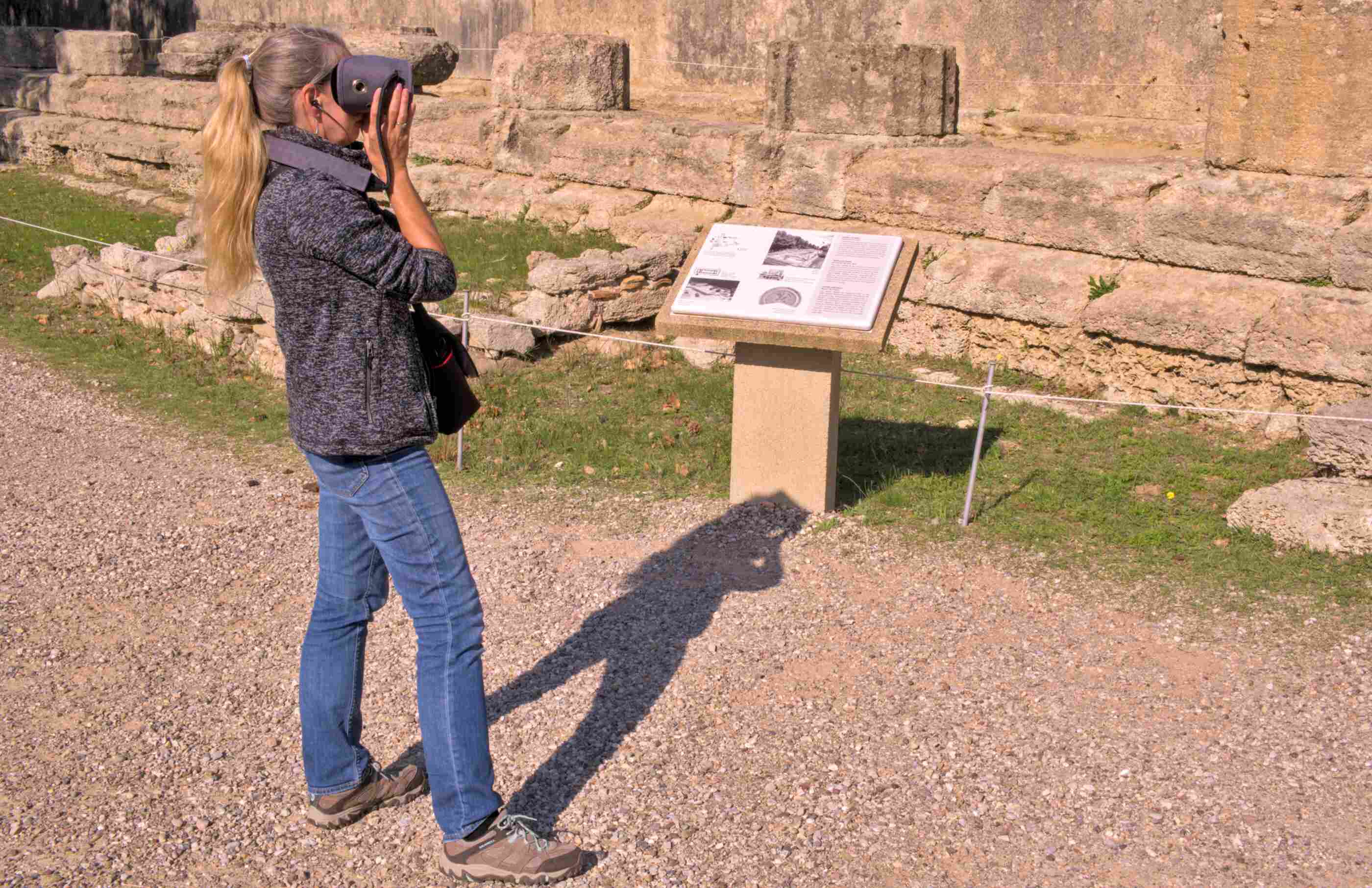 Eine VR-Brille beschert uns fantastische Einsichten in die Anlage. Wo sonst nur Trümmer herumliegen und man viel Vorstellungskraft braucht, entstehen komplette, belebte Gebäude.