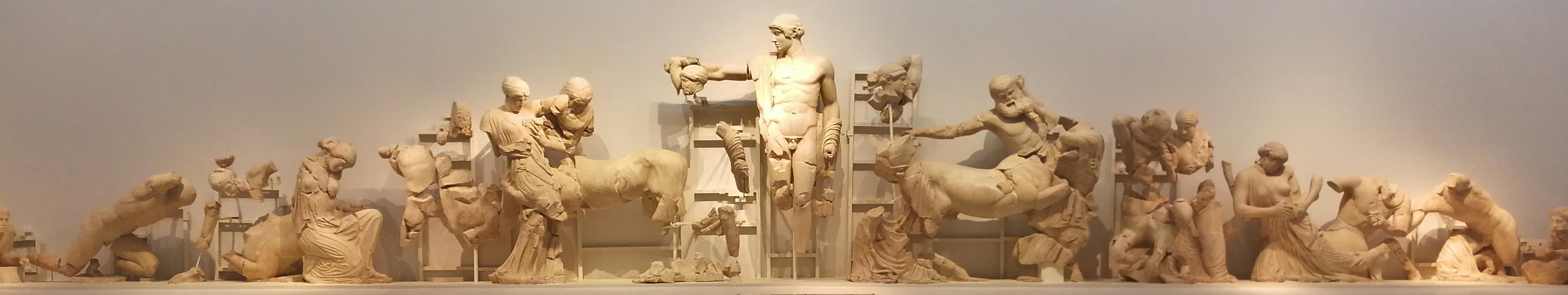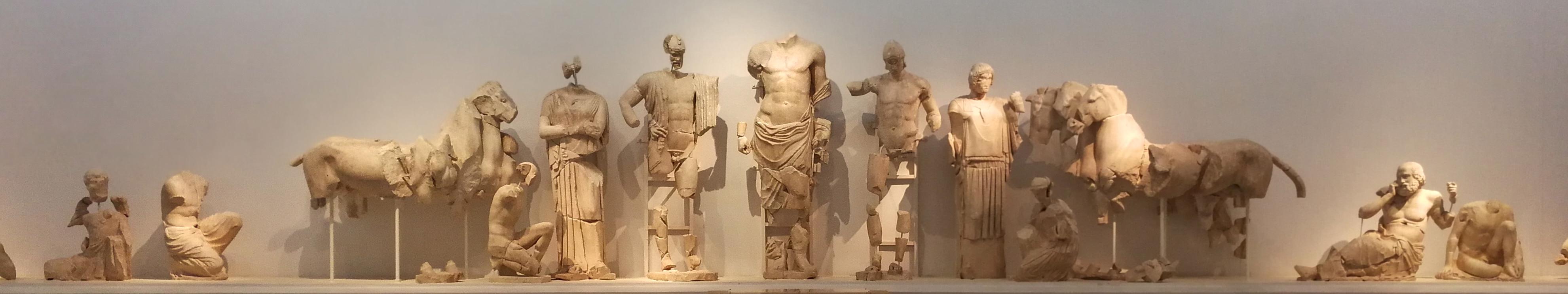 Die Giebelskulpturen des Zeustempels, dem dominierenden Bau im Olympischen Heiligtum. Er wurde im 5. Jahrhundert v. Chr. errichtet.