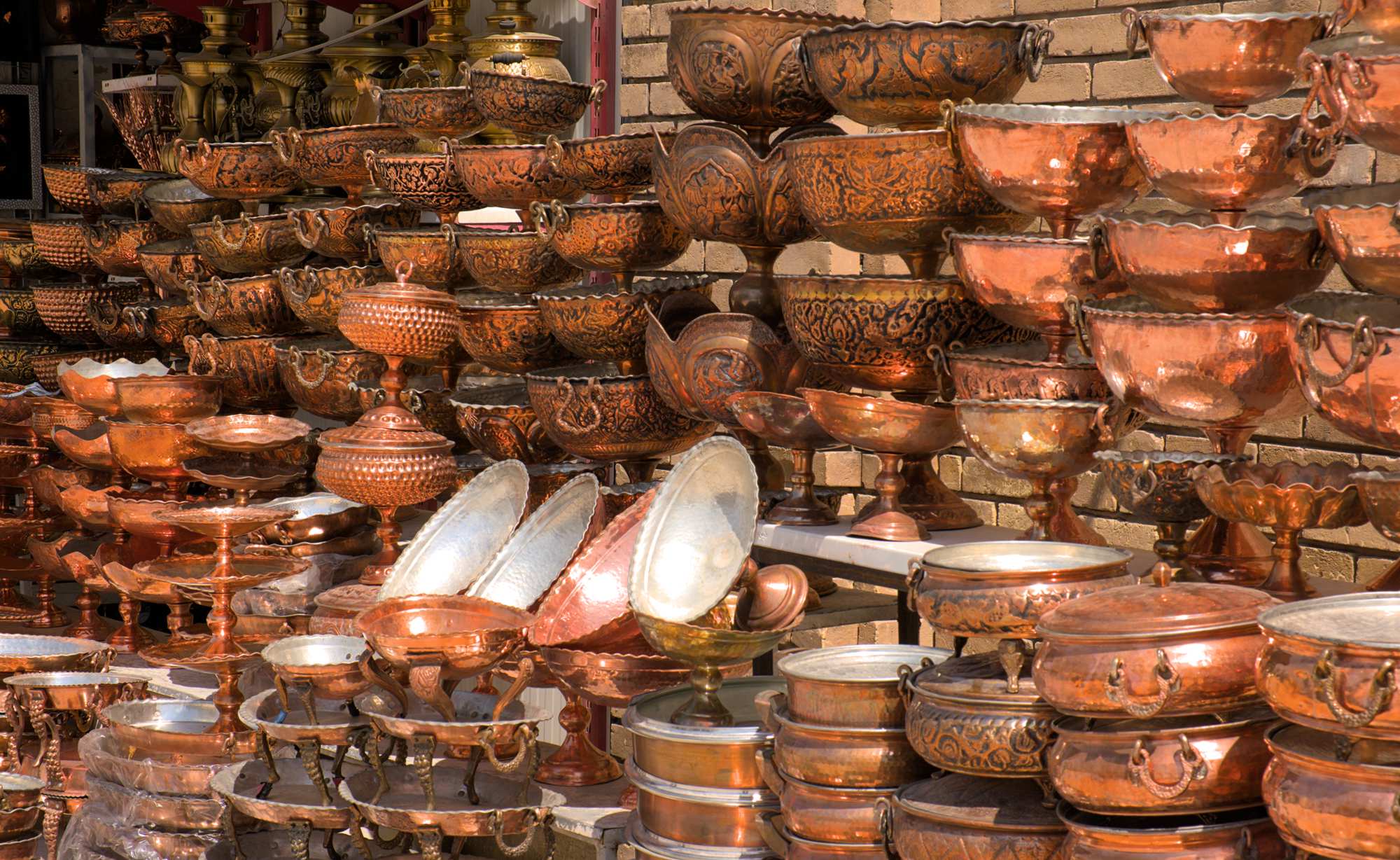 Auch in Kerman besuchen wir den Basar. Hier gibt es besonders viele Kupferwaren im Angebot.