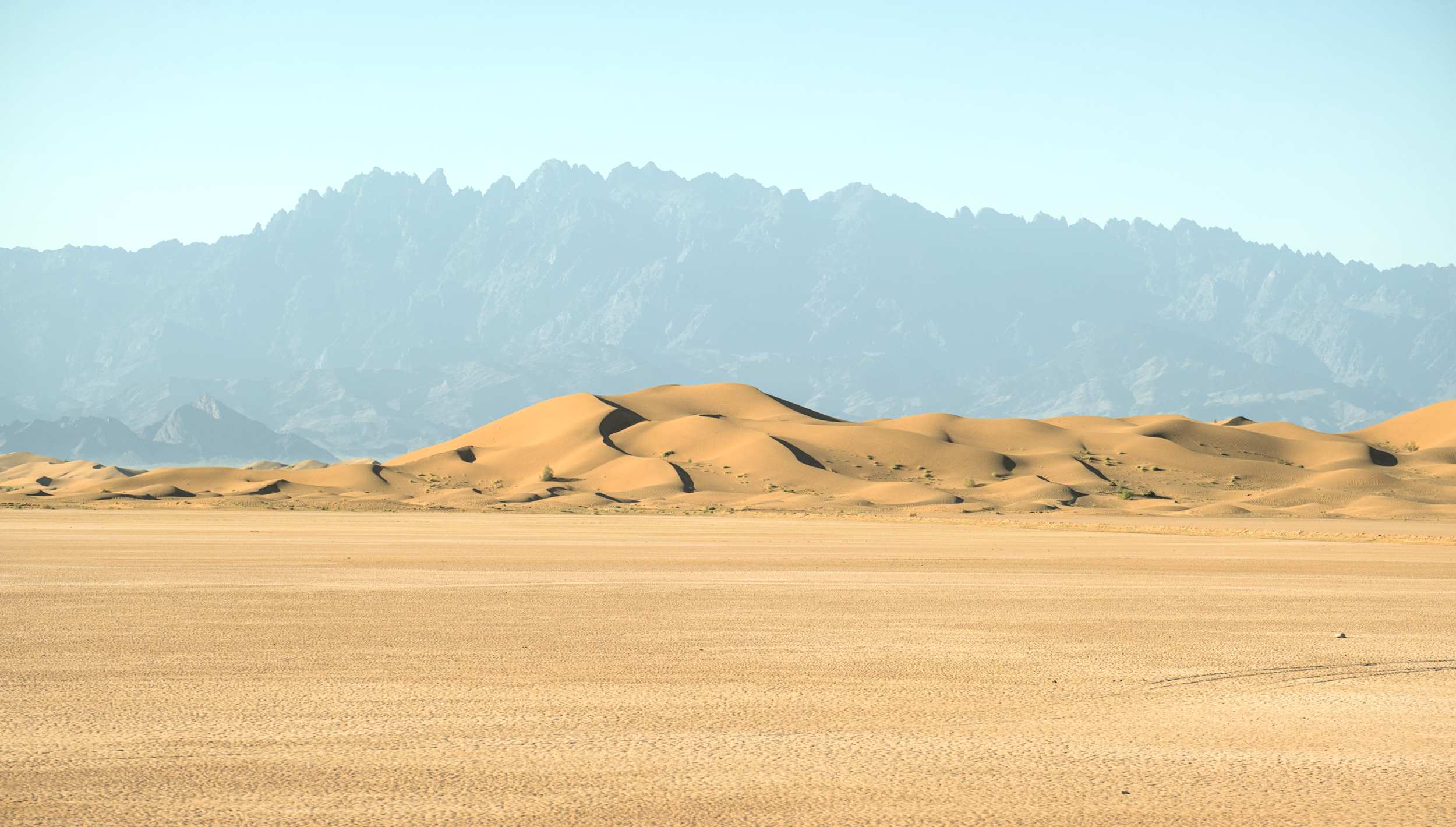 Auf unserer Weiterfahrt Richtung Grenze nach Pakistan queren wir am Rande die Wüste Lut, UNESCO Weltnaturerbe und einer der heißesten Orte der Erde. Hier wurden am Boden schon 78°C gemessen, bei uns sind es heute jedoch "nur" etwa 45°C Lufttemperatur.