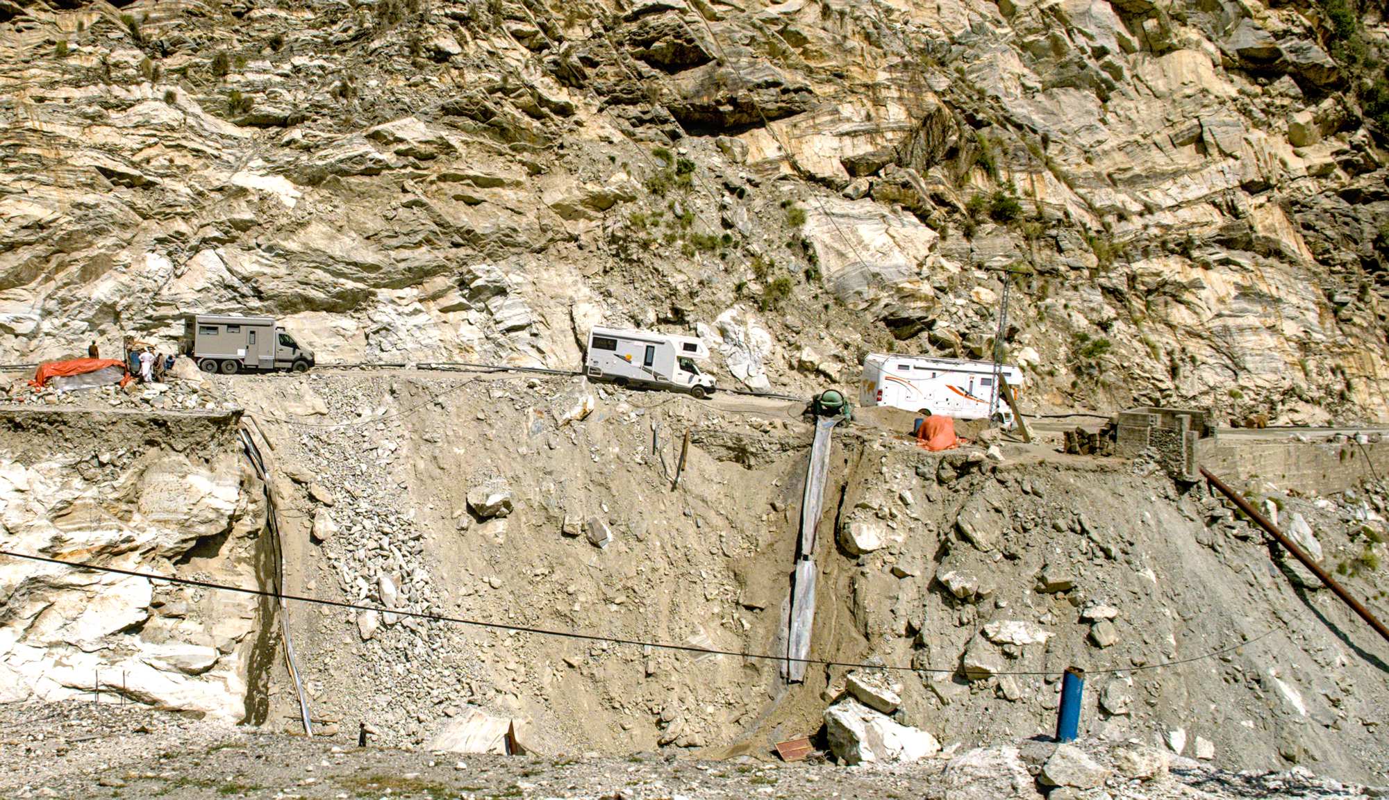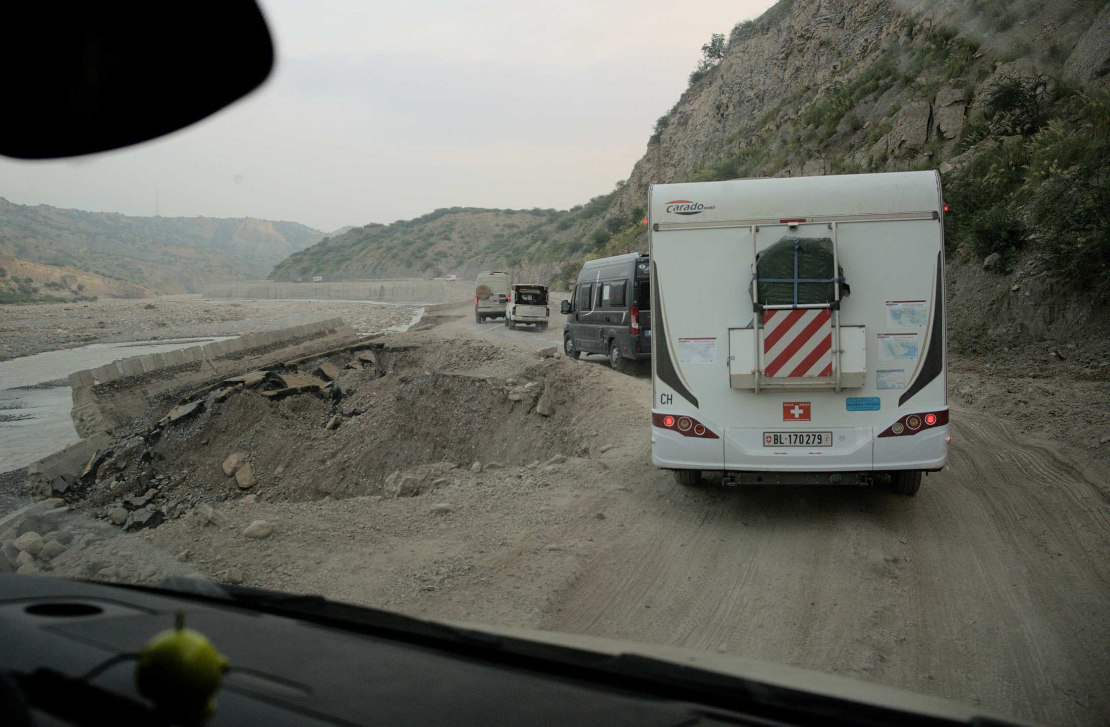 Durch Steinschlag ist die Straße in den zum Teil engen Schluchten sehr in Mitleidenschaft gezogen.