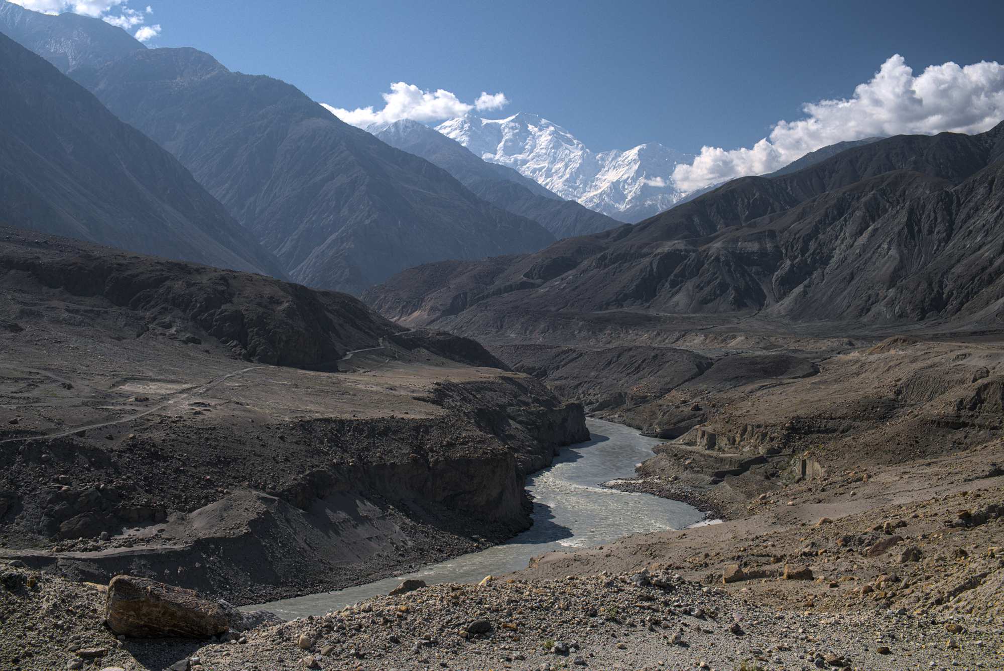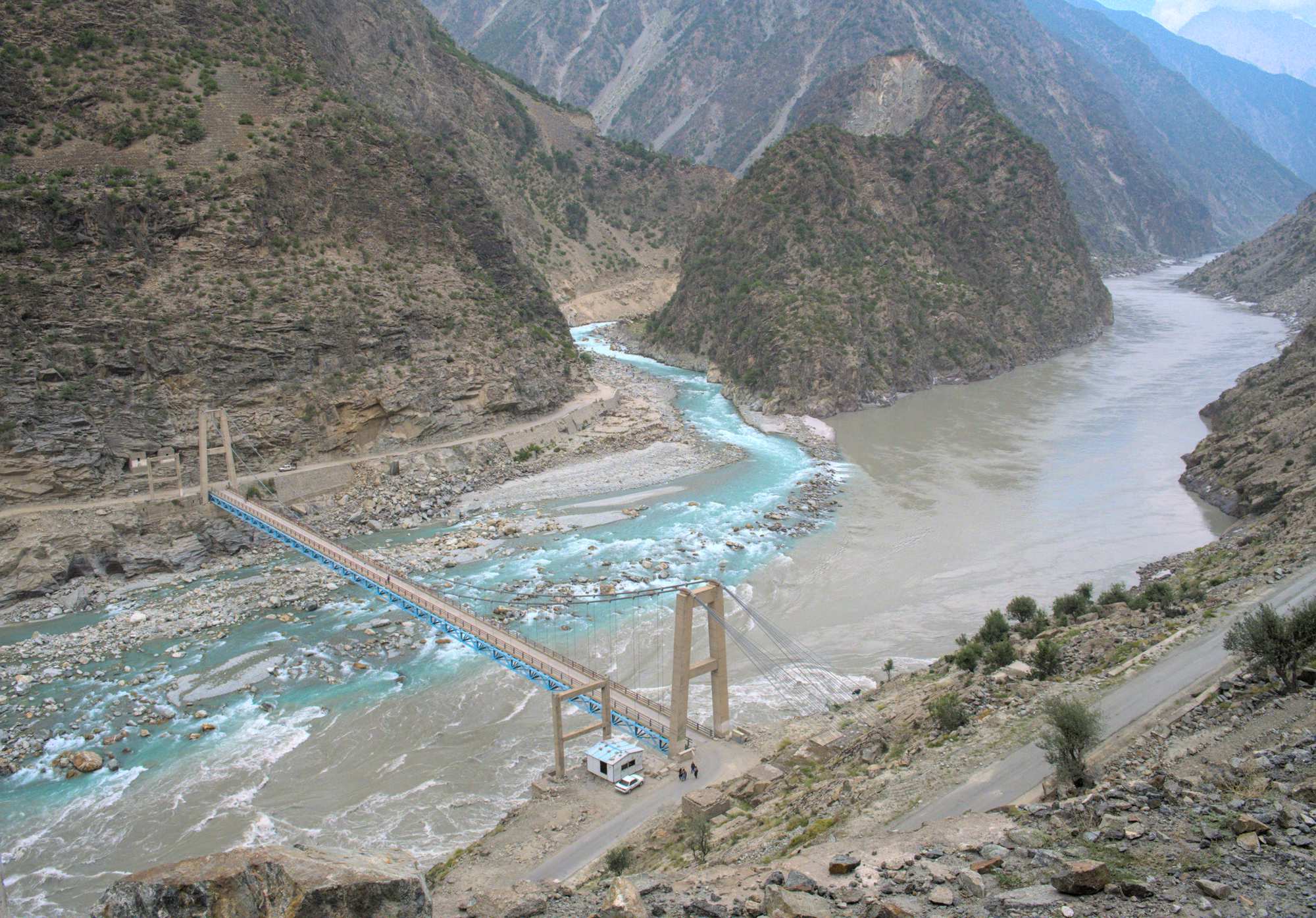 Der Indus bekommt hier aus einem Seitental frisches Wasser.