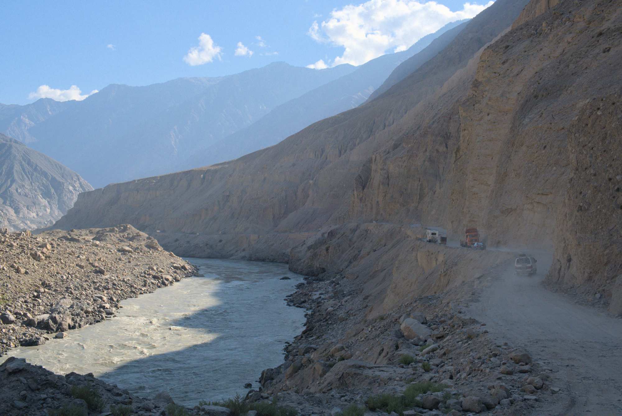 Straßenverhältnisse im Industal vor Gilgit.