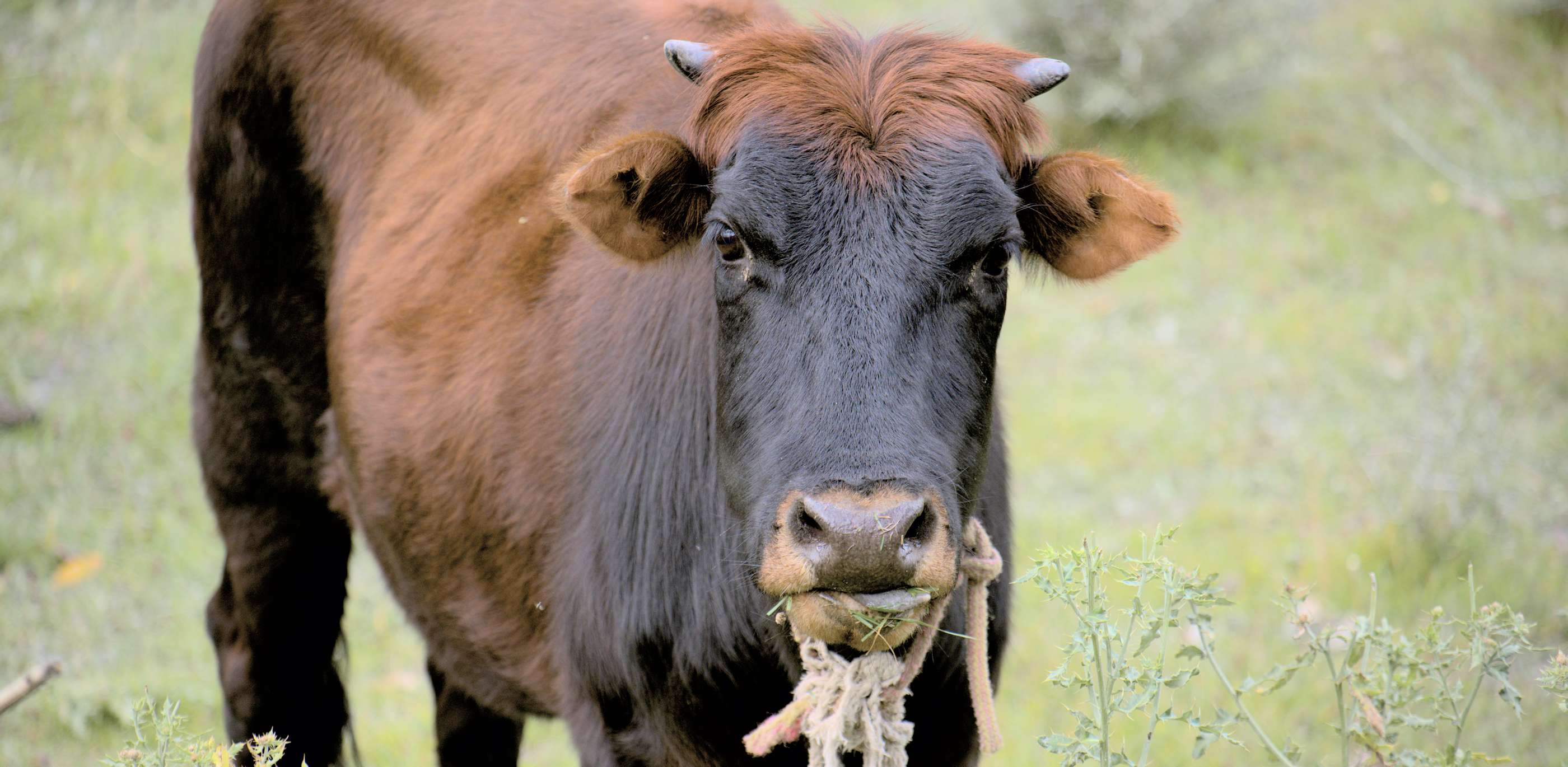 Diese chic frisierte Kuh kommt Murmel besuchen.
