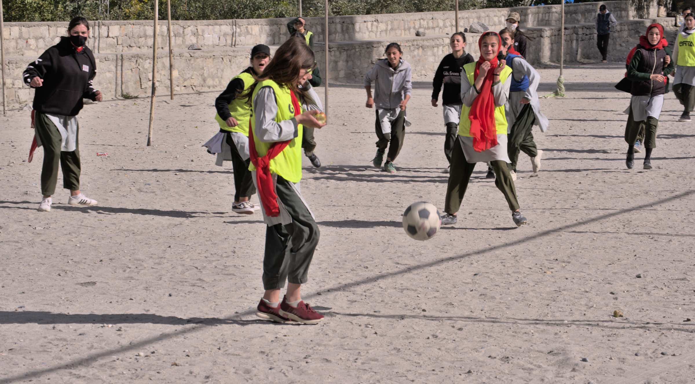 Auch die Mädchen spielen hier mit vollem Herzblut Fußball.
