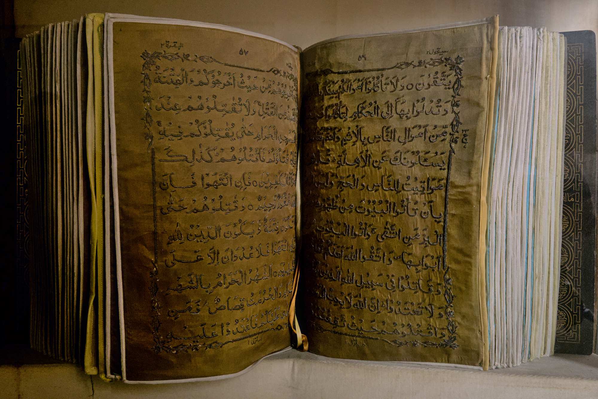 Dort in einem kleinen Museum: Bücher mit gestickter Schrift!