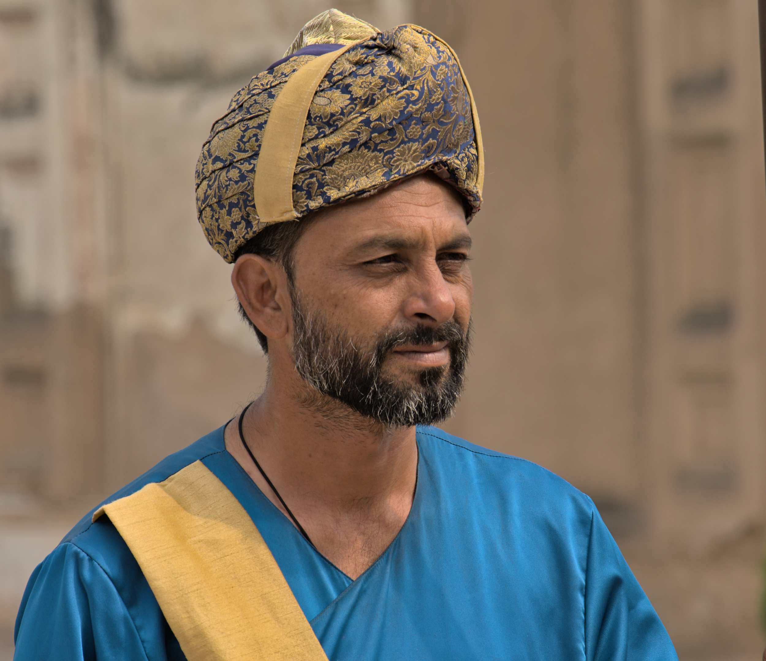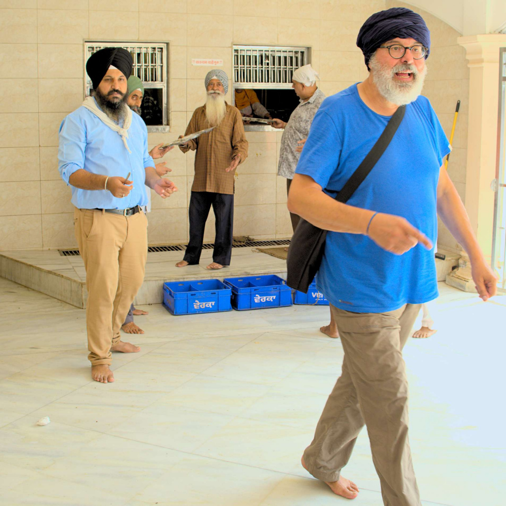 Der Tempel und die Küche dürfen nur barfuß und mit Kopfbedeckung betreten werden. Zwar selbst gebunden, aber nicht schlecht und der Bart passt auch. Zum Verwechseln...