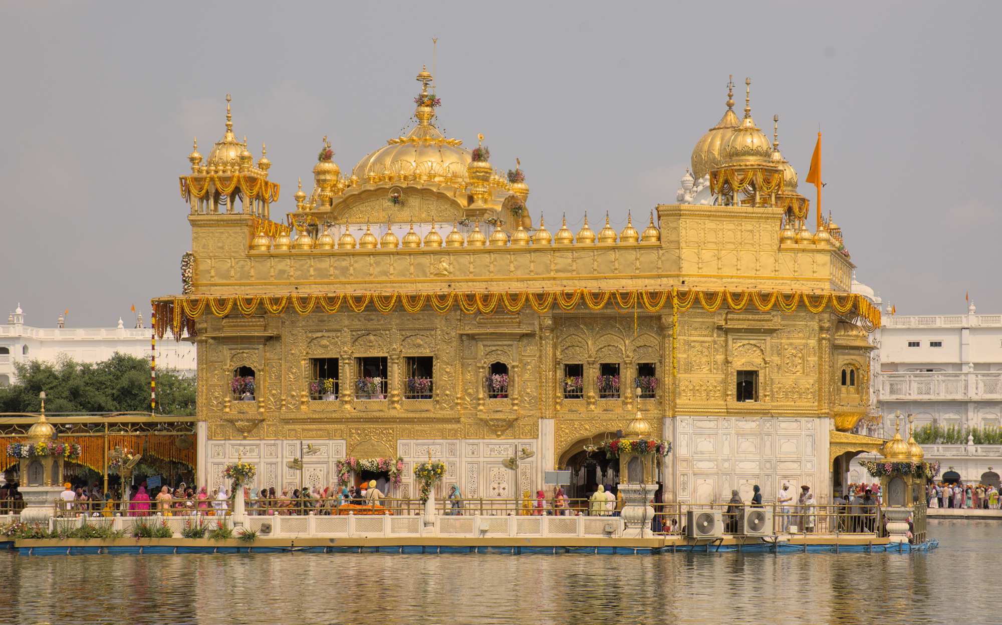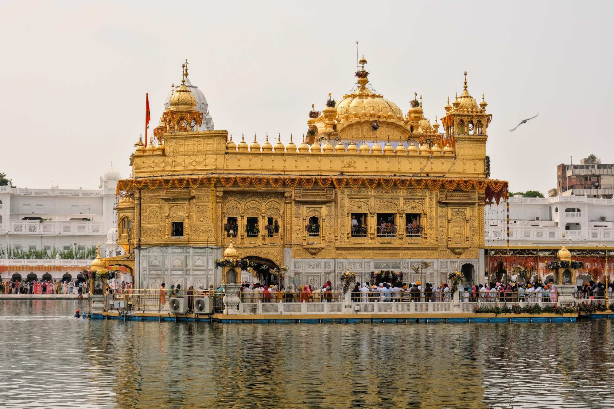In Amritsar befindet sich die heiligste Stätte der Sikhs, der goldene Tempel, in dem deren heiliges Buch aufbewahrt wird.