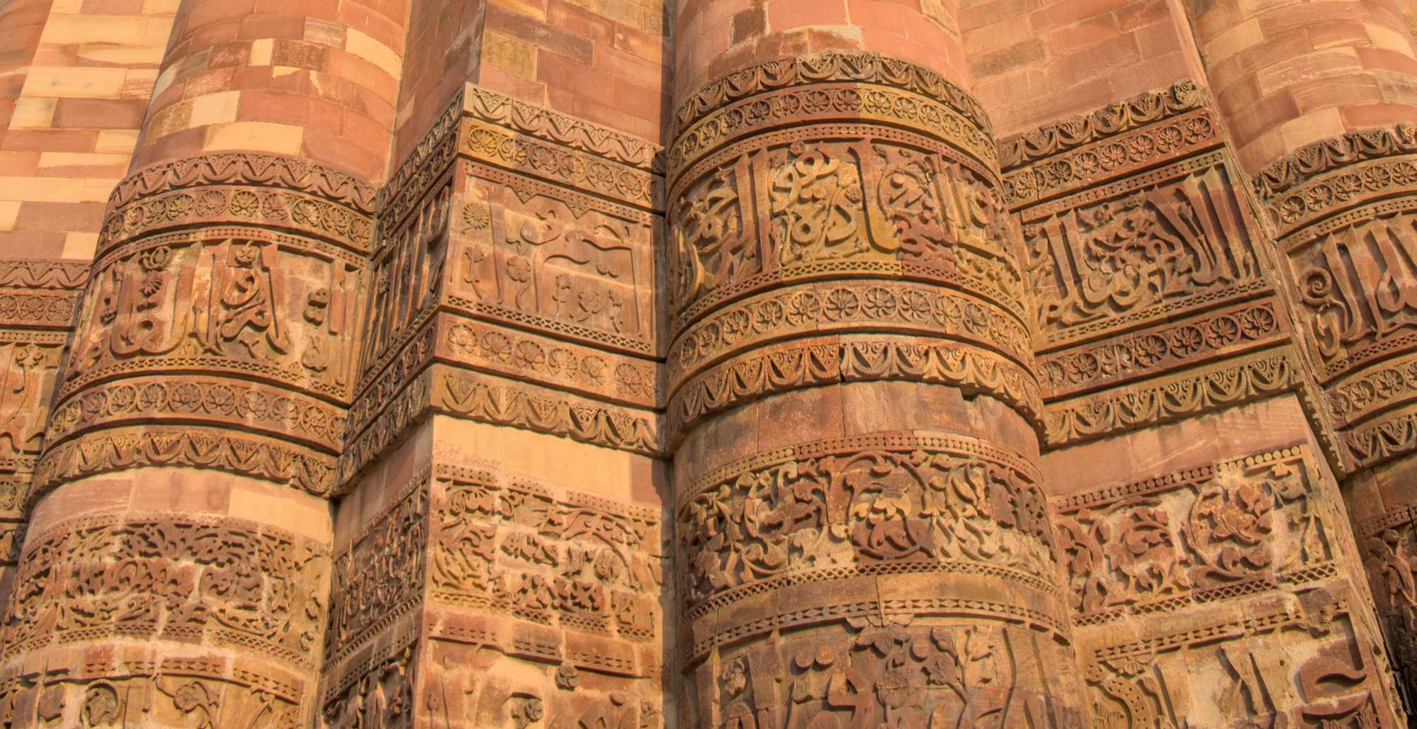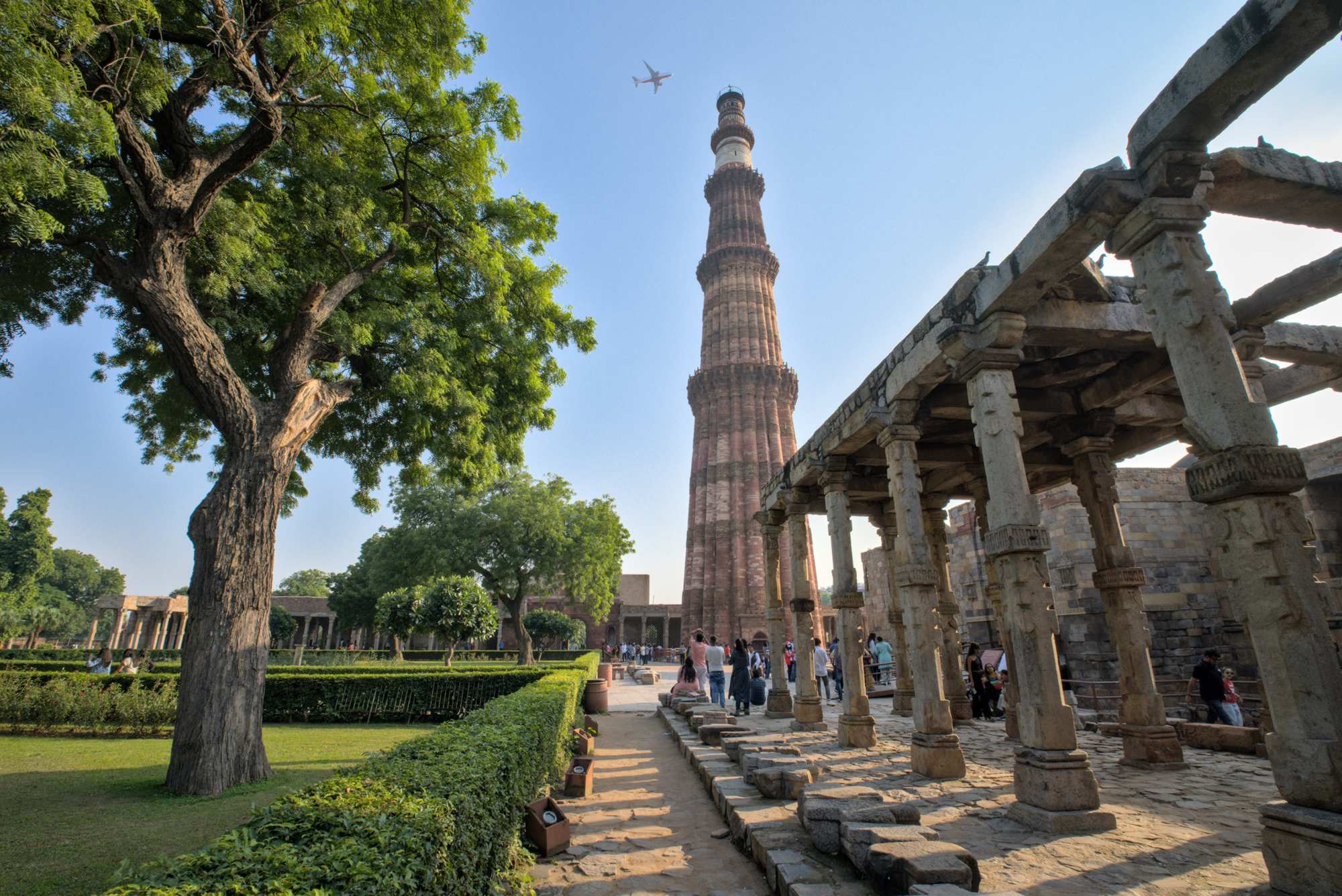 Das Qutb Minar(ett), fertiggestellt Anfang des 13. Jahrhunderts, gilt als frühes Meisterwerk der indo-islamischen Architektur und zählt mit 72 m zu den höchsten Turmbauten der islamischen Welt.