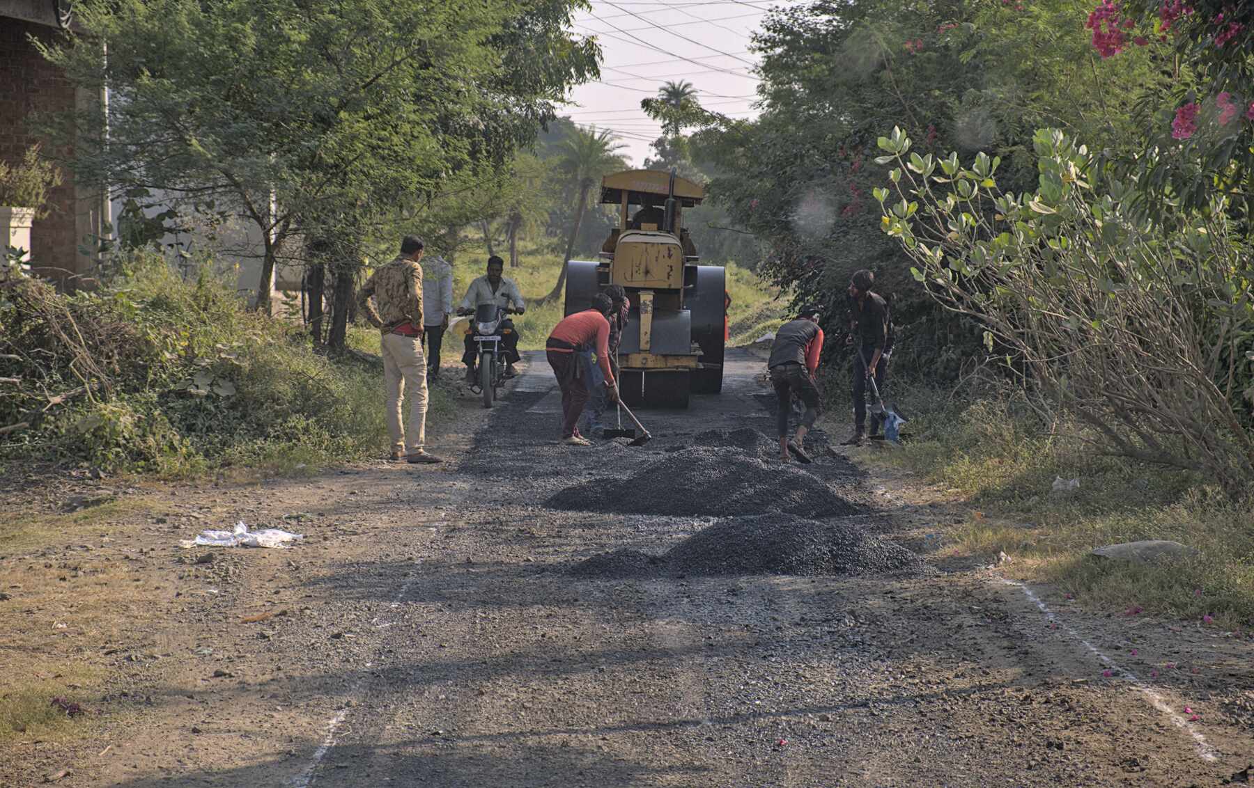 Noch bevor die Dampfwalze, ohne Dampf, ihre Arbeit verrichten durfte, müssen wir darüberfahren. Wir hätten gewartet.