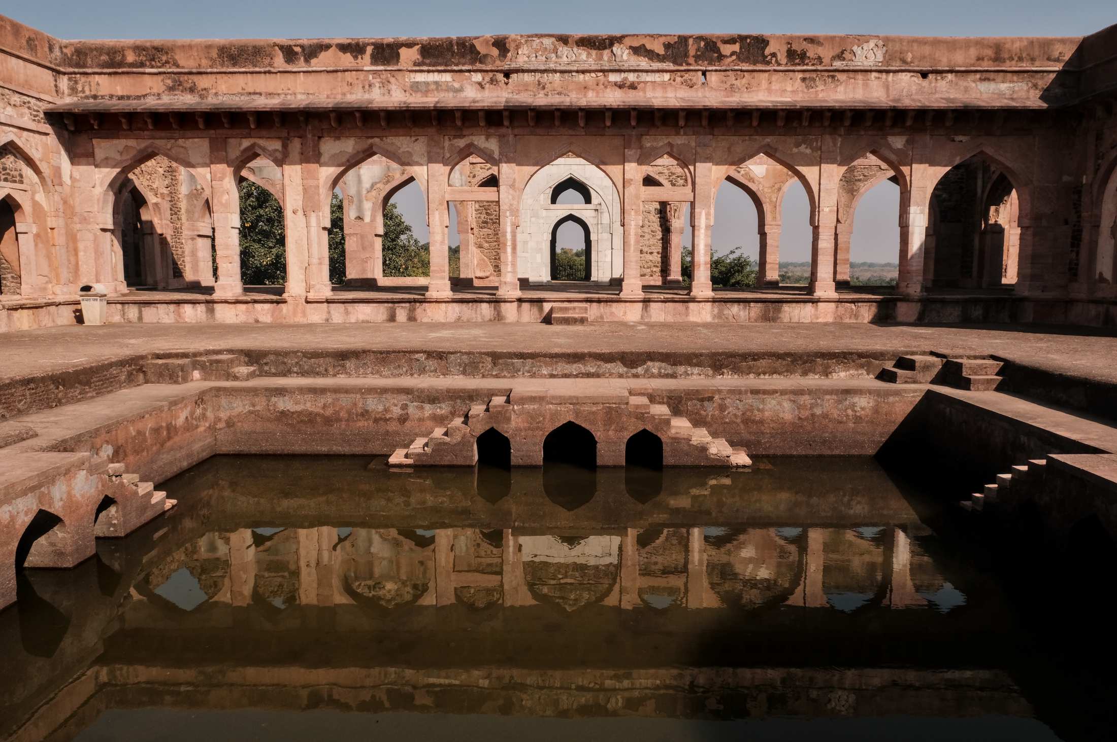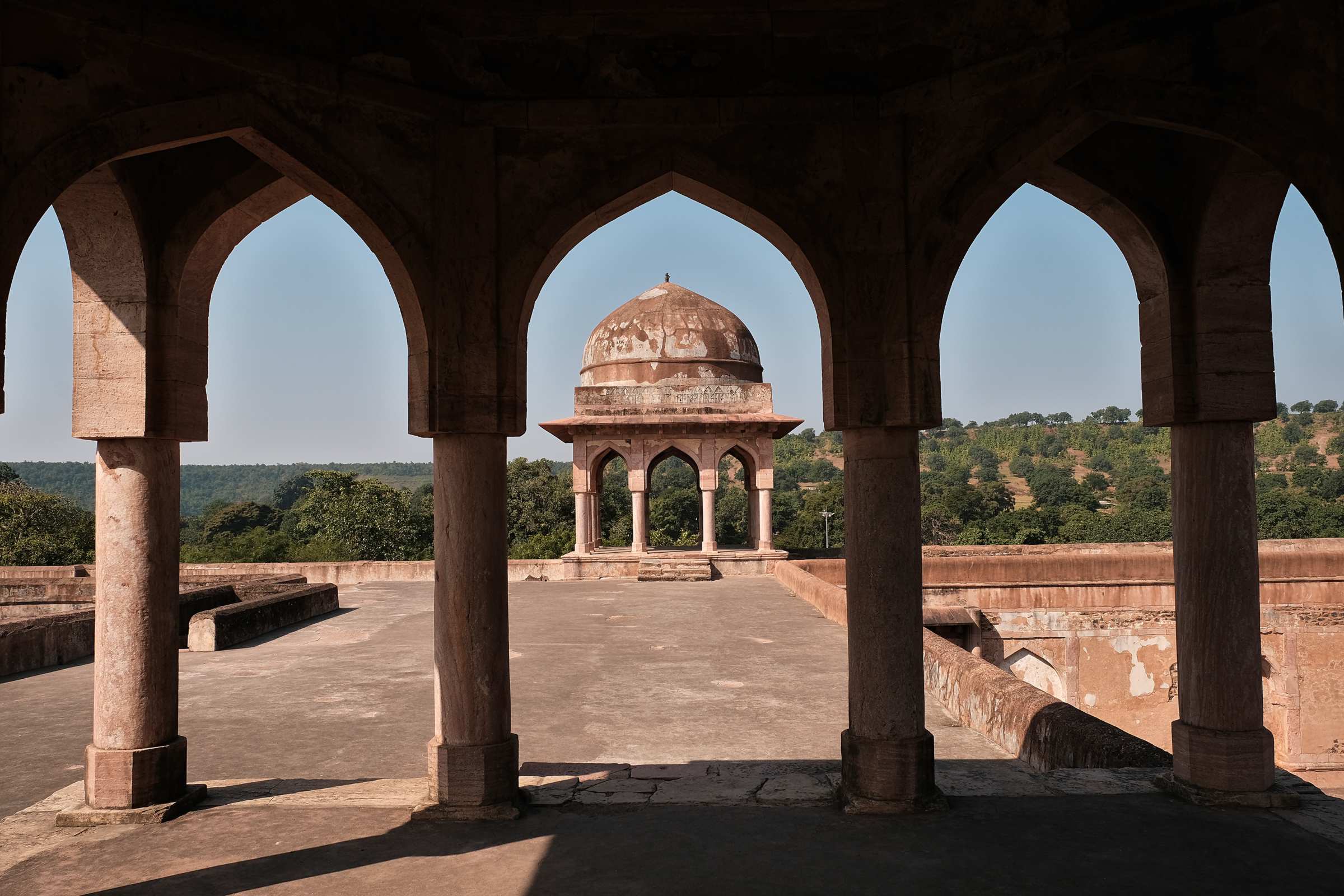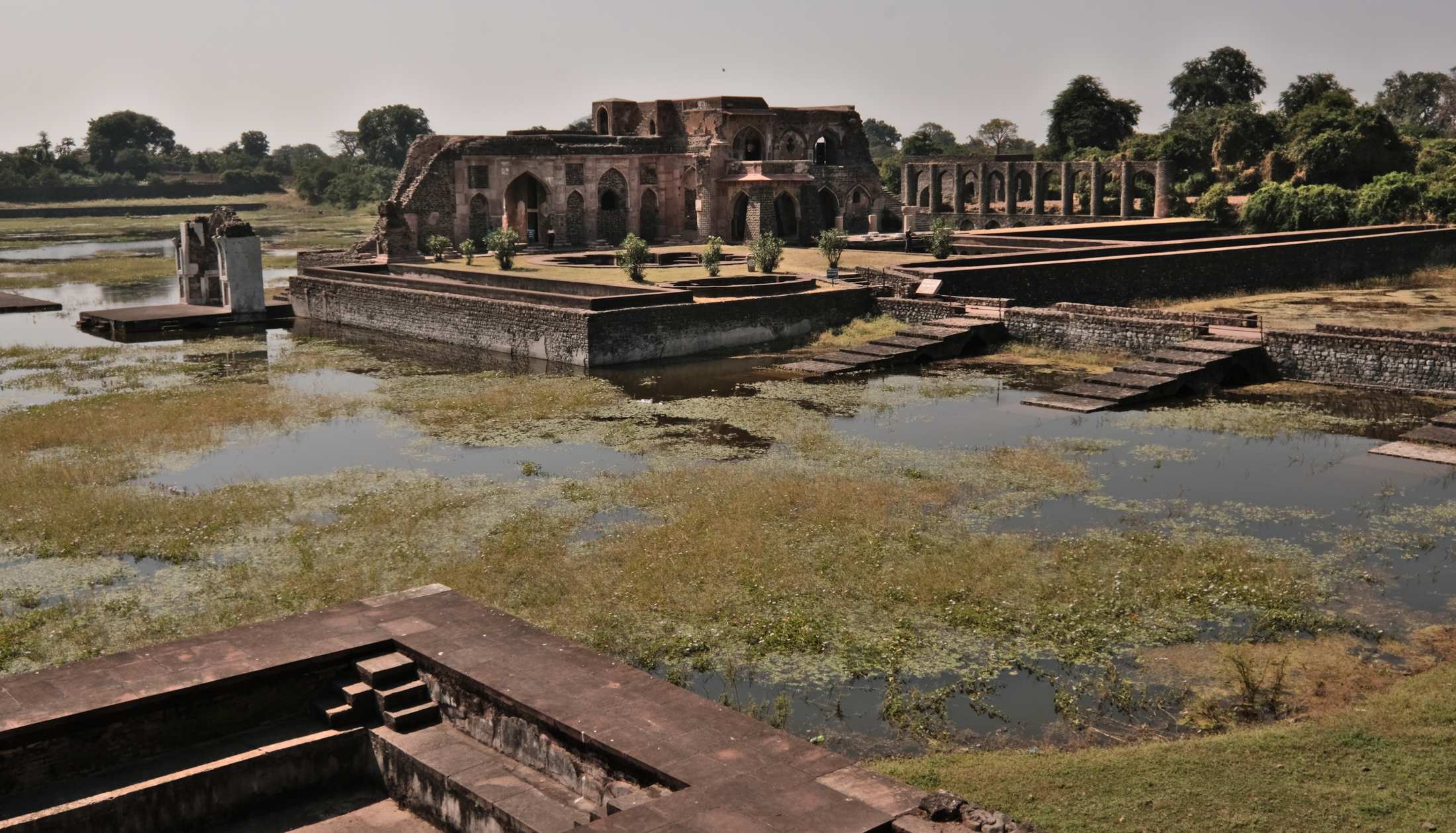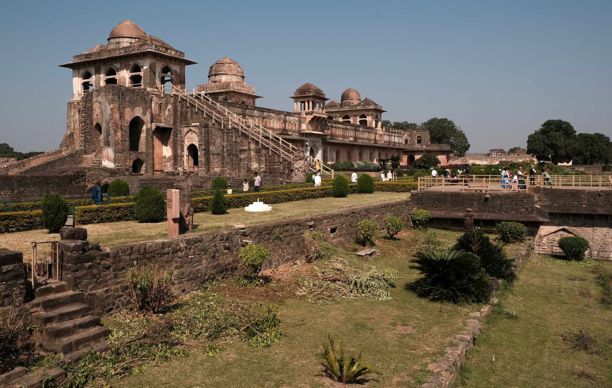 Die Ruinenstadt Mandu wurde um 1400 von einem muslimischen Prinzen gegründet, hatte eine 40 km lange Befestigungsmauer, deren Eingangstore zum Teil noch erhalten sind. 12 künstliche Seen wurden als Wasserspeicher angelegt und viele prachtvolle Bauten und Mausoleen errichtet.
