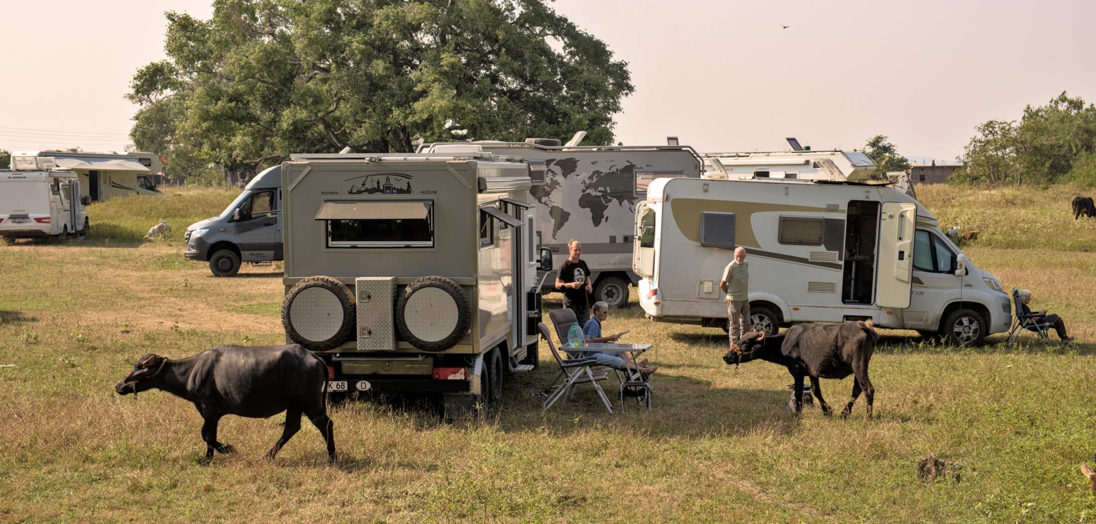 Auf unserem Stellplatz besuchen uns Wasserbüffel und nebenan steht dieser mächtige Baobab.