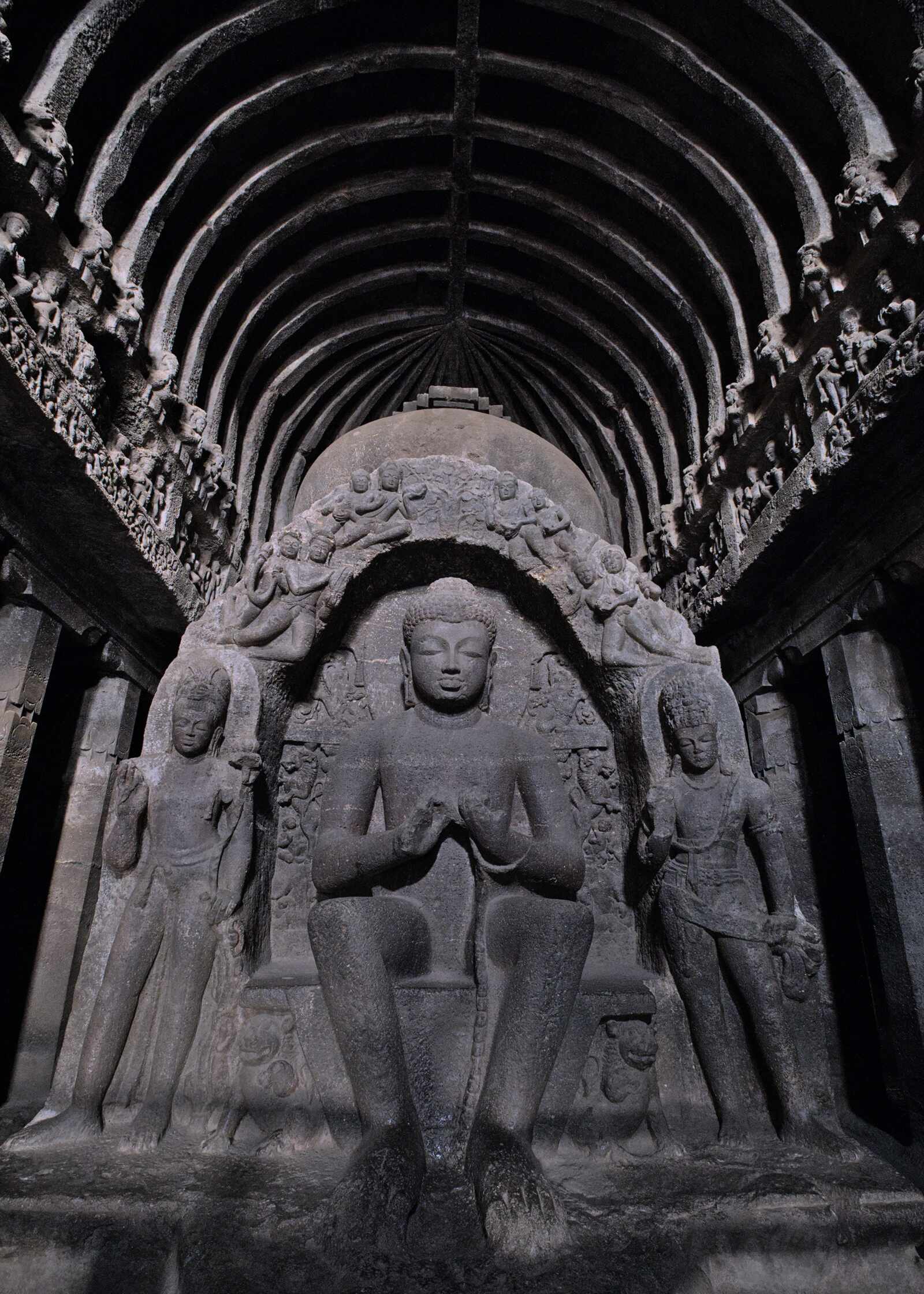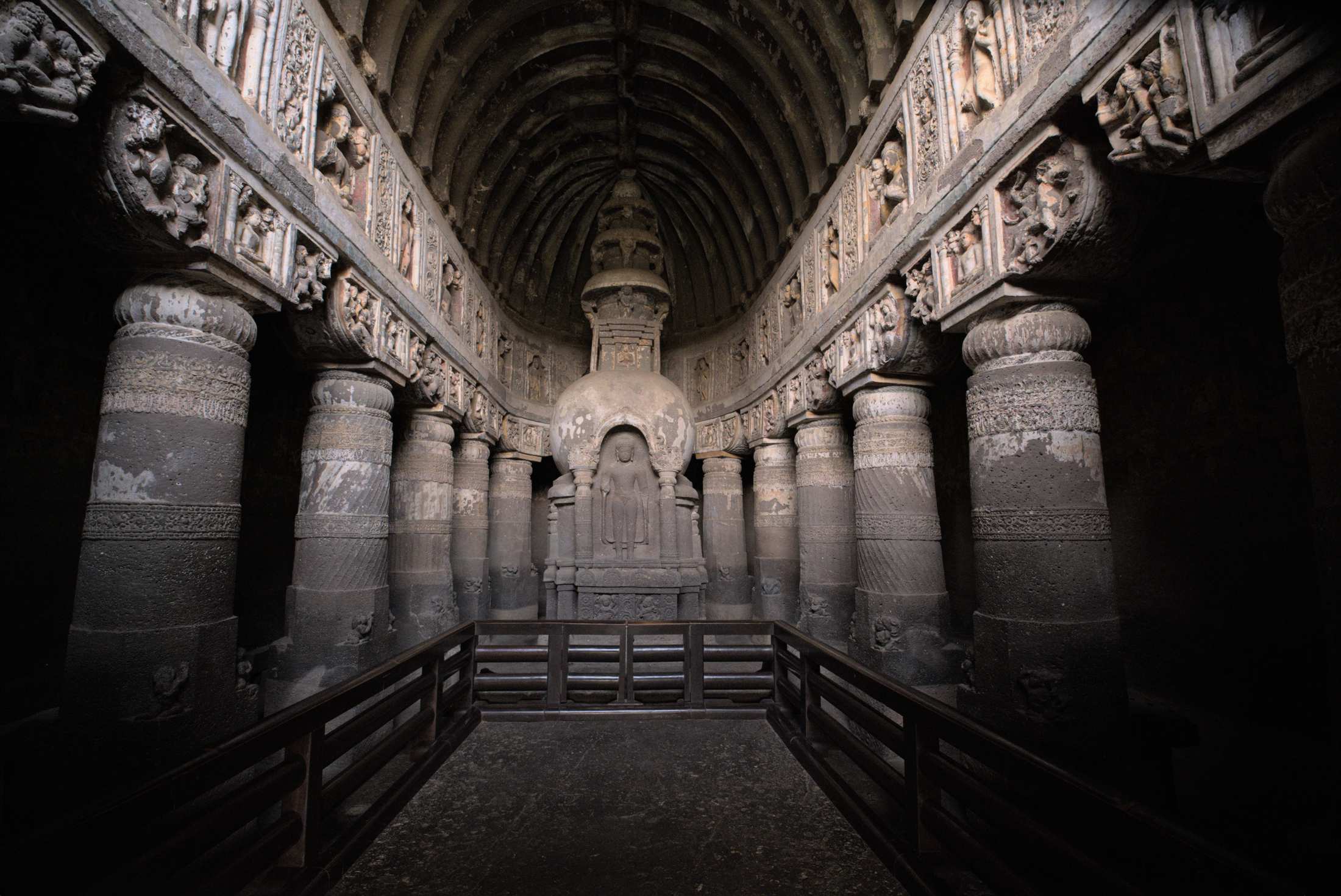 Die zum UNESCO-Weltkulturerbe zählenden 29 Ajanta-Höhlen gehören zu den meistbesuchten Kulturstätten Indiens und das zu Recht. Vom 2. Jahrhundert vor bis zum Ende des 7. Jahrhunderts nach Chr. wurden die Höhlen gebaut und bewohnt, dann gerieten sie in Vergessenheit und wurden 1819 von britischen Armeeangehörigen während einer Tigerjagd wiederentdeckt. Sie wurden komplett aus dem Fels gehauen samt aller Stützen und Verzierungen.