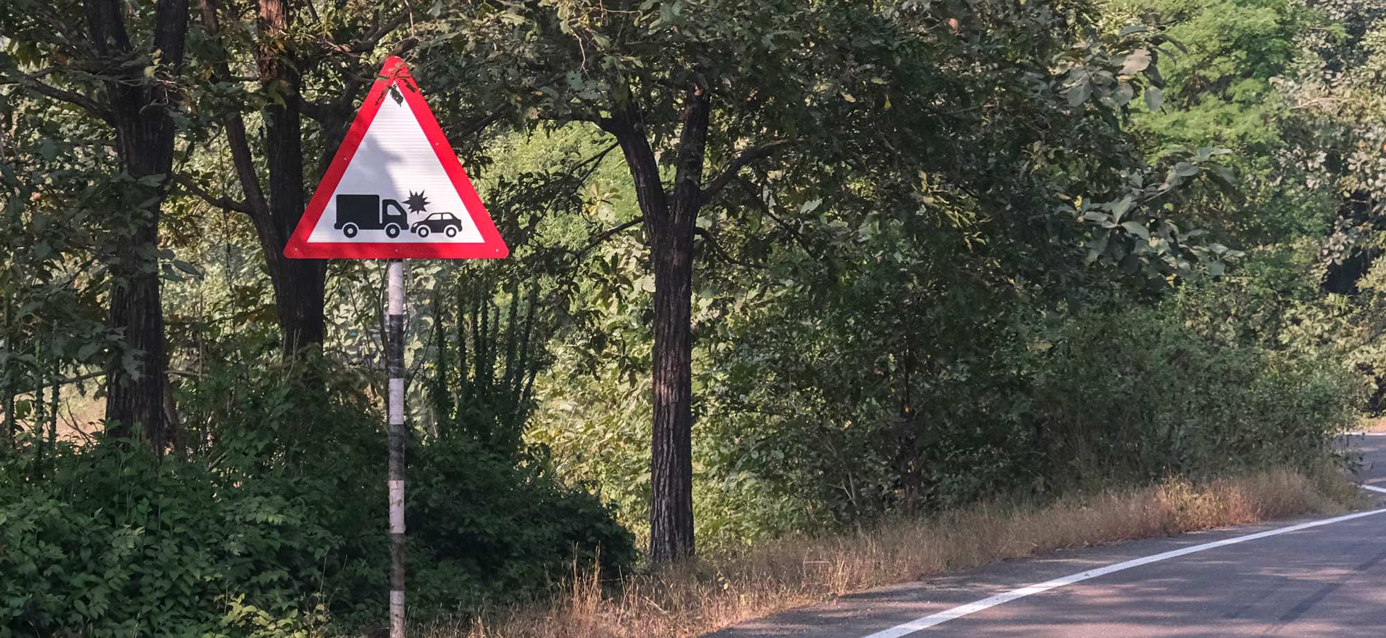 Eigentlich ein amüsantes Schild. Weniger lustig, dass uns ein paar Irre bald darauf zu viert auf unserer Spur entgegenkommen und uns nötigen, in die Bremsen zu steigen.