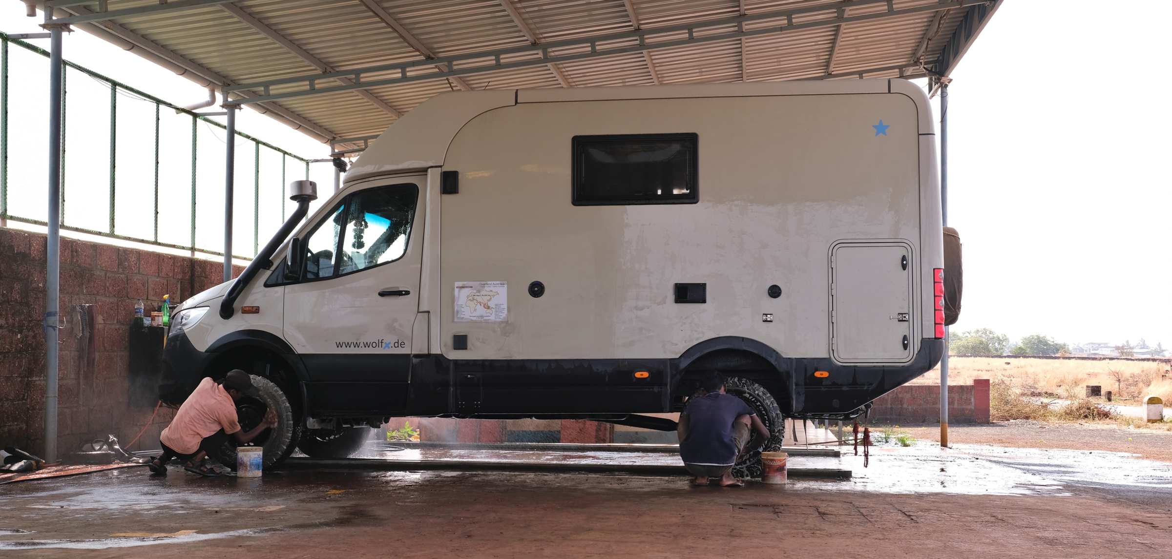 Wäsche wurde auch gewaschen und hängt jetzt zum Trocknen in unserem mobilen Zuhause.