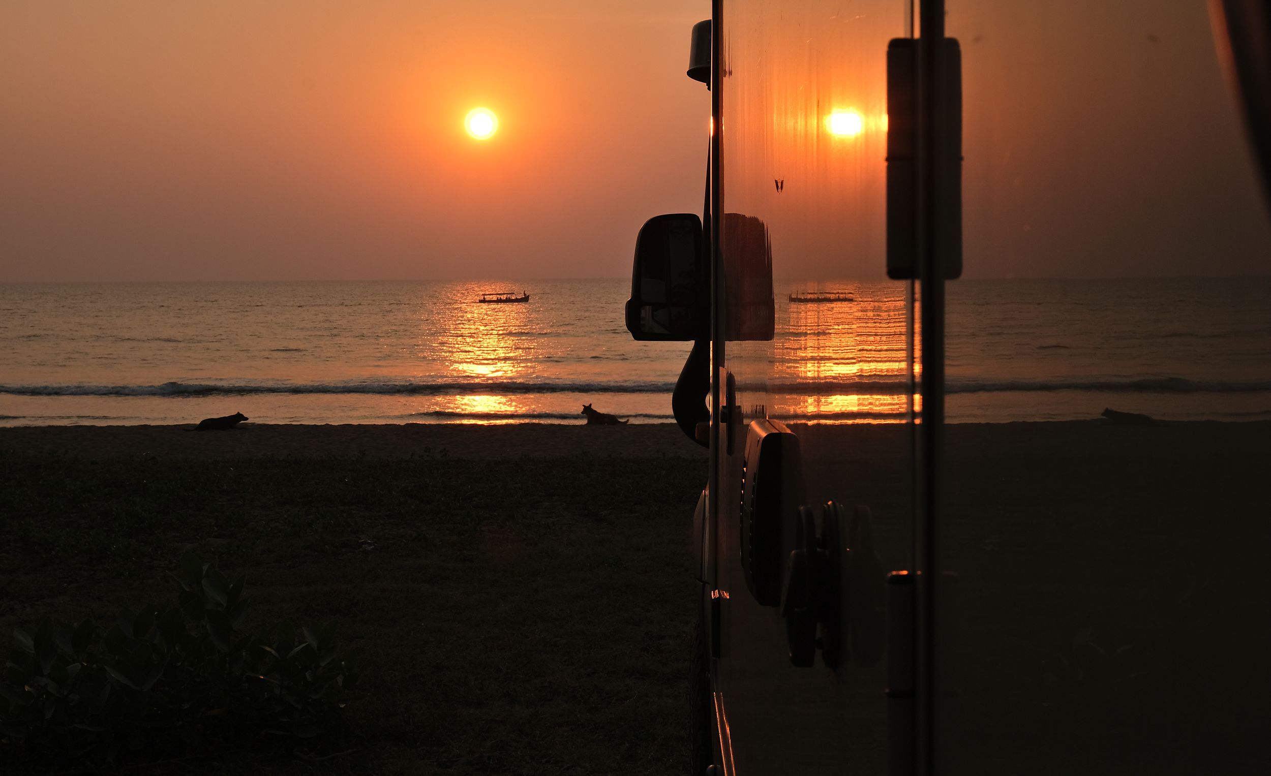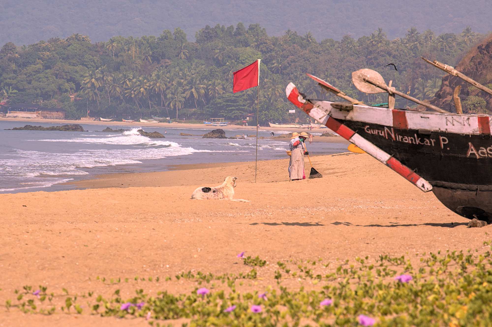 Unser Strand in Goa. Wir stehen in einem Golf- & Spa-Resort, u.a. mit warmen Duschen am großen Pool. Das Meer ist gut temperiert und der "Privatstrand" des Hotels schön und leer.