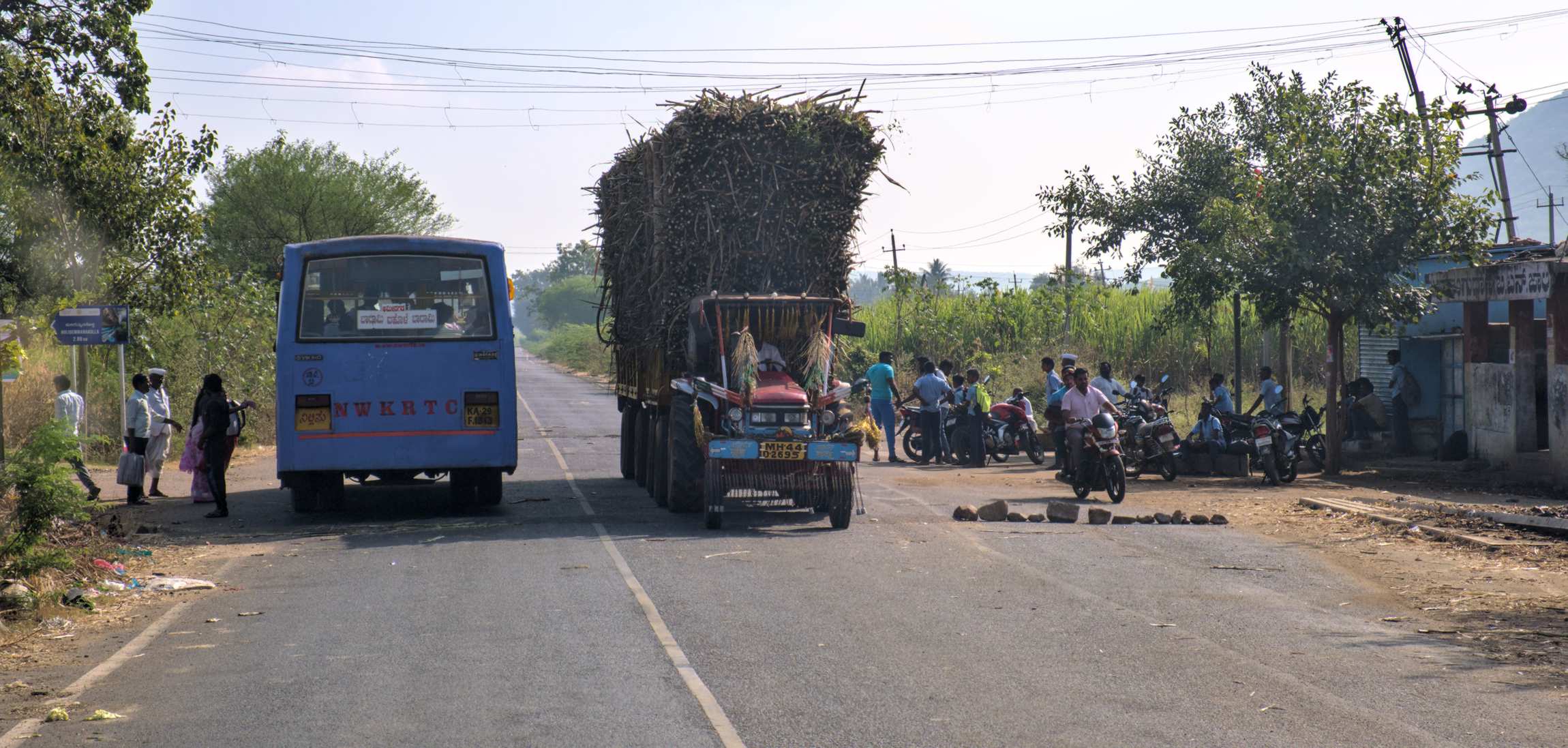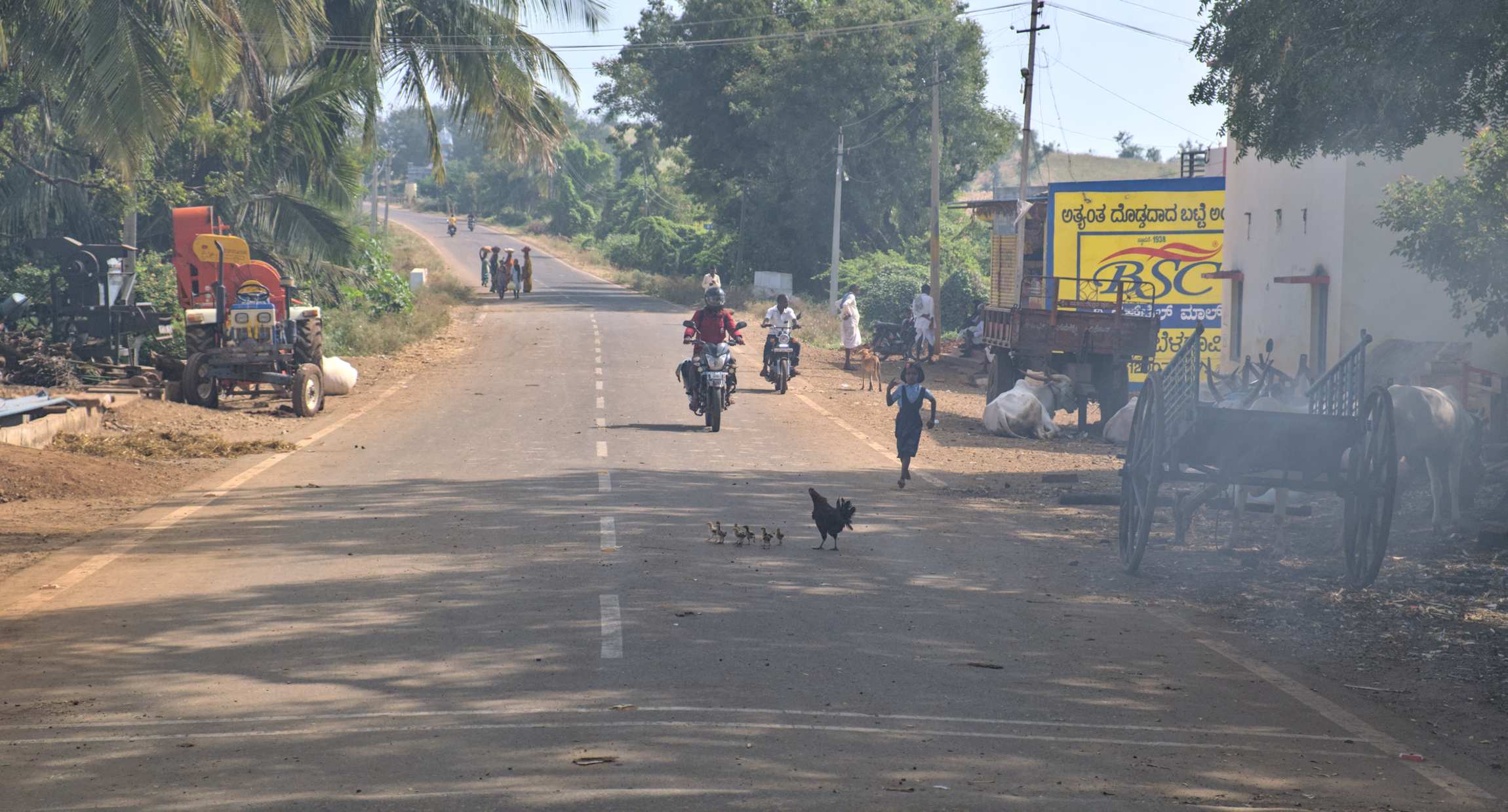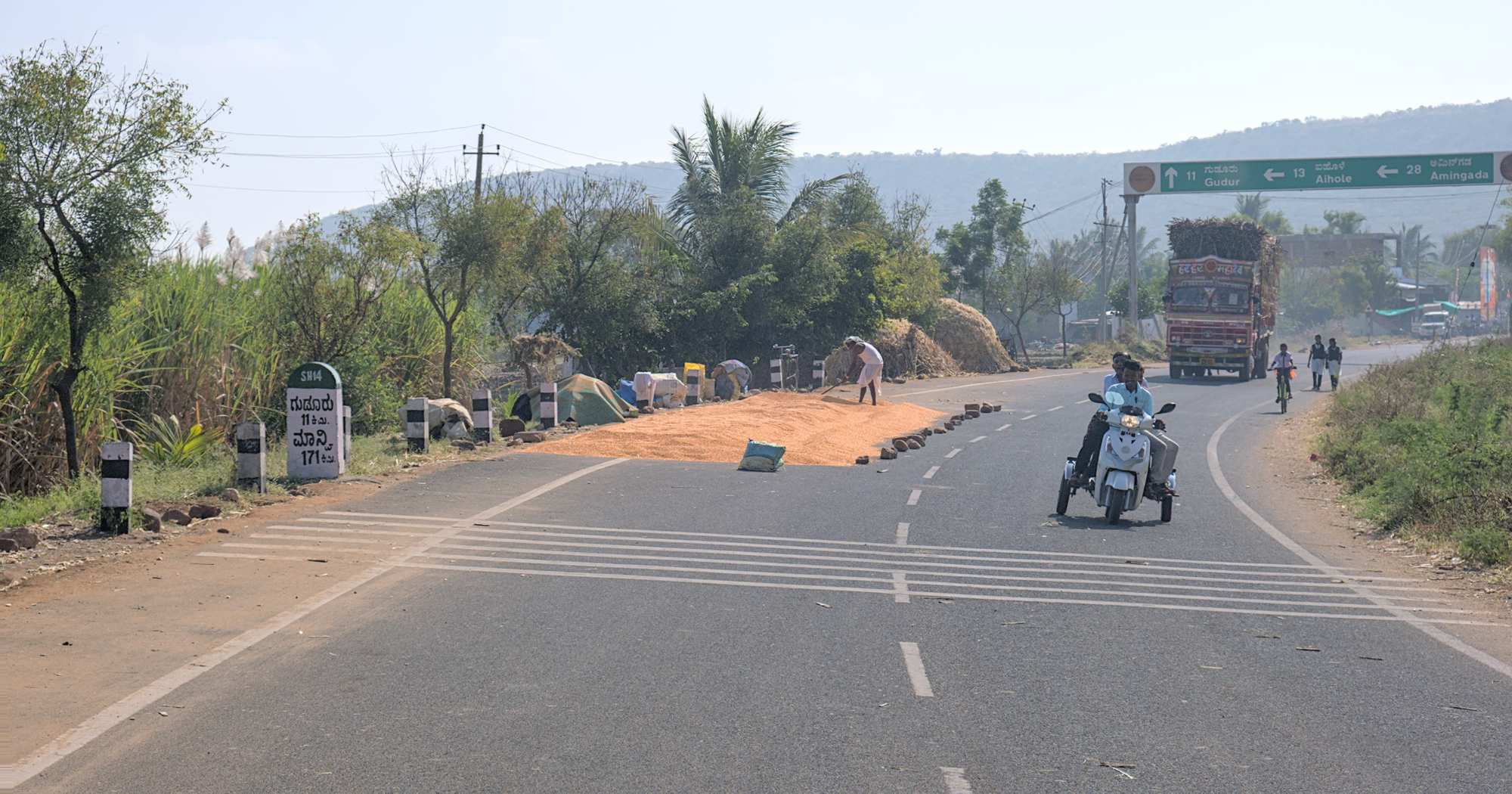 Auf der Straße trocknet Getreide besonders gut. Fahrspur blockiert? Interessiert hier niemand.