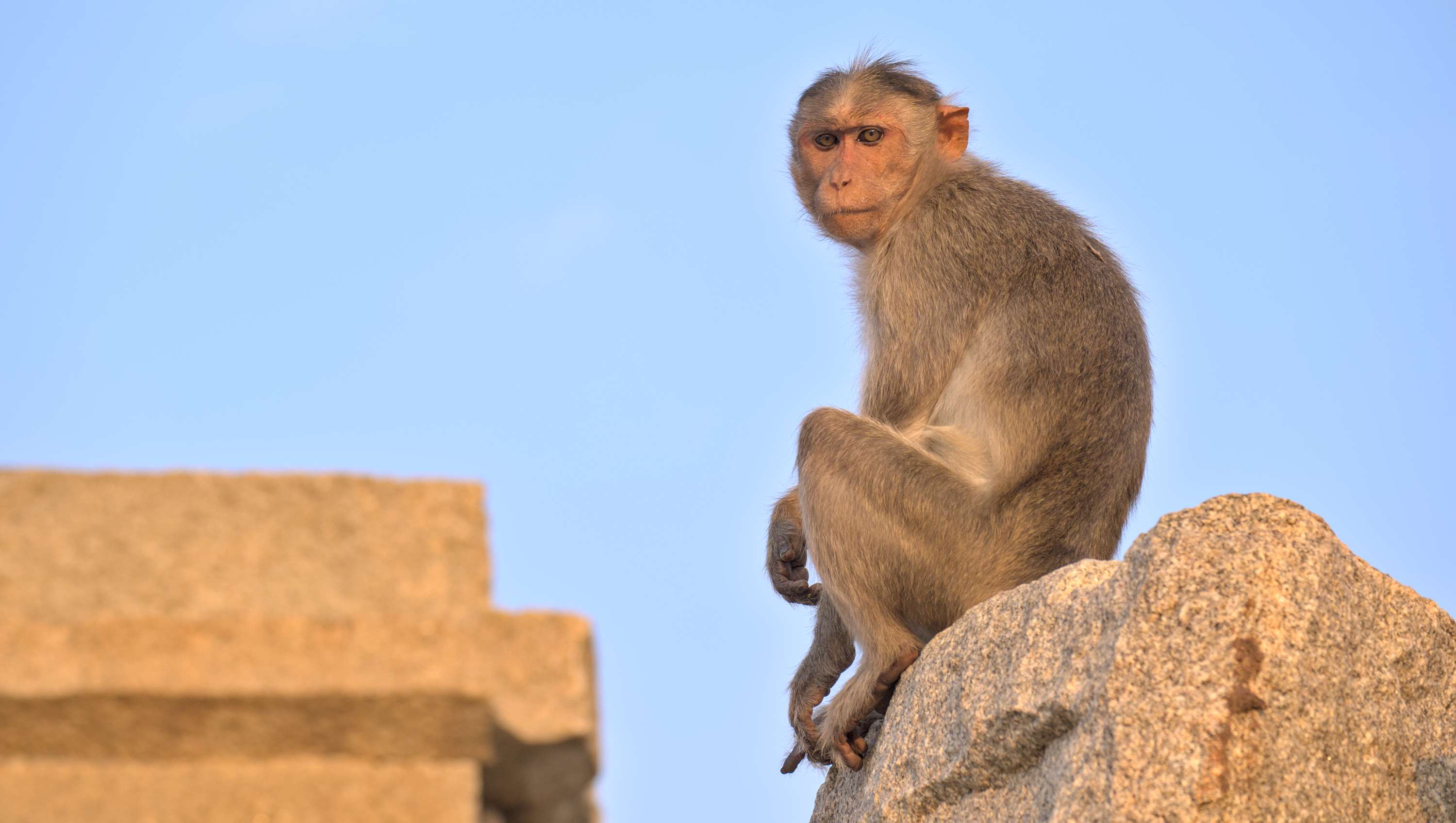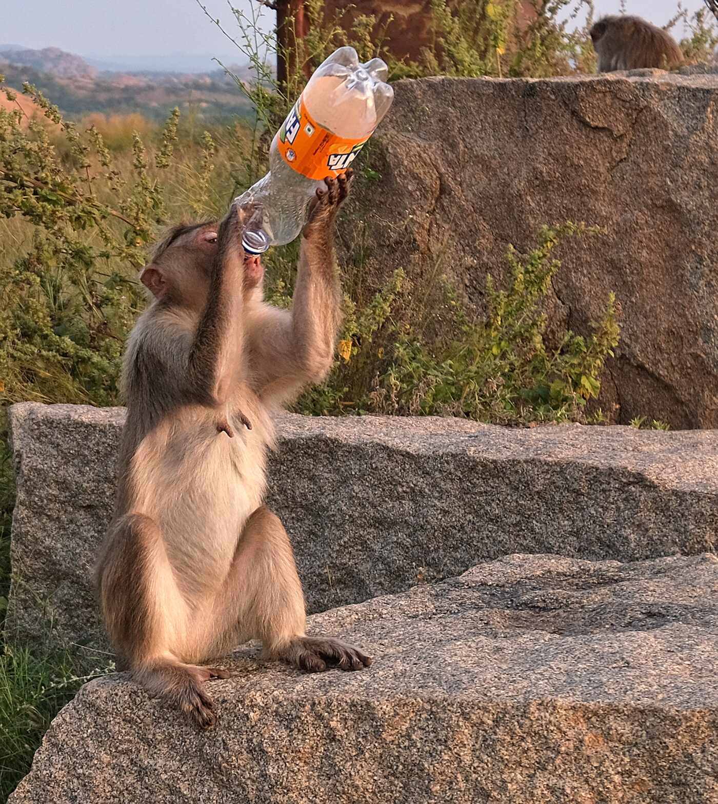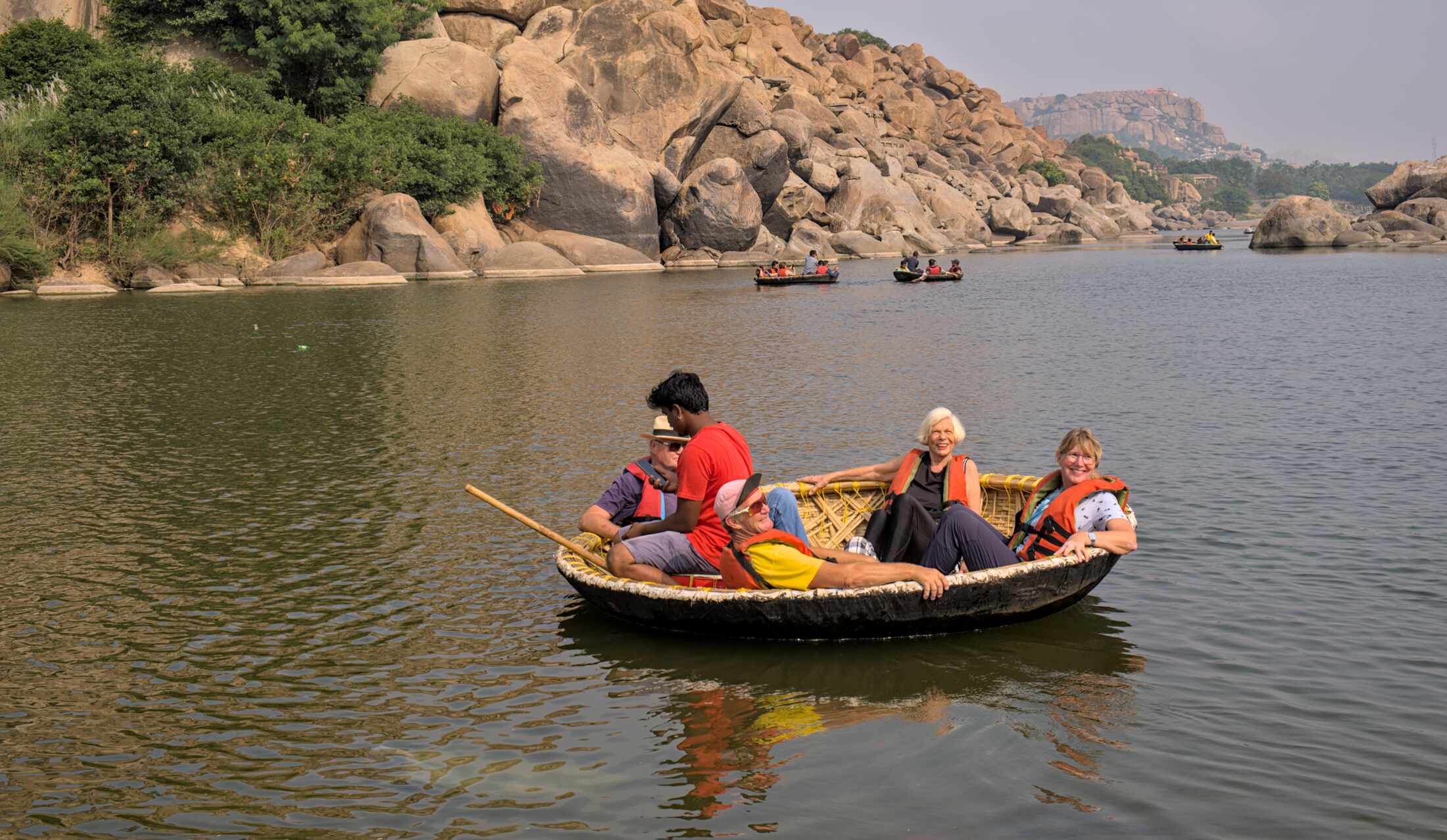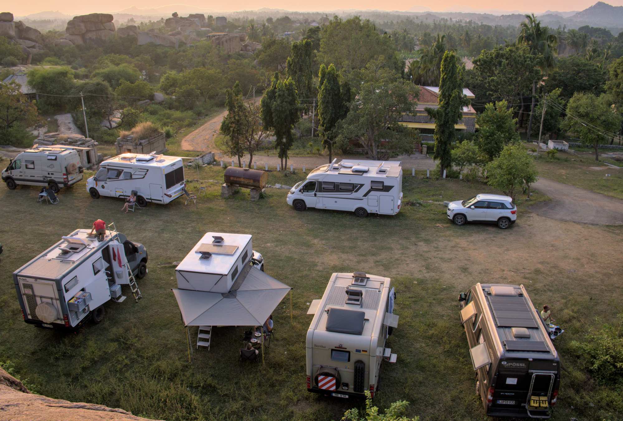 Unser Übernachtungsplatz, inmitten der riesigen, historischen Stätte Hampi, direkt am Fuße des Matunga Hills. Von dort aus hat man eine besonders schöne Sicht auf den Virupaksha-Tempel. Viele Leute kommen zum Sonnenuntergang hierher.