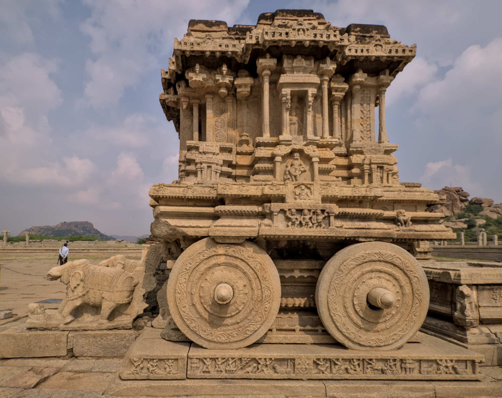Der Vitthala-Tempel aus dem 15. Jahrhundert mit dem beeindruckenden Tempelwagen ist der Höhepunkt der gesamten Anlage.