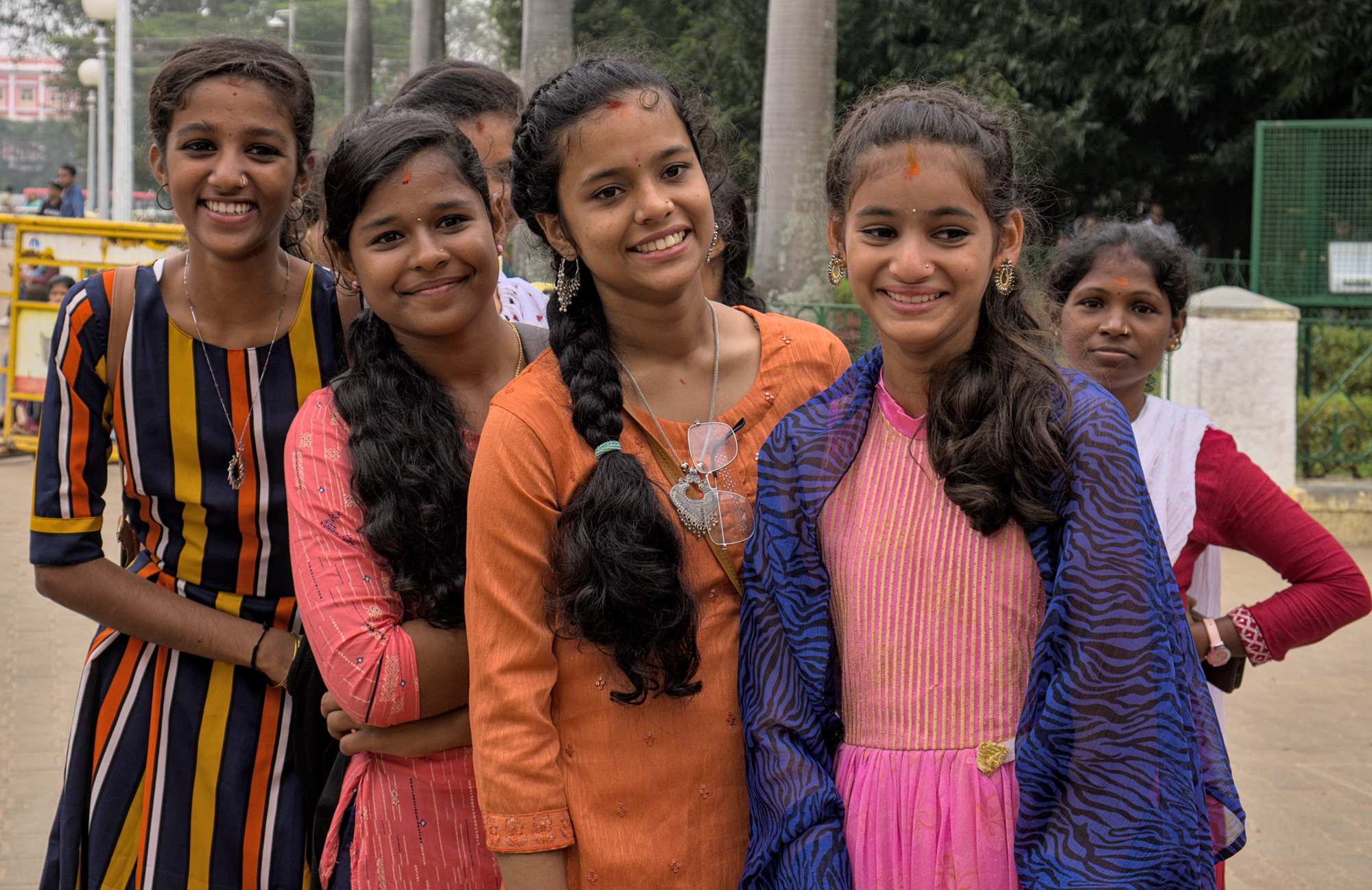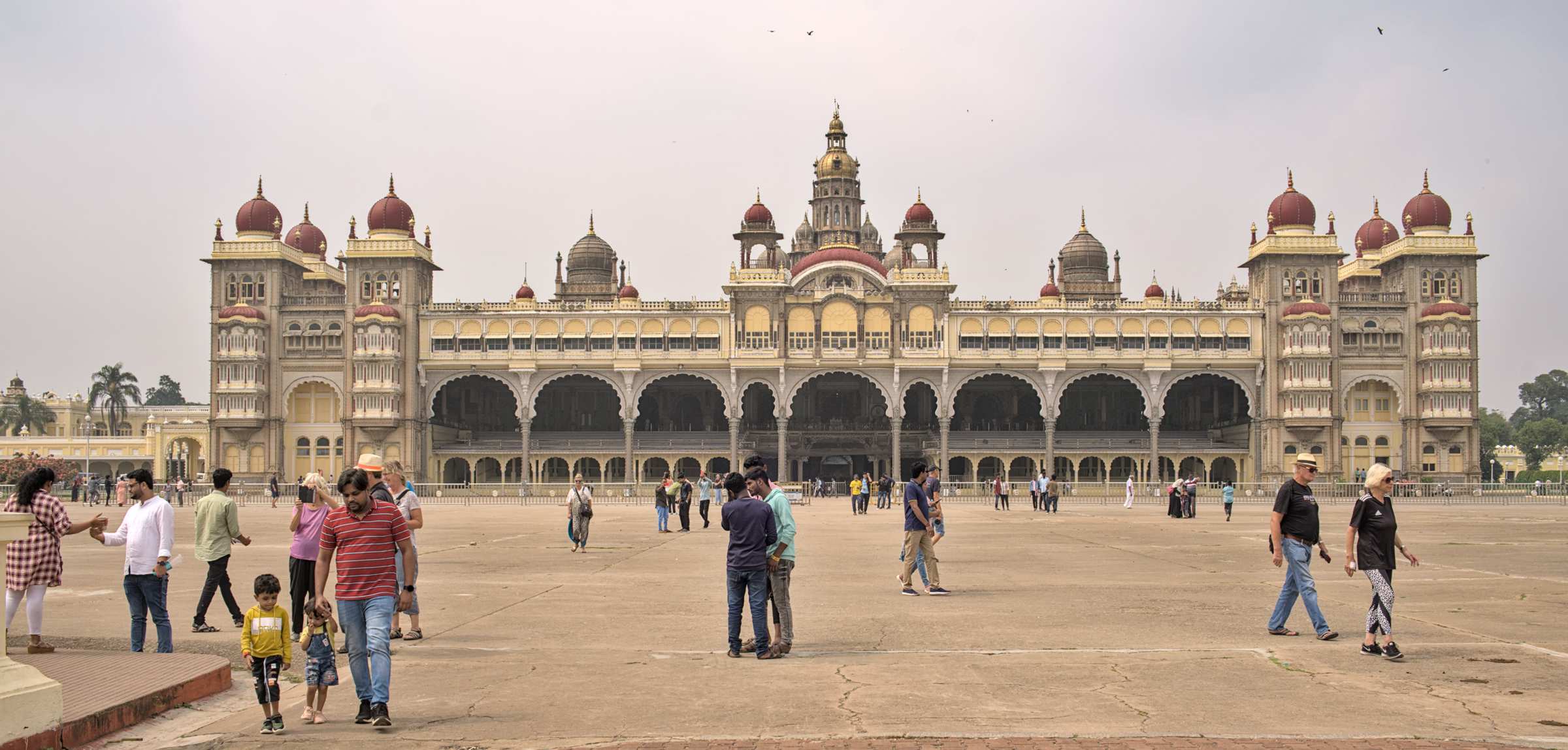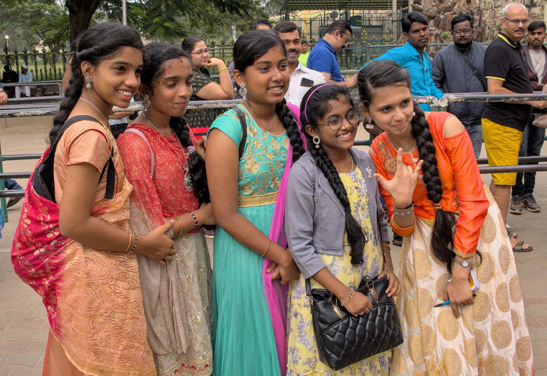 In Mysuru stehen wir zunächst vergeblich am Eingang zum Palast an. Warum auch immer wird heute später geöffnet. Für die Mitwartenden gute Gelegenheit zum Fotoshooting.