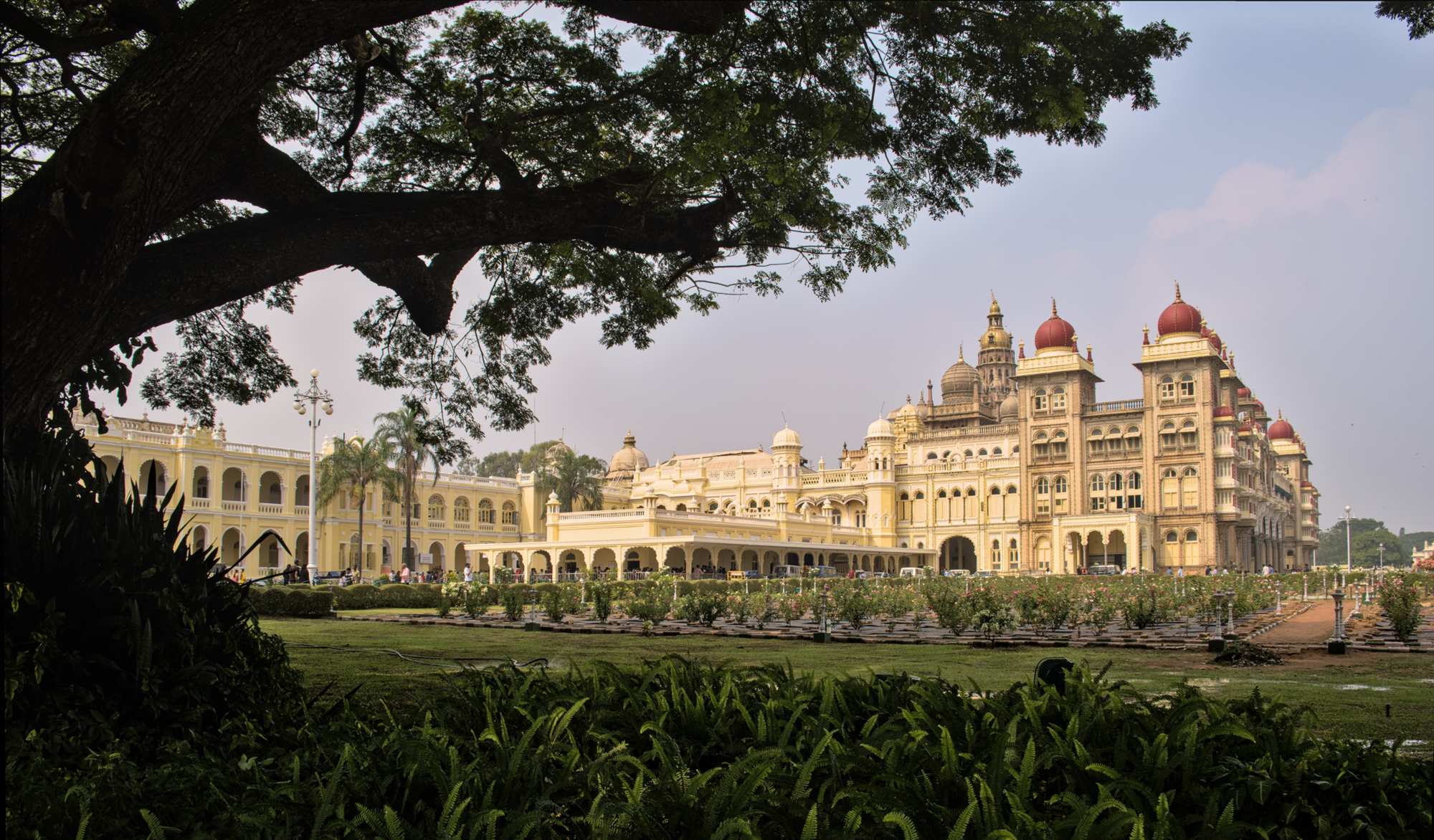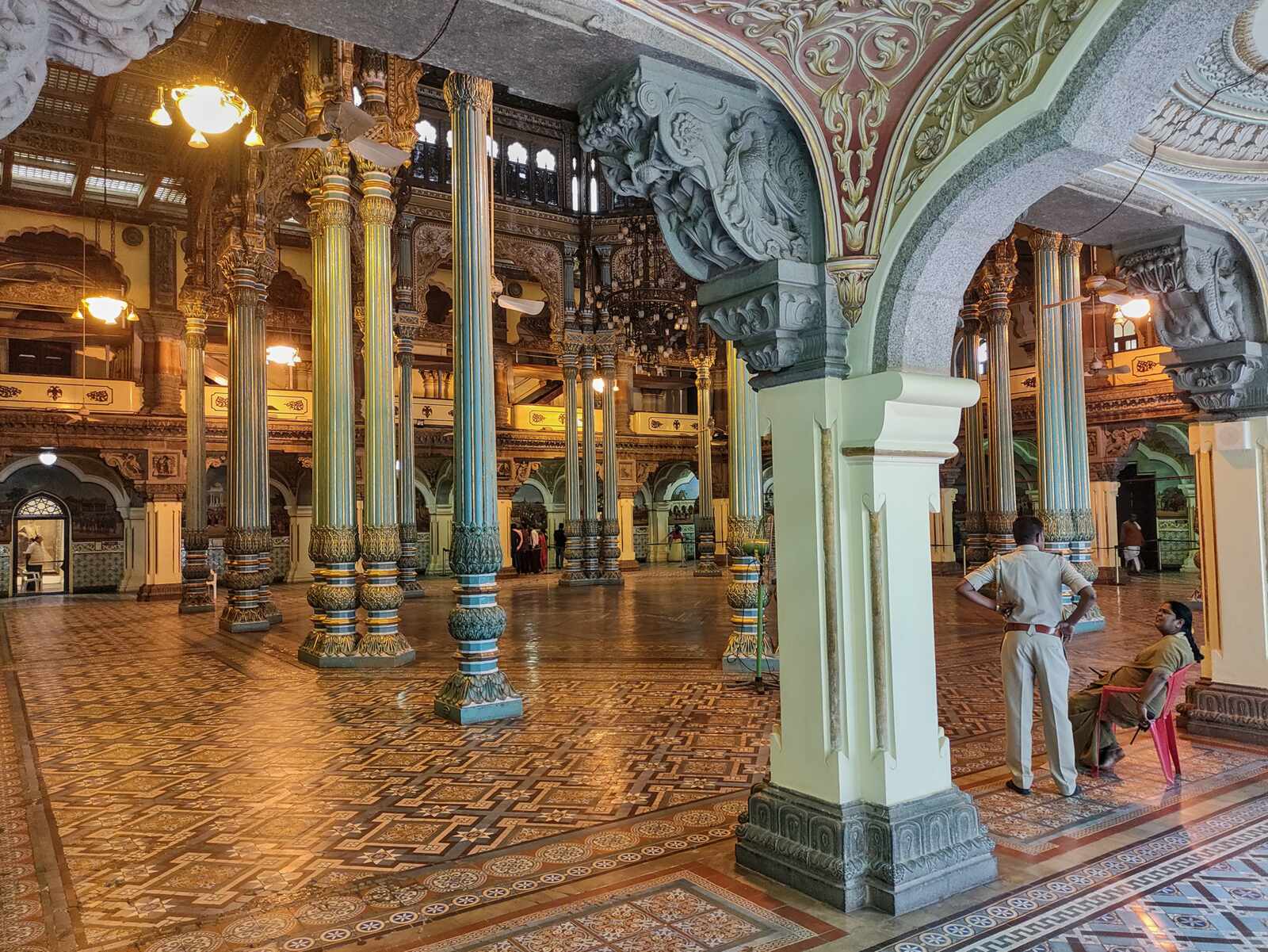 Dann besuchen wir doch noch den Palast Amba Vilas, in dem heute noch Nachfahren des Maharadschas wohnen. Er zählt zu den berühmtesten Palastbauten Indiens. Übrigens gibt es hier auch einen Stall mit Elefanten, die für die prachtvollen Paraden gebraucht werden.