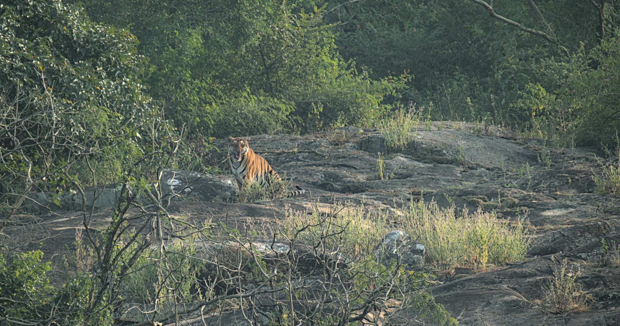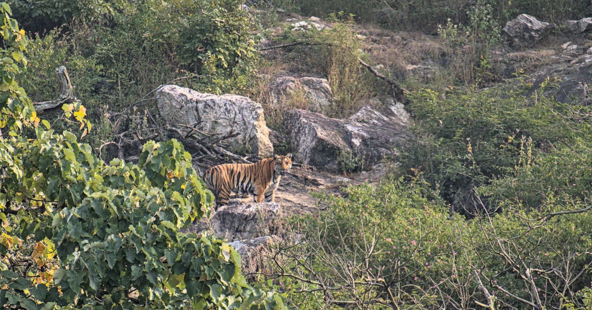 Beim abendlichen Besuch des Bandipur NP/Tiger Reserve haben wir großes Glück: in der Nähe einer Wasserstelle läßt sich für kurze Zeit dieses prächtige Exemplar blicken.