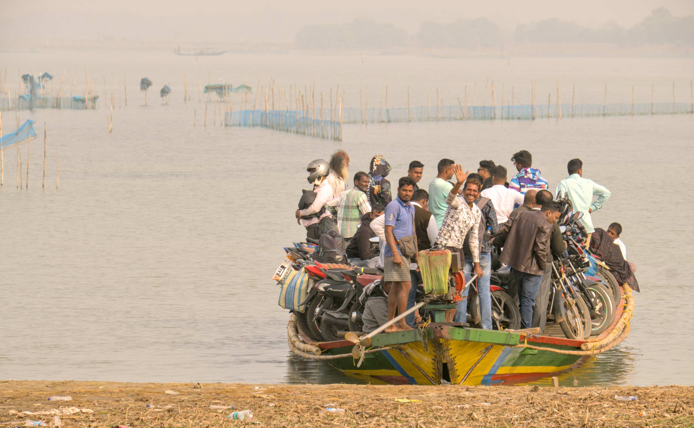 Mit einer der vielen Personenfähren schippern wir auf den Hugli, einen Mündungsarm des Ganges, hinüber zum Howrah Bahnhof, einem der größten und ältesten Indiens.