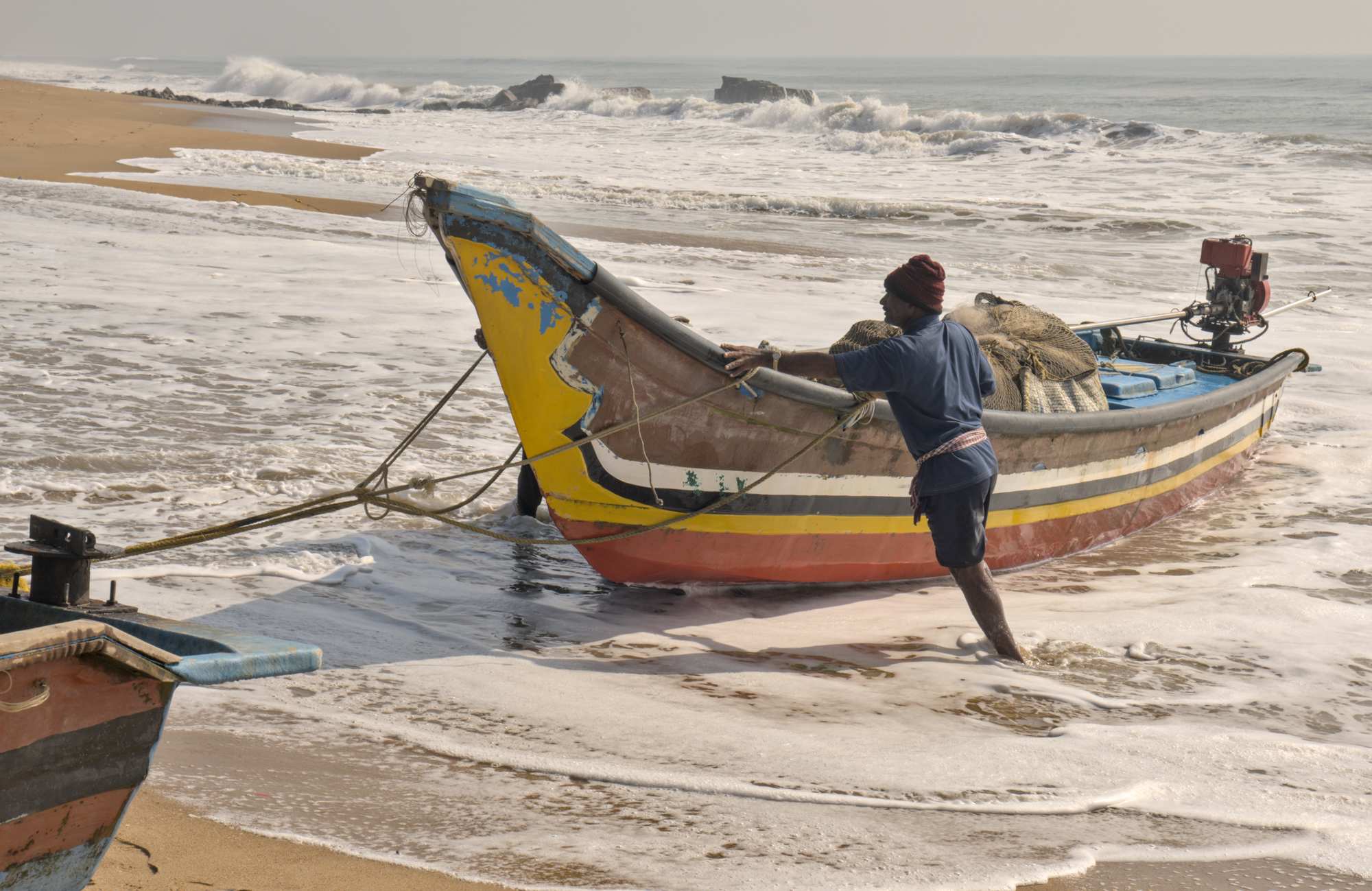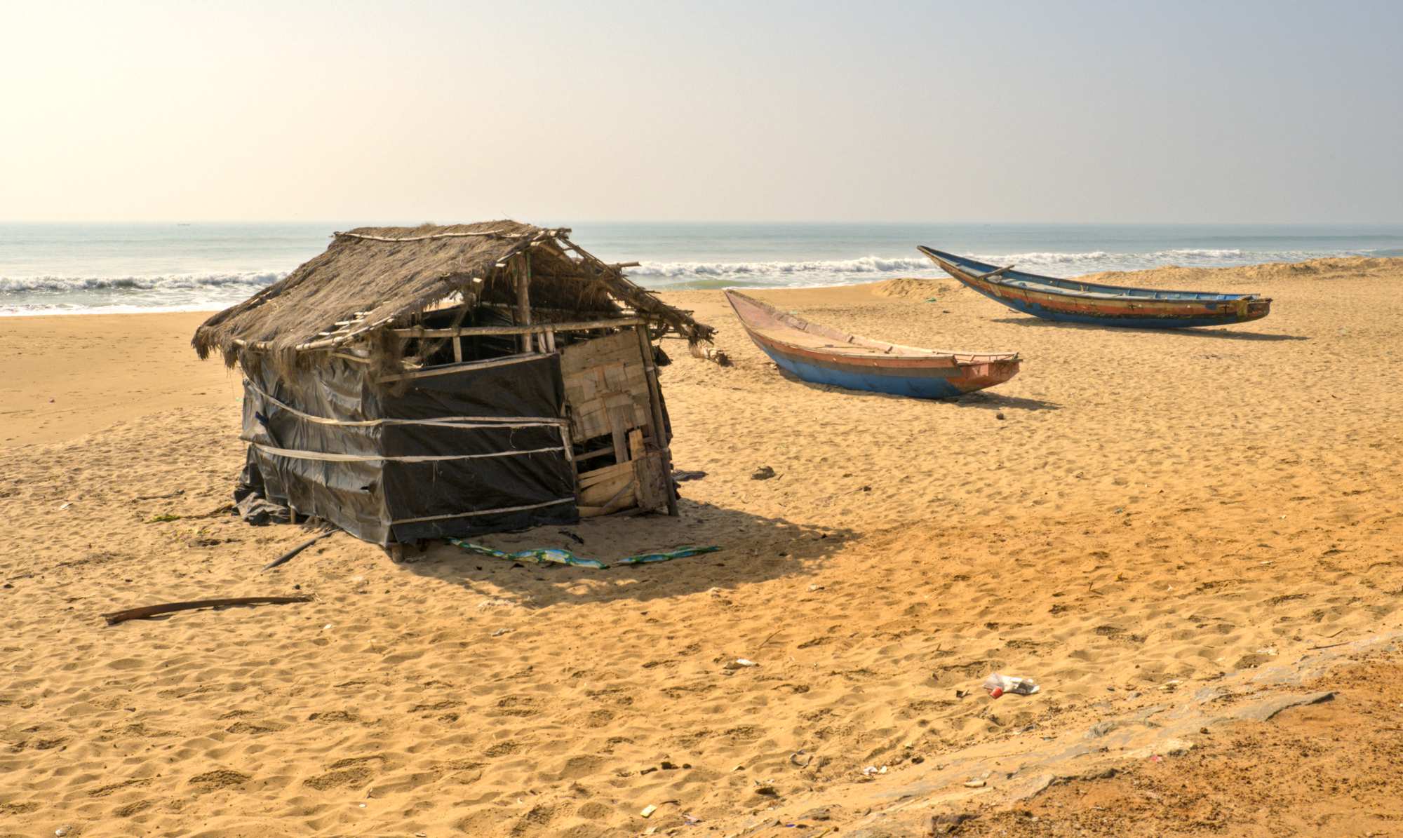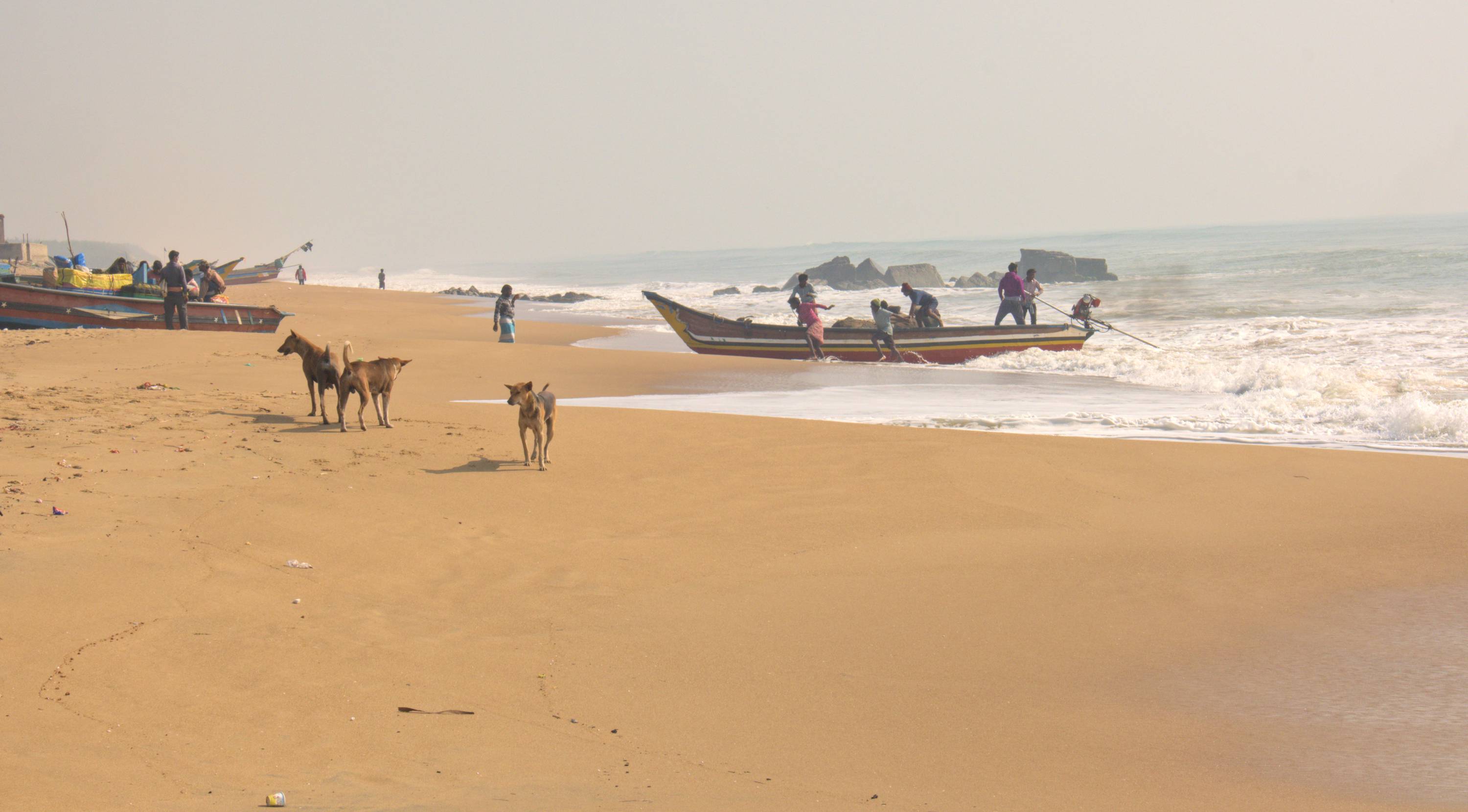 Das kleine Fischerdorf Chandrabagha liegt direkt am Strand. Heute ist das Meer rau und nur wenige Fischer sind hinausgefahren.