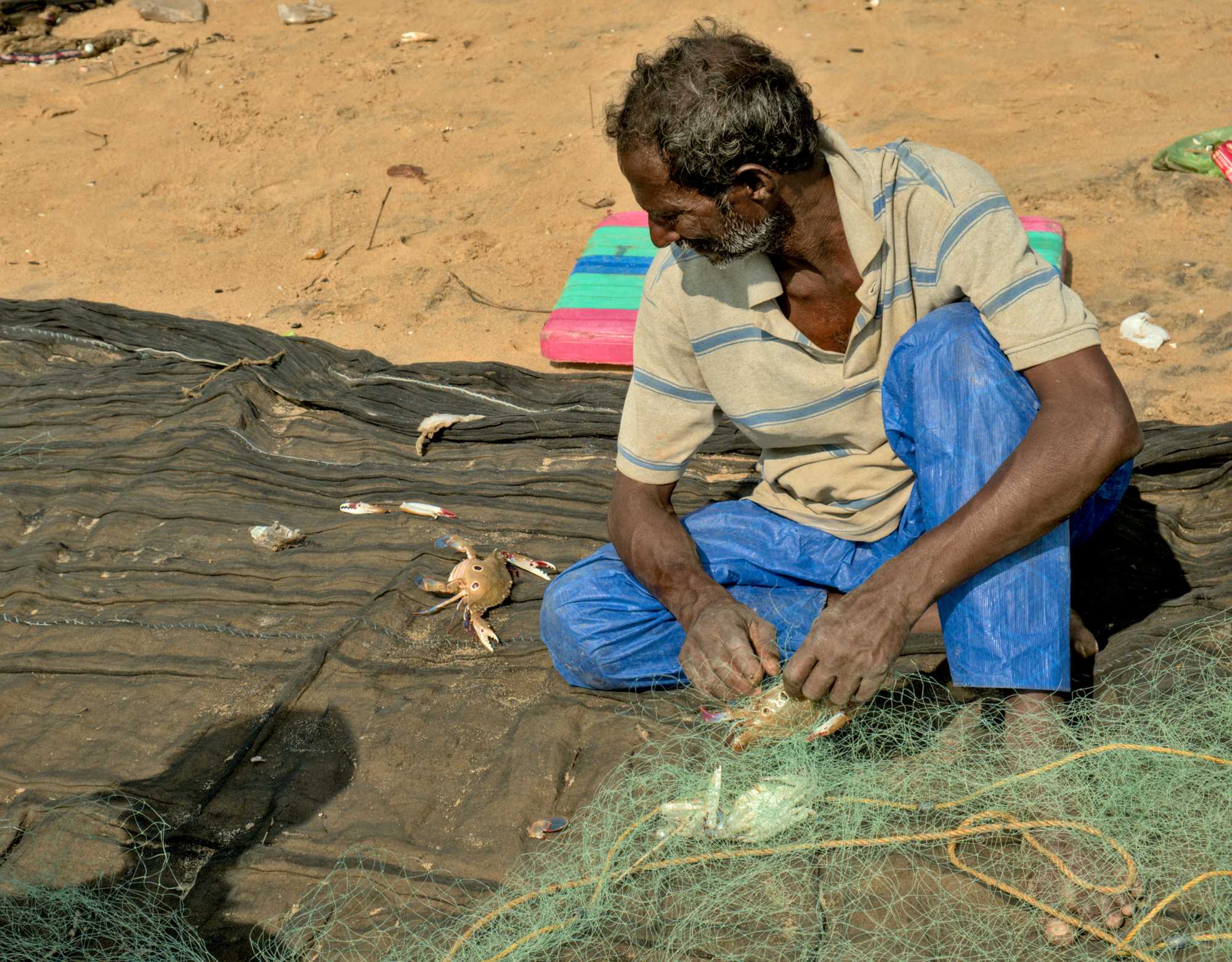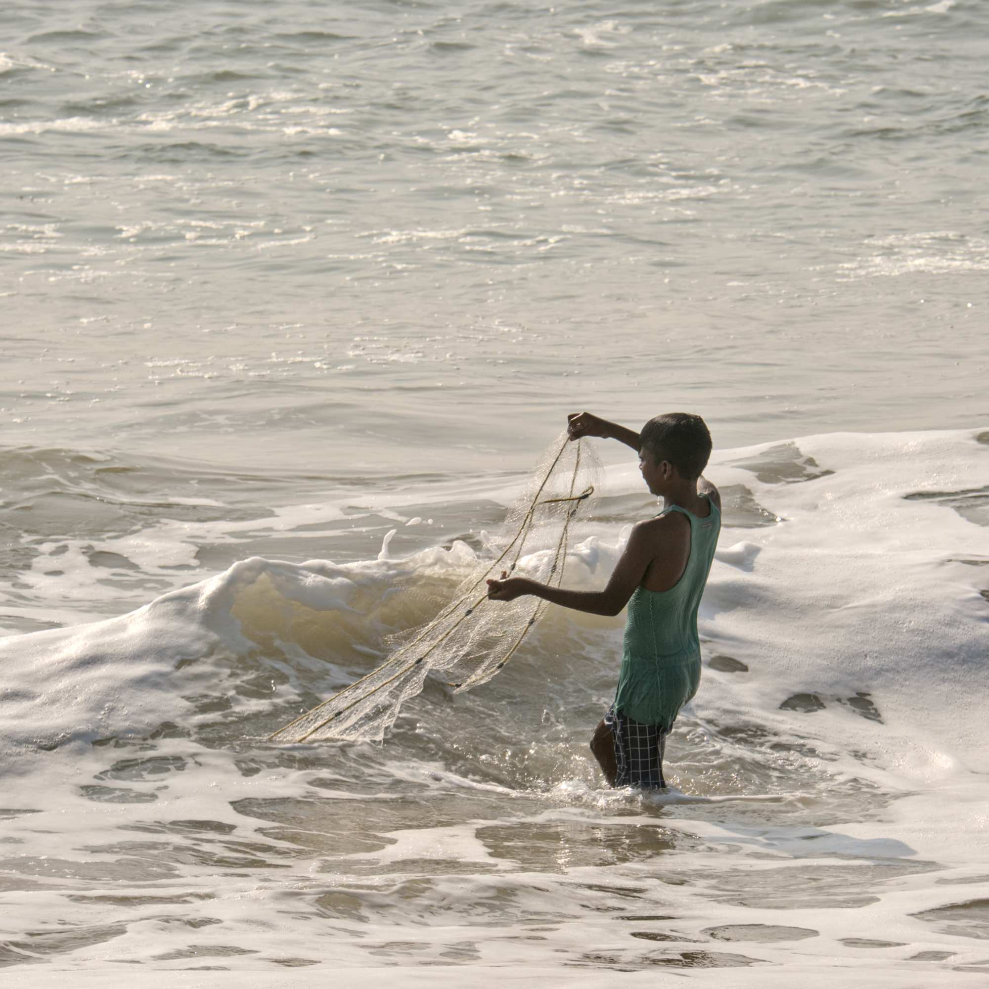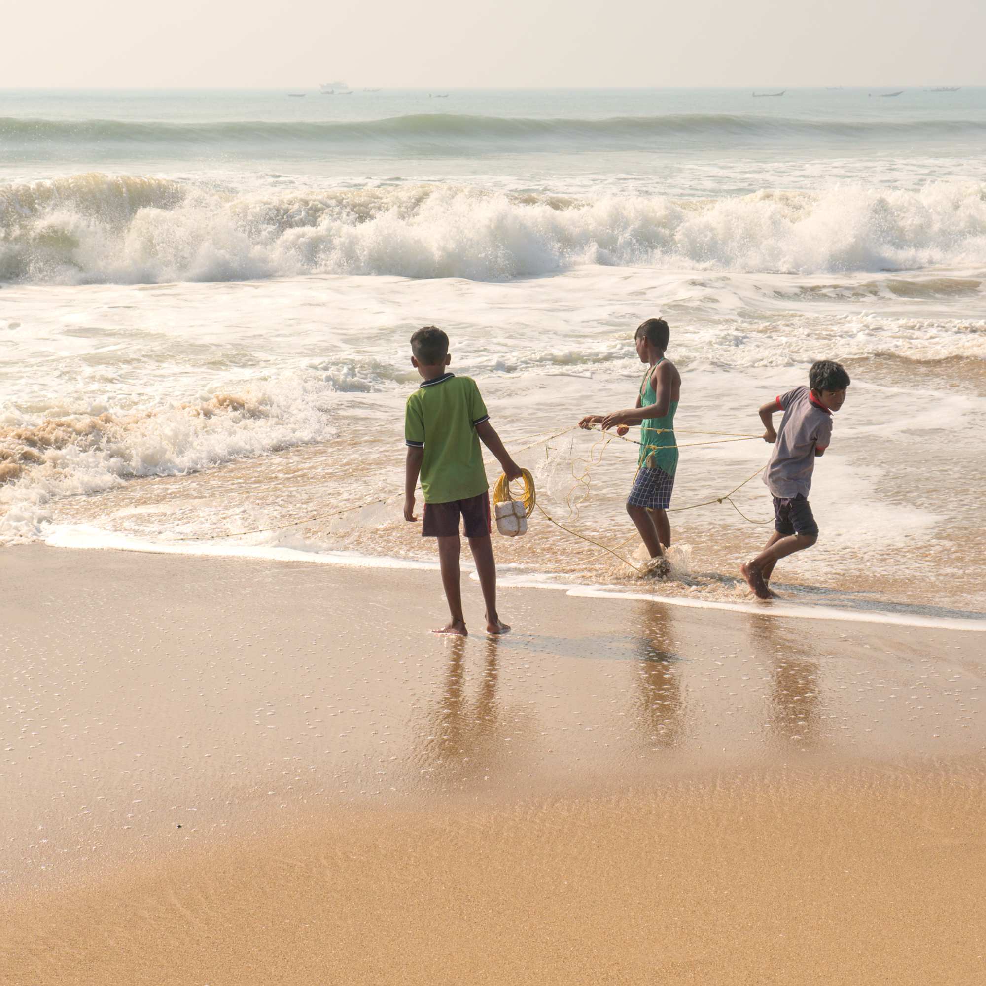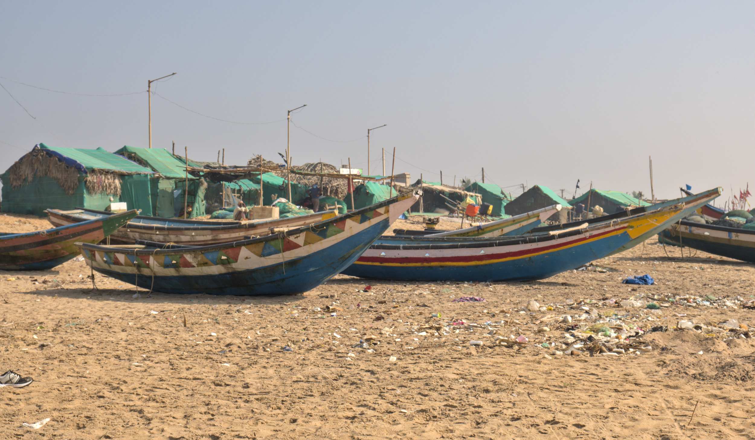 Das kleine Fischerdorf Chandrabagha liegt direkt am Strand. Heute ist das Meer rau und nur wenige Fischer sind hinausgefahren.