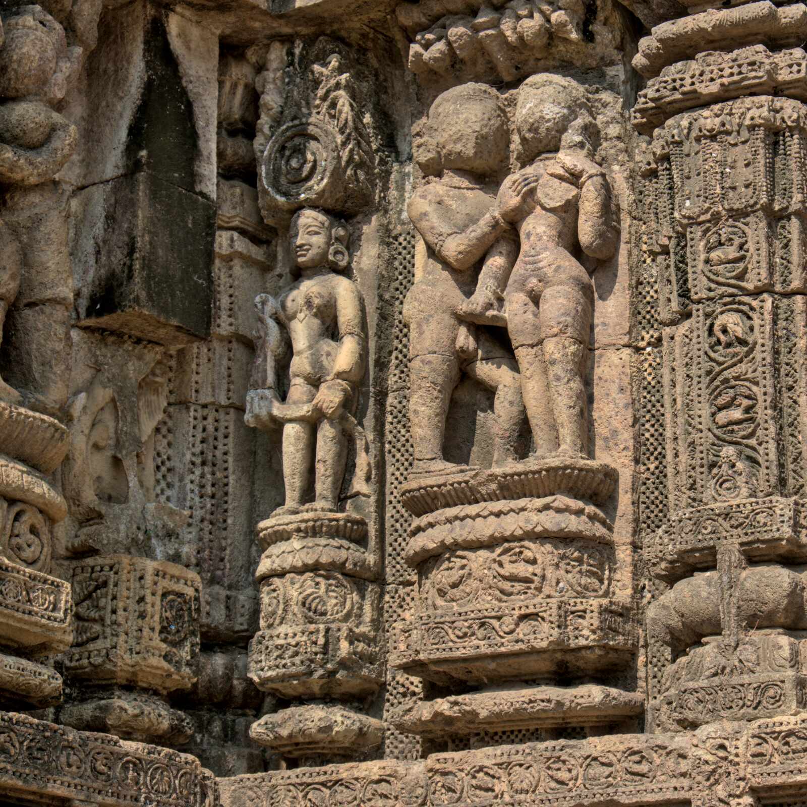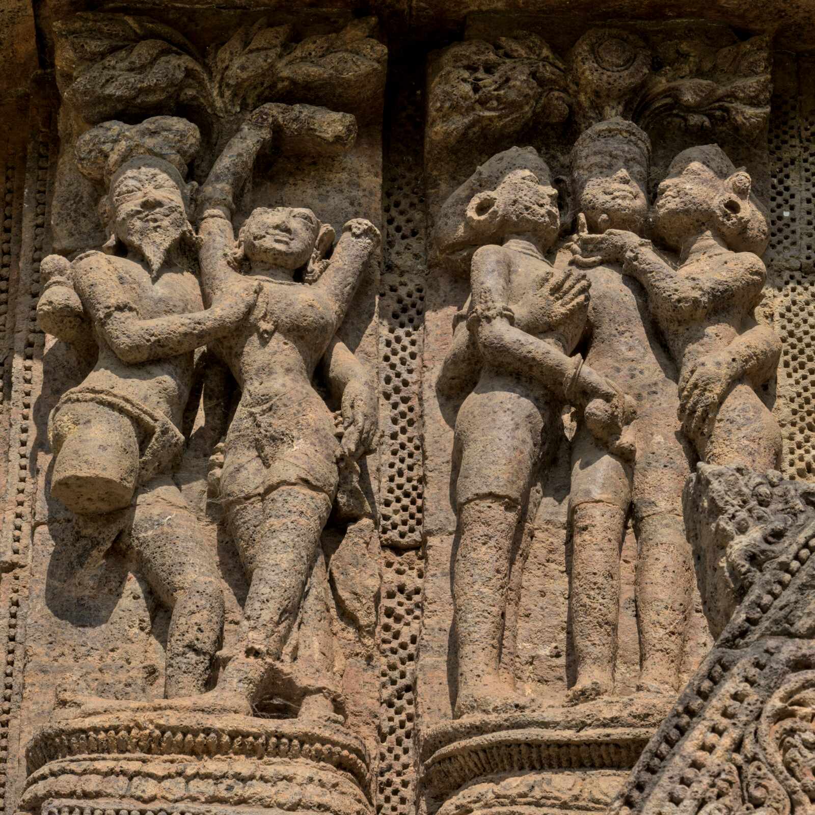 Der Sonnentempel von Konark, seit 1984 auf der Liste des UNESCO-Welterbes, ist einem großen Prozessionswagen nachempfunden, wird von 24 riesigen steinernen Wagenräder "getragen" und von 7 Pferden gezogen. Berühmt ist der Tempel auch wegen der erotischen Darstellungen. Prüde waren sie ganz und gar nicht, die alten Inder.