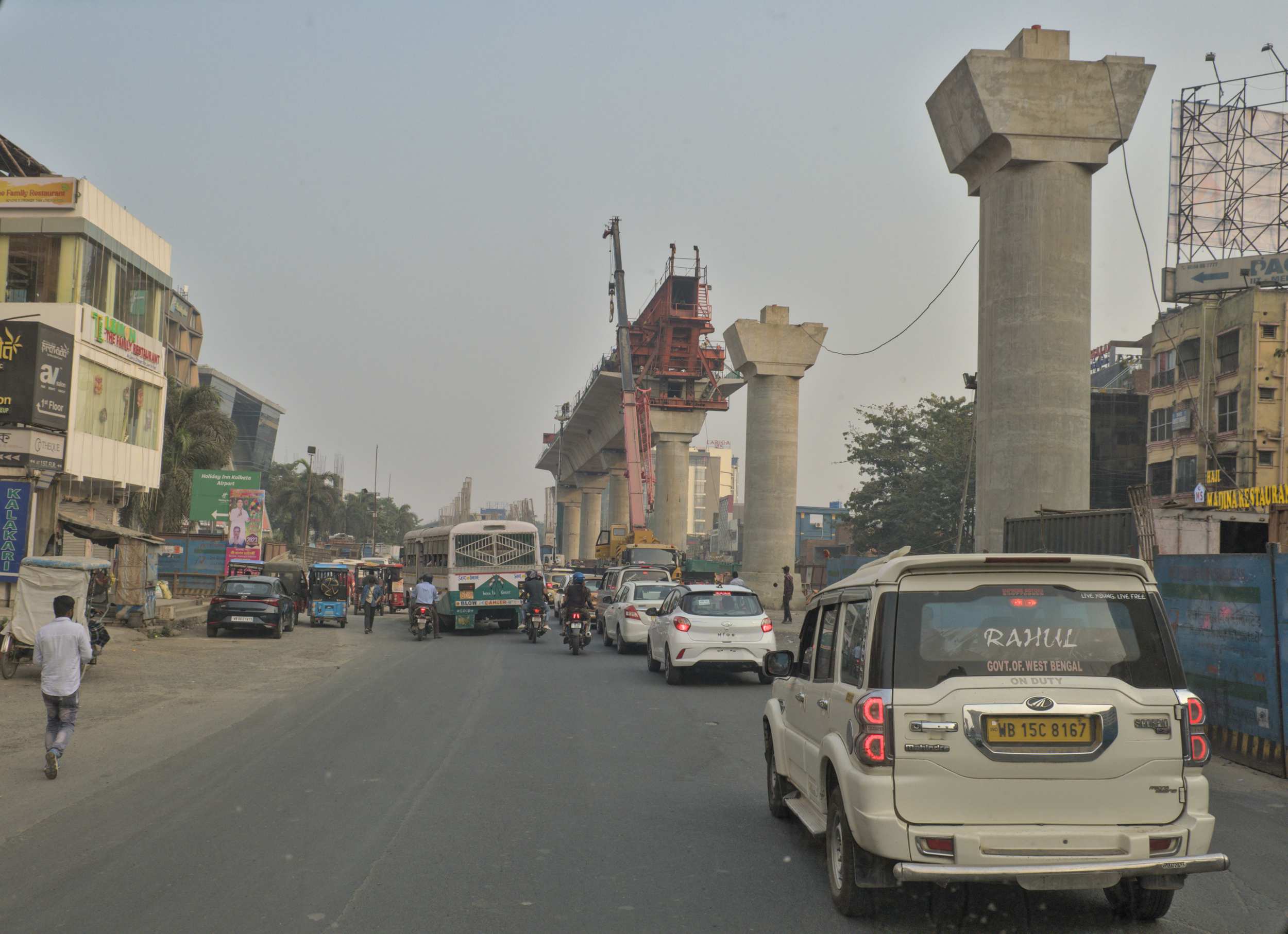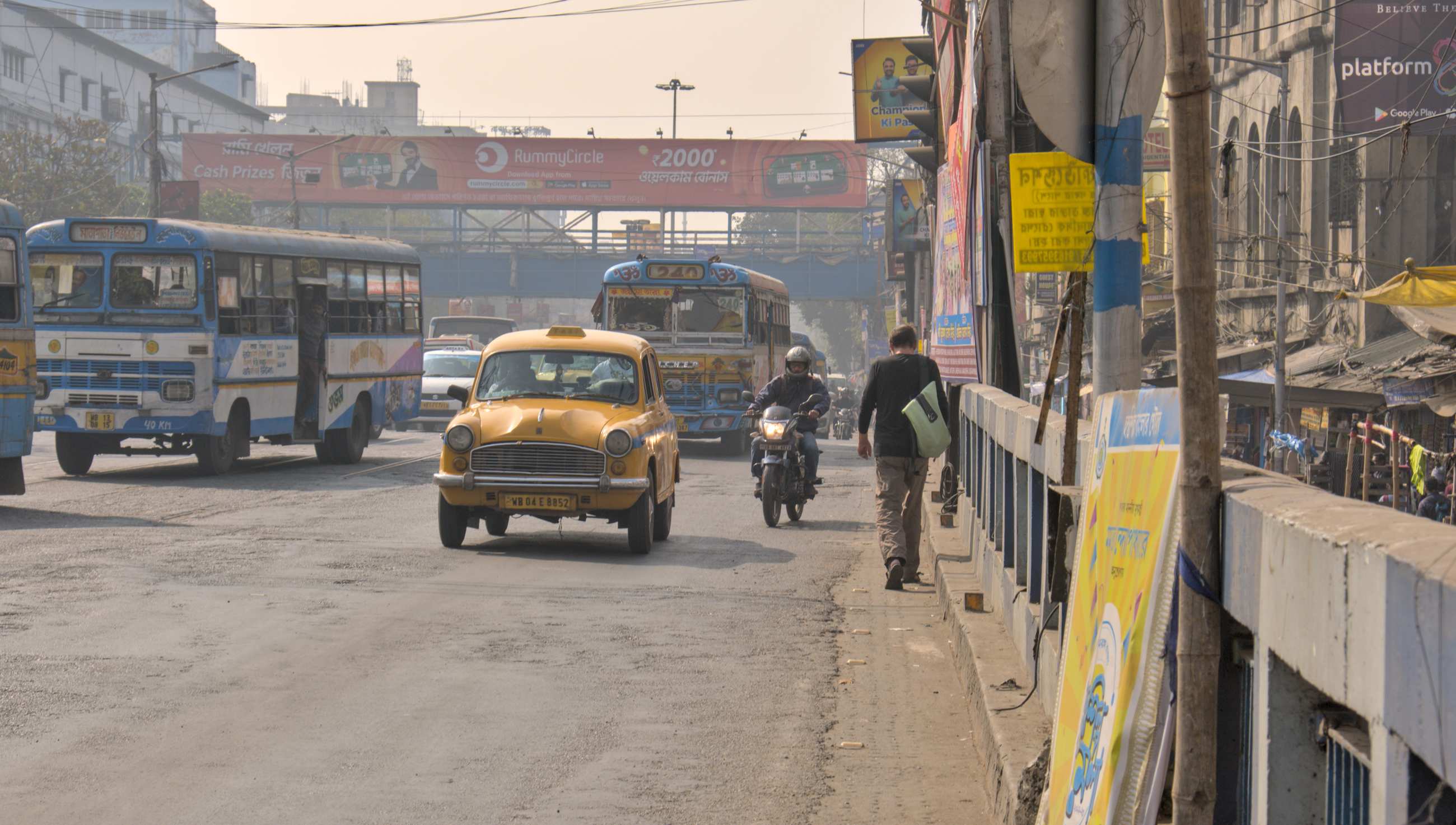 Hinein nach Kolkata. Die neue Hochstraße wird gerade gebaut. Generell beobachten wir überall in Indien rege Straßenbautätigkeiten.