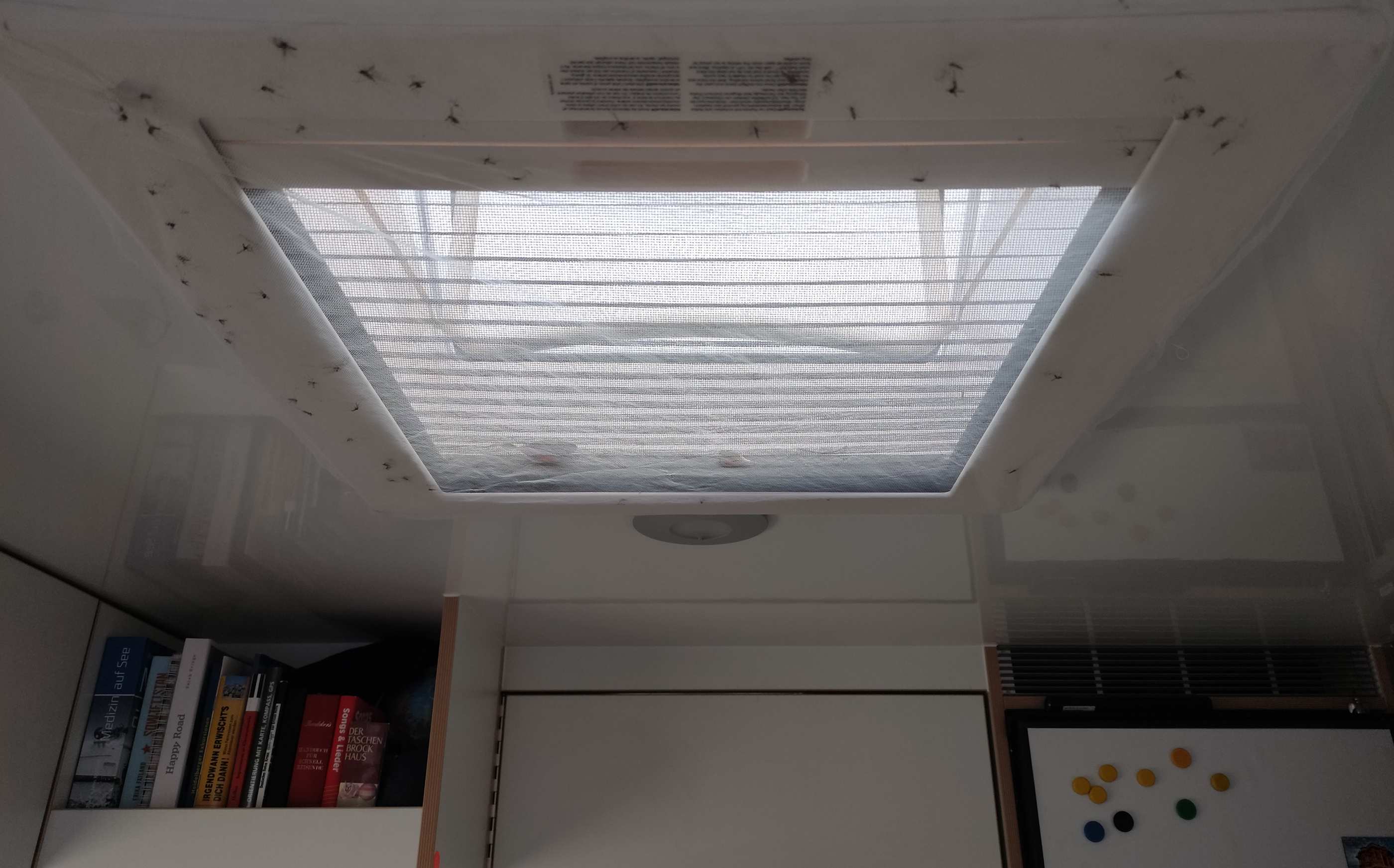Das serienmäßige Mückennetz hindert sie überhaupt nicht, erst Ulrikes, mit Klettband angebrachtes, feines stoppt diese Mistviecher.