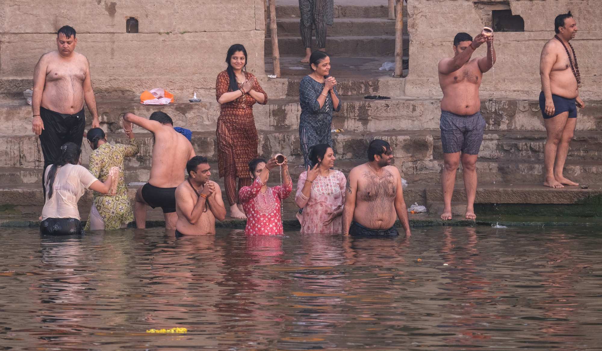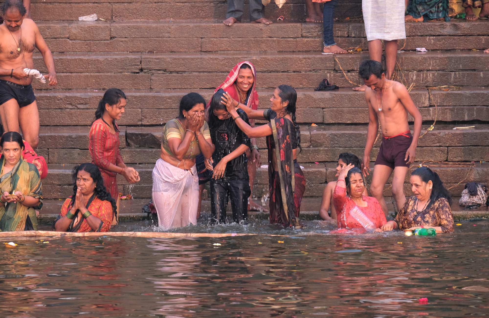 Ein Bad dort im Ganges ist für jeden Hindu höchst erstrebenswert und die Reinwaschung wird glücklich zelebriert. Wir sehen das sehr ambivalent, denn der Fluss ist einer der schmutzigsten der Welt.