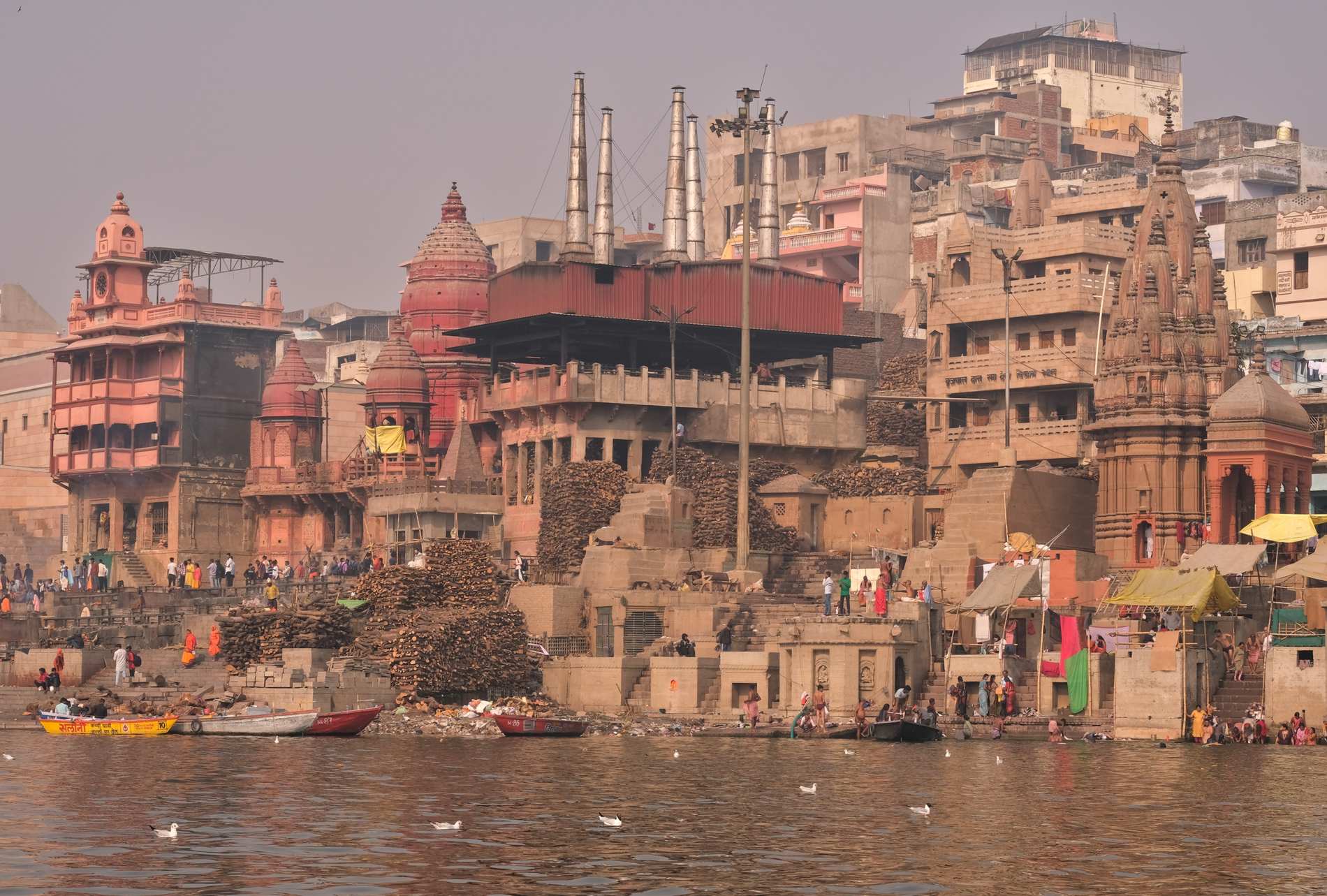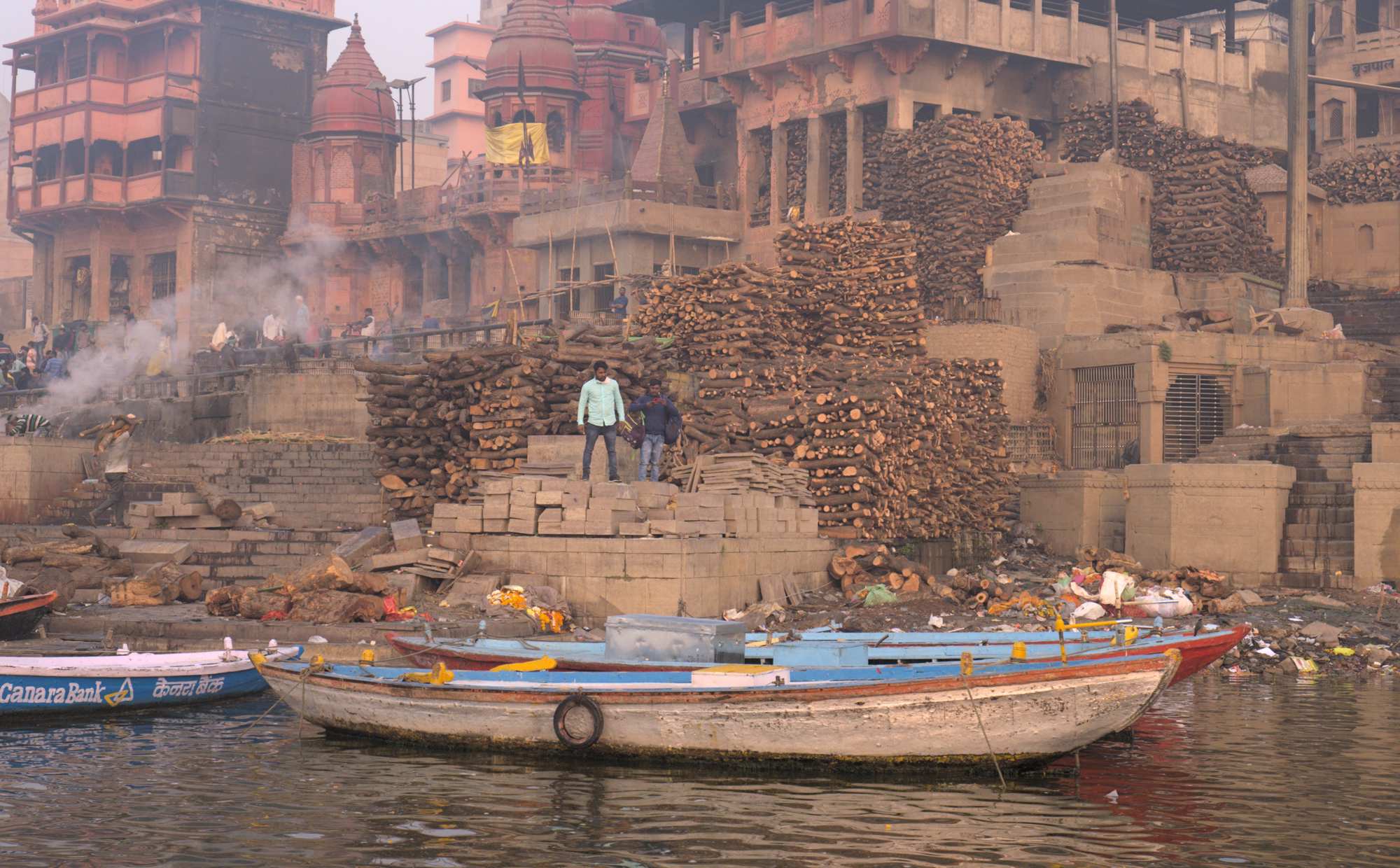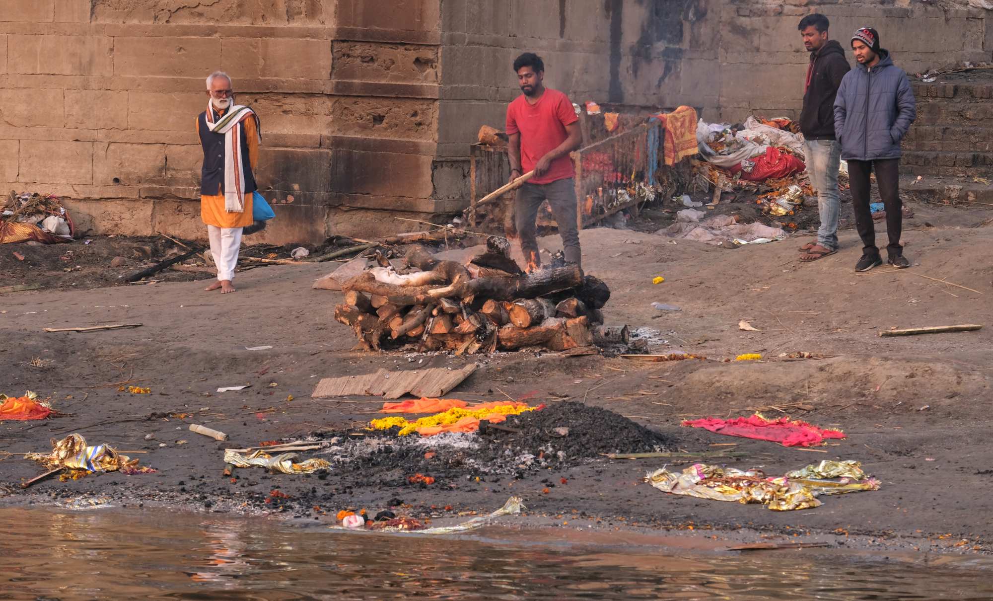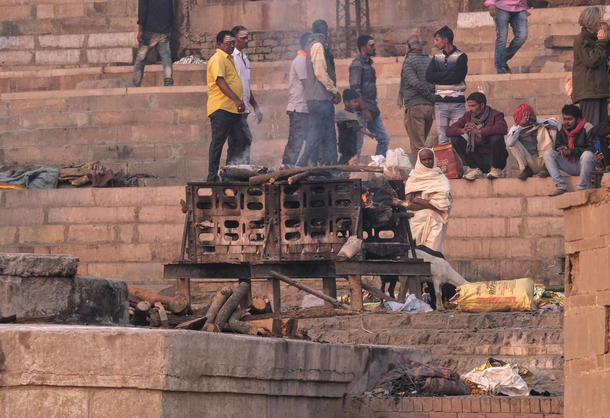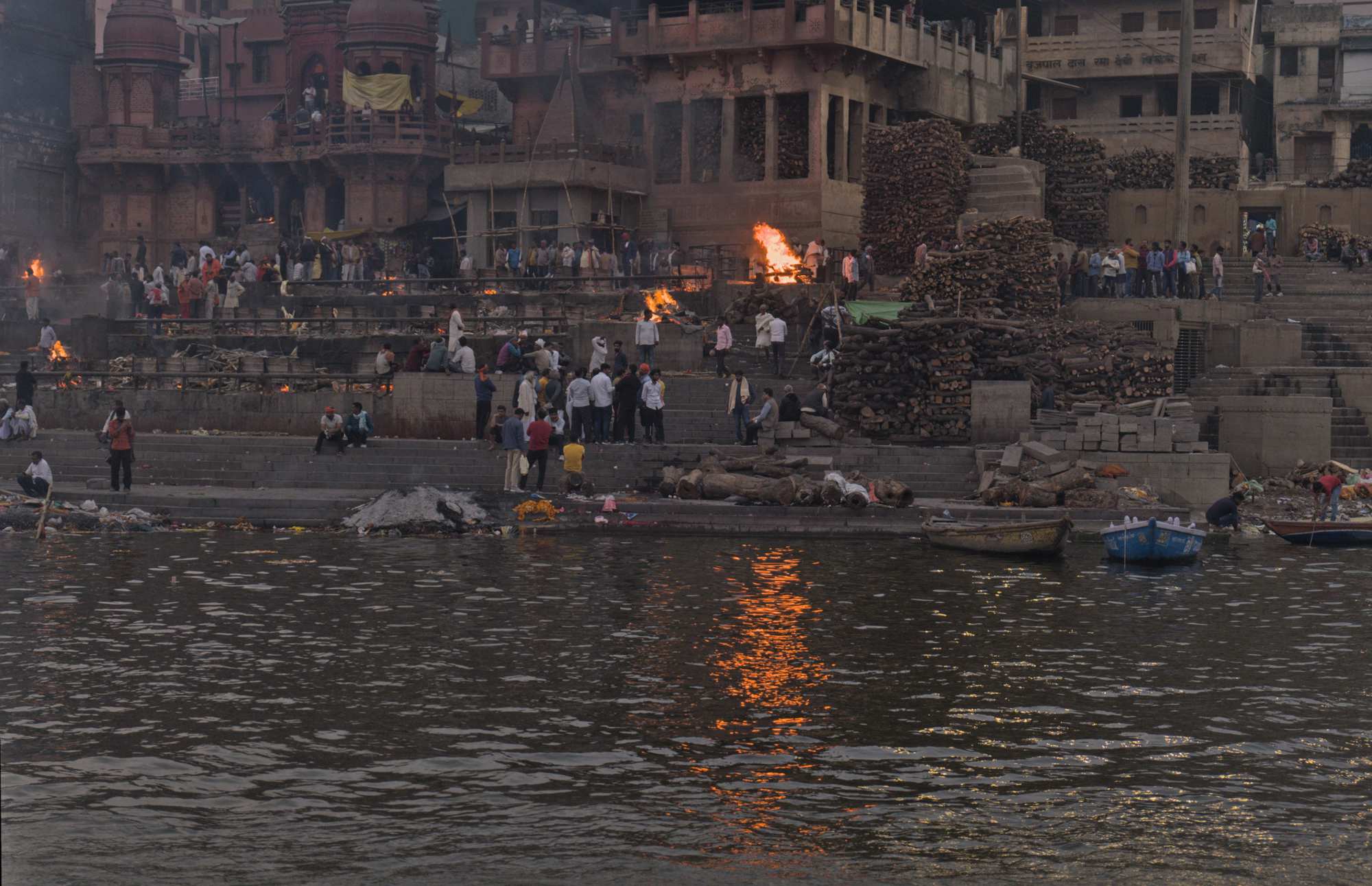 Wenige Meter entfernt werden Leichen verbrannt und deren Asche in den Ganges gestreut.