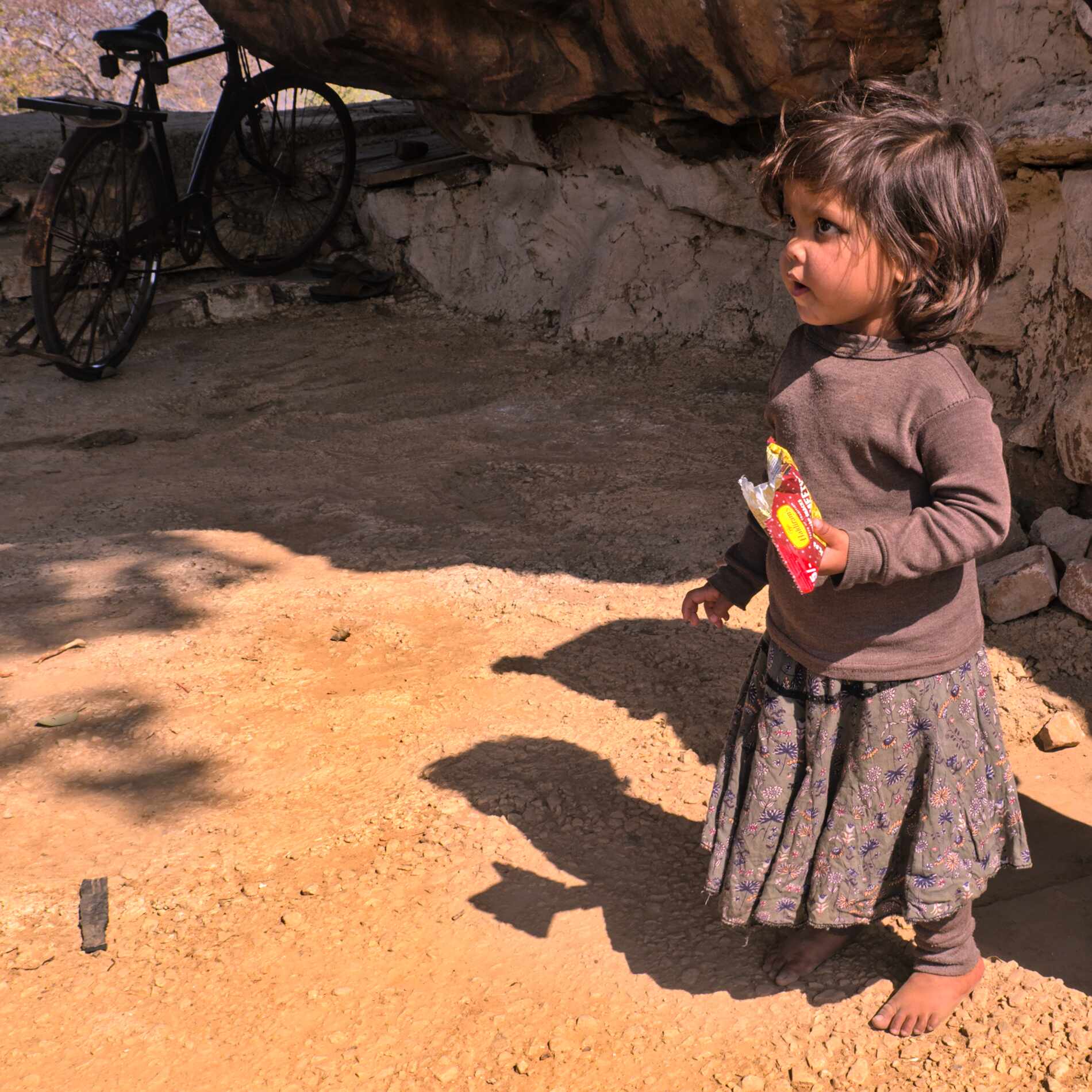 Unterwegs bei einer Pause werden wir eingeladen einen kleinen Felsentempel anzusehen und begegnen dabei dieser jungen Dame.