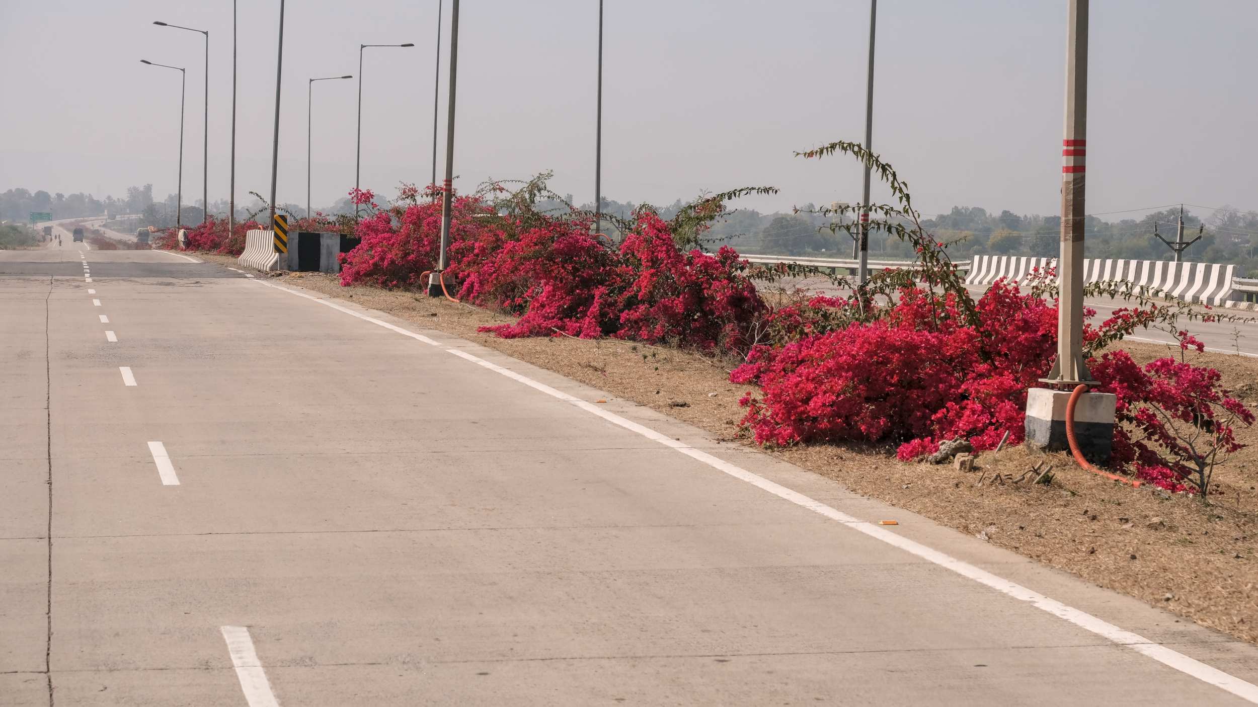 Auf den Mittelstreifen der Schnellstraßen blüht es zur Zeit besonders schön.