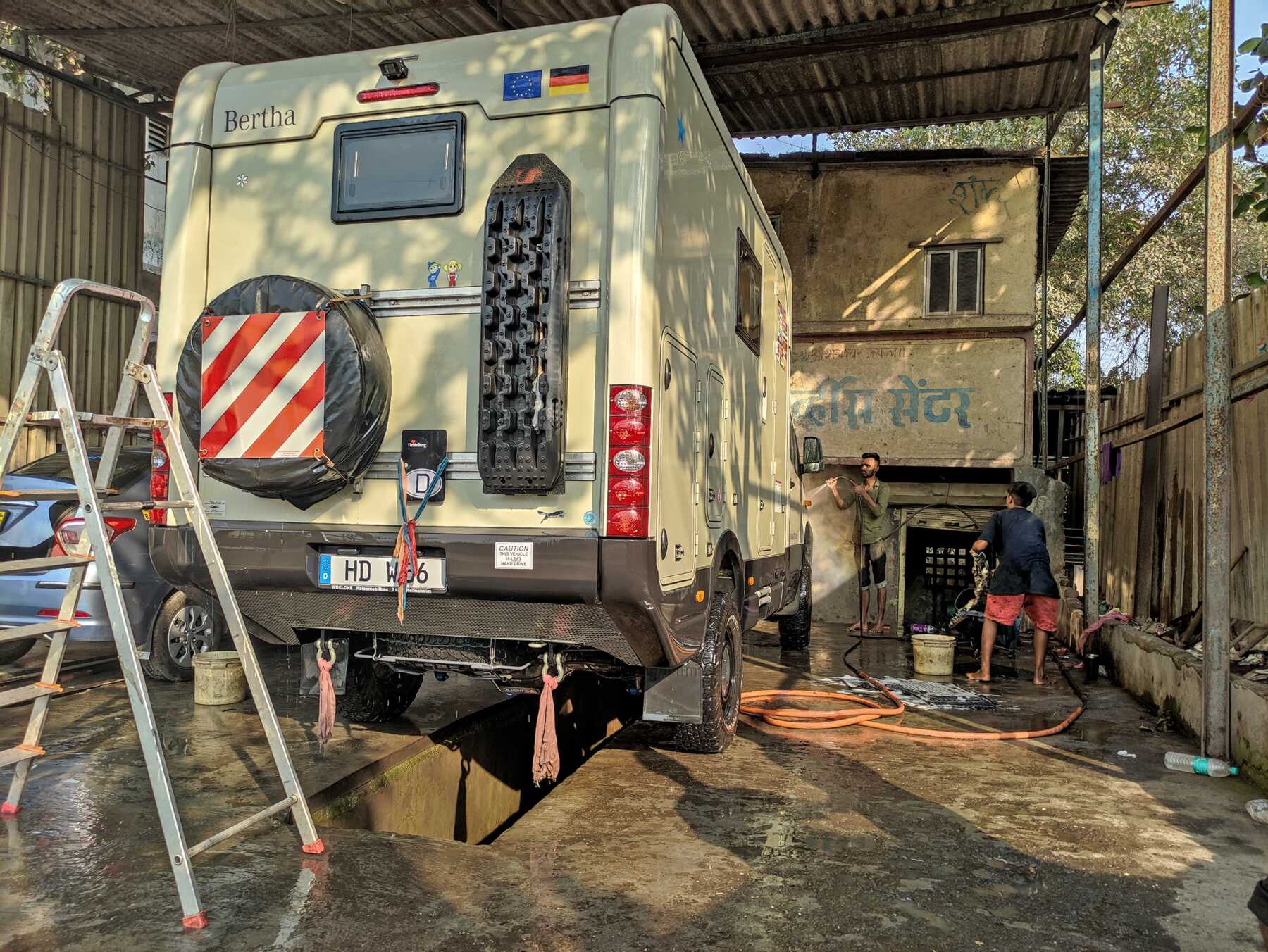 Bertha wird zum zweiten Mal gewaschen, aufs Schiff darf sie nur sauber.