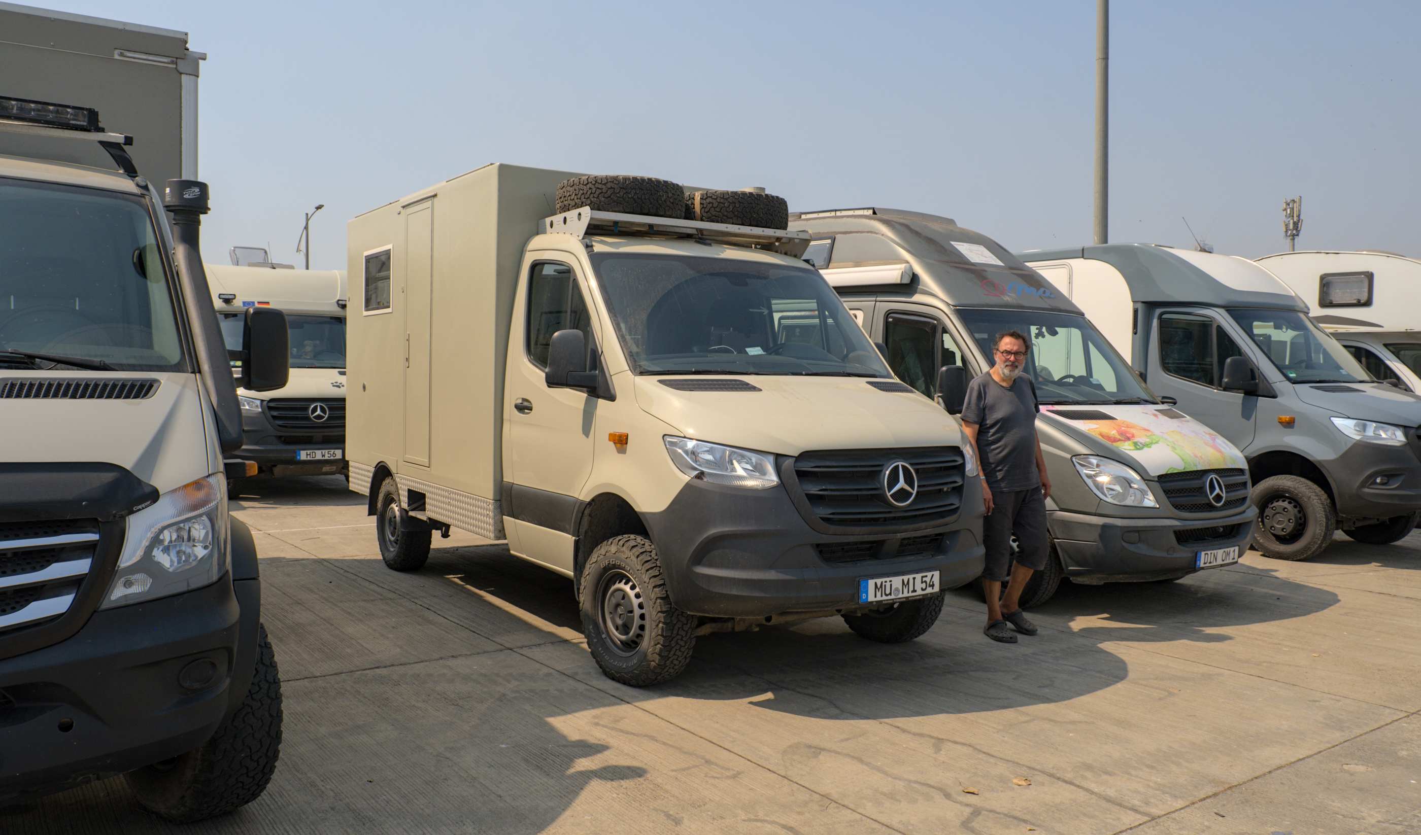 Nach ein paar heißen Tagen, die wir in der Nähe von Mumbai mit Räumen, Packen, Verstauen usw., aber mit Abkühlpool, verbringen, fahren wir zum Hafen und geben unsere Fahrzeuge schweren Herzens ab. Gut drei Wochen werden wir getrennt sein: Maus bleibt in Bertha, Murmel kommt mit uns.
