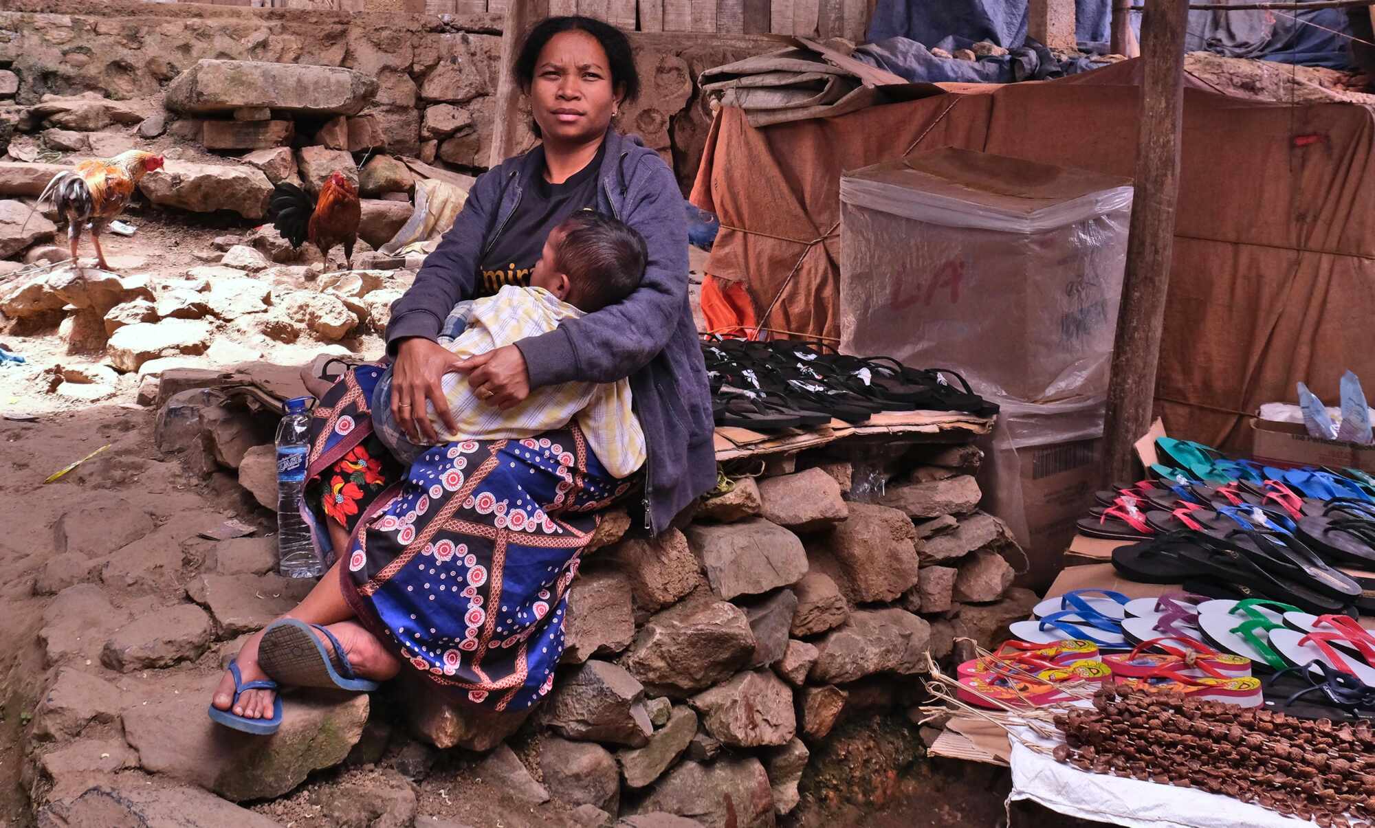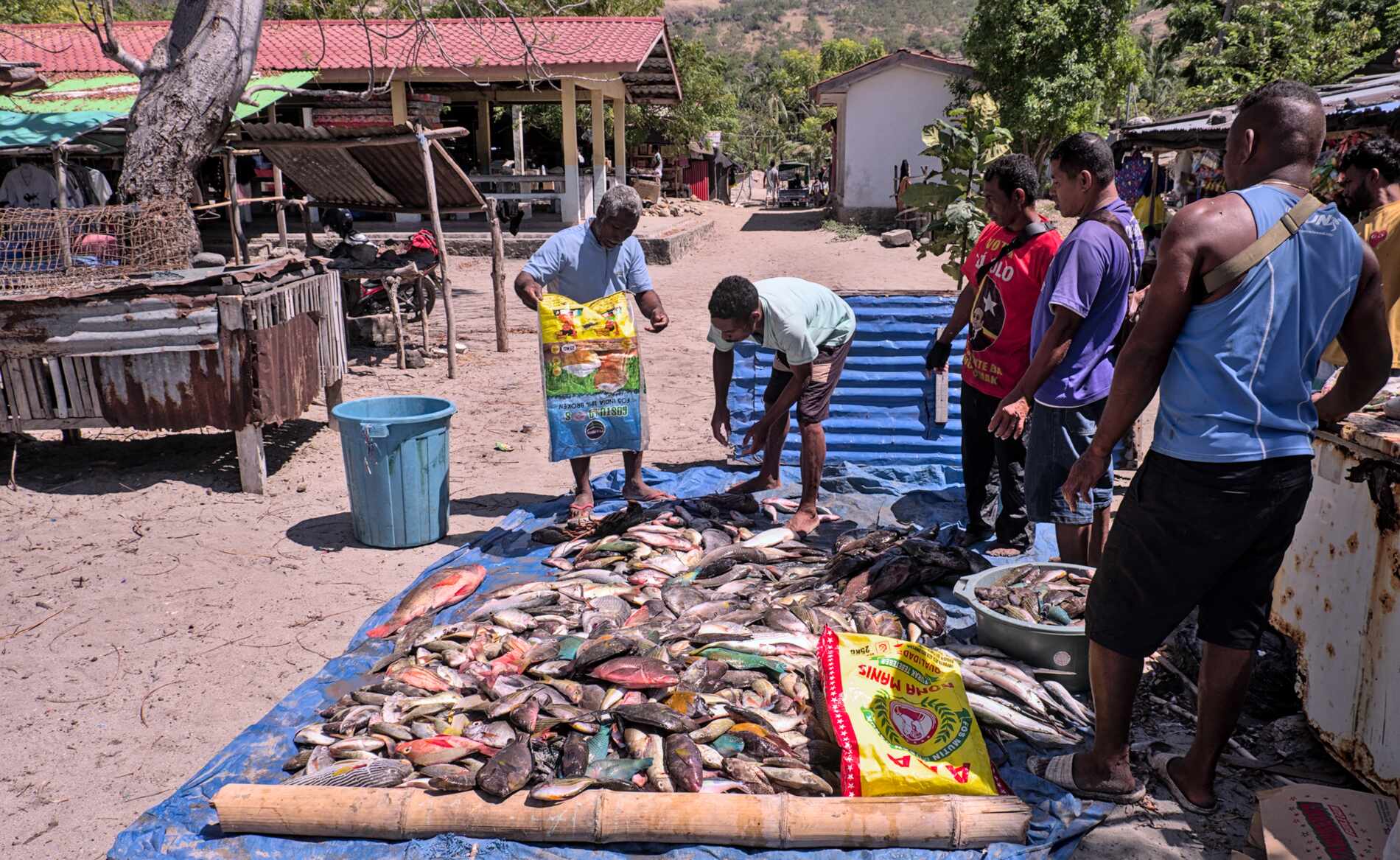 Markttag in Beloi. Die Fähre ist gerade mit vielen Waren angekommen.