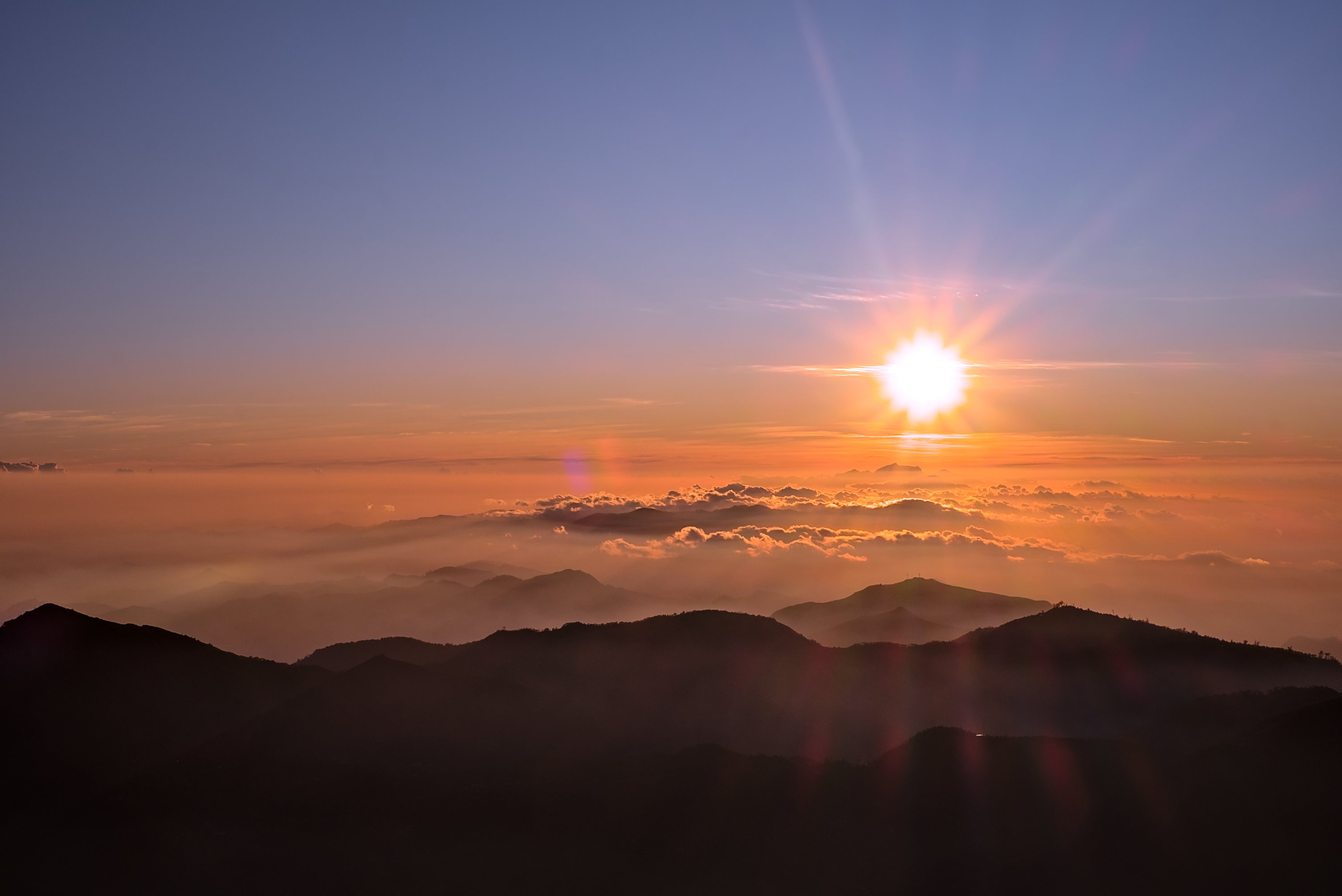 Sonnenaufgang auf dem Gipfel des Tatamailau. Die ersten Strahlen treffen auf die Madonna.