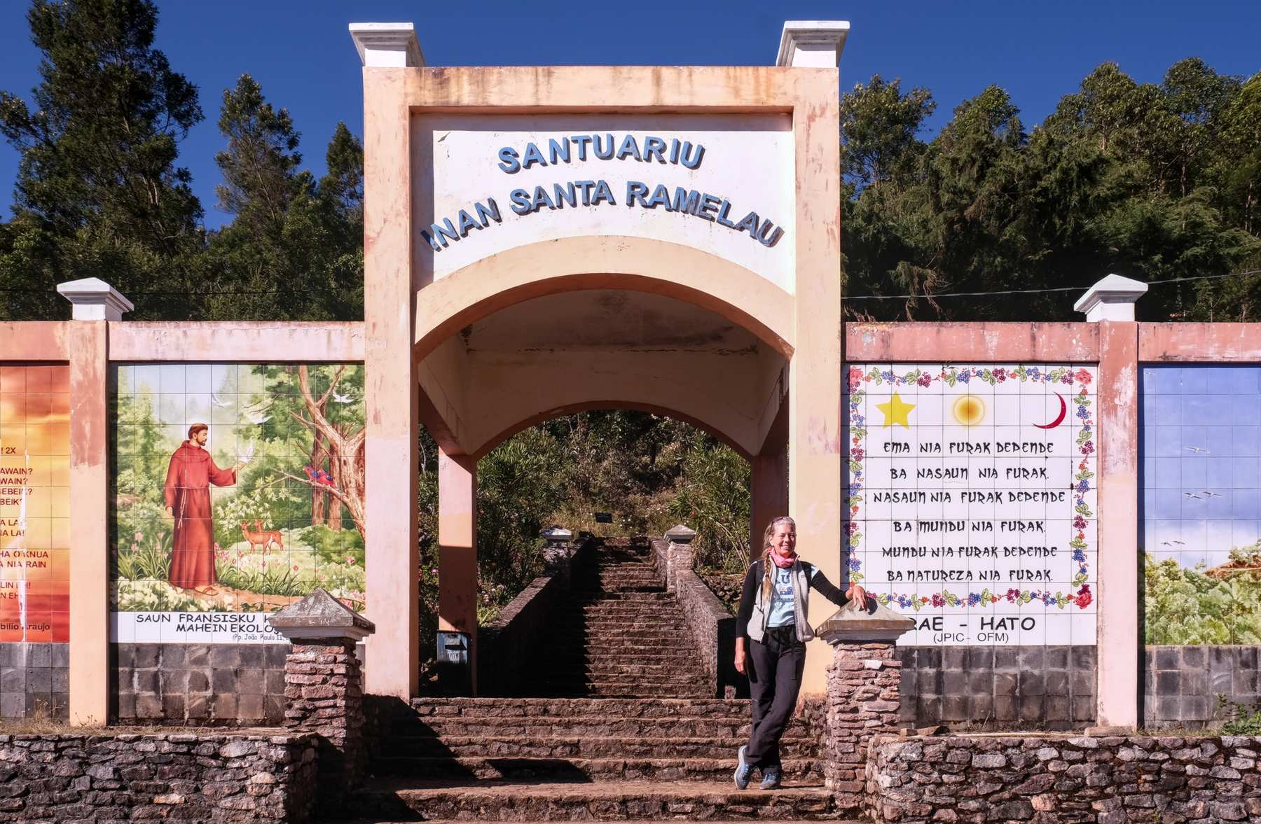 Heute waren wir auf dem Tatamailau, mit 2.963 m der höchste Berg ganz Timors und einen Meter höher als die Zugspitze. Dazu sind wir gestern 5 Stunden mit einem Geländewagen, Fahrer und nicht geordertem Führer durchs schöne "Inland" Osttimors chauffiert worden und haben uns ein paar Sehenswürdigkeiten angesehen. Heute um 3 Uhr noch ein Stück Richtung Berg gefahren und dann zum Gipfel mit Marienstatue gestiegen. Toller Sonnenaufgang, aber bitterkalt. Blick über die ganze Insel und die Eilande ringsum, u. a. auf Ataúro, wo wir die nächsten 14 Tage verbringen werden.