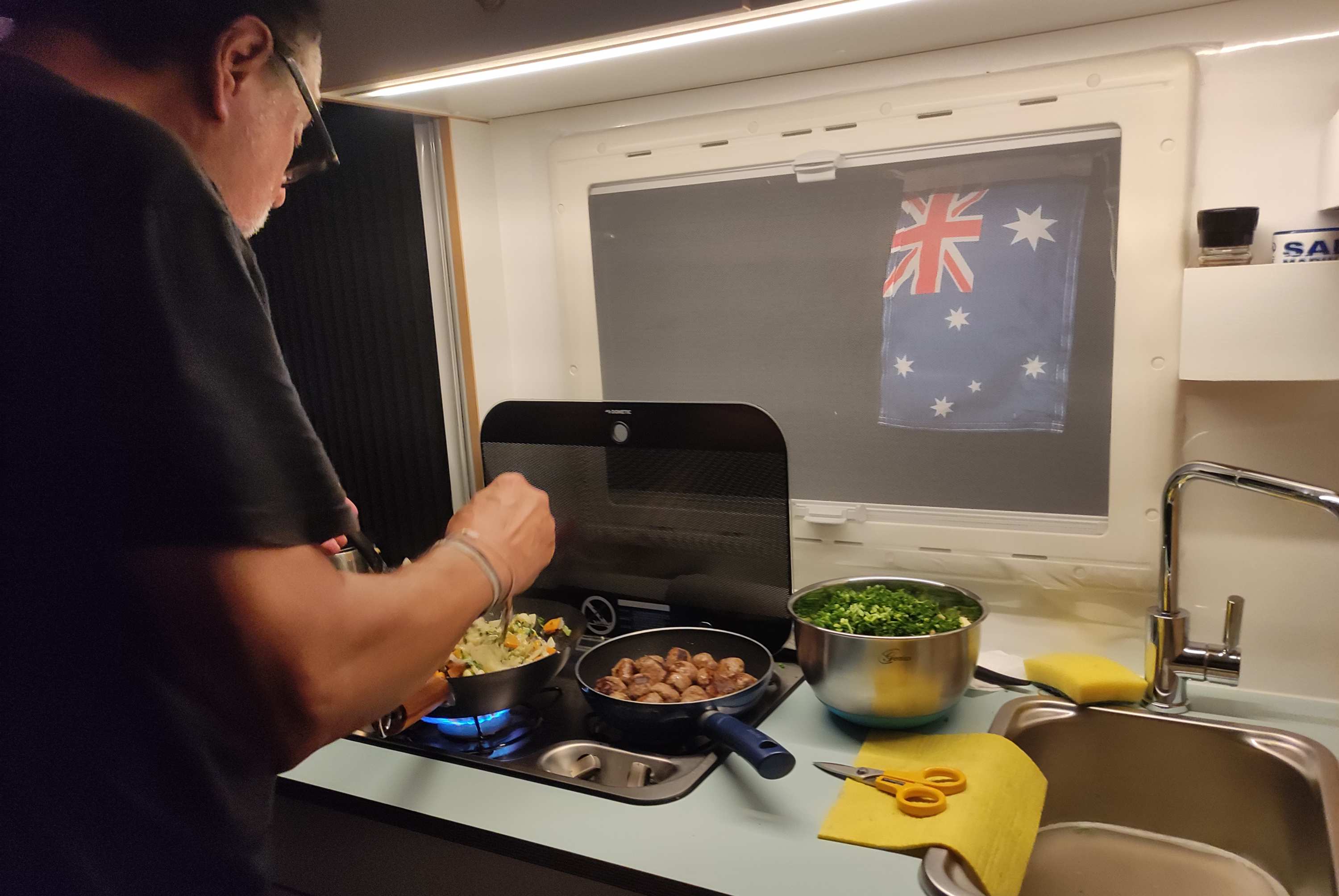 Die Regenzeit beginnt, die Brut schlüpft aus ihren Löchern und will hinein in Bertha. Was die zusätzlichen Moskitonetze (Brautschleier) nicht aufhalten, wird gegrillt.