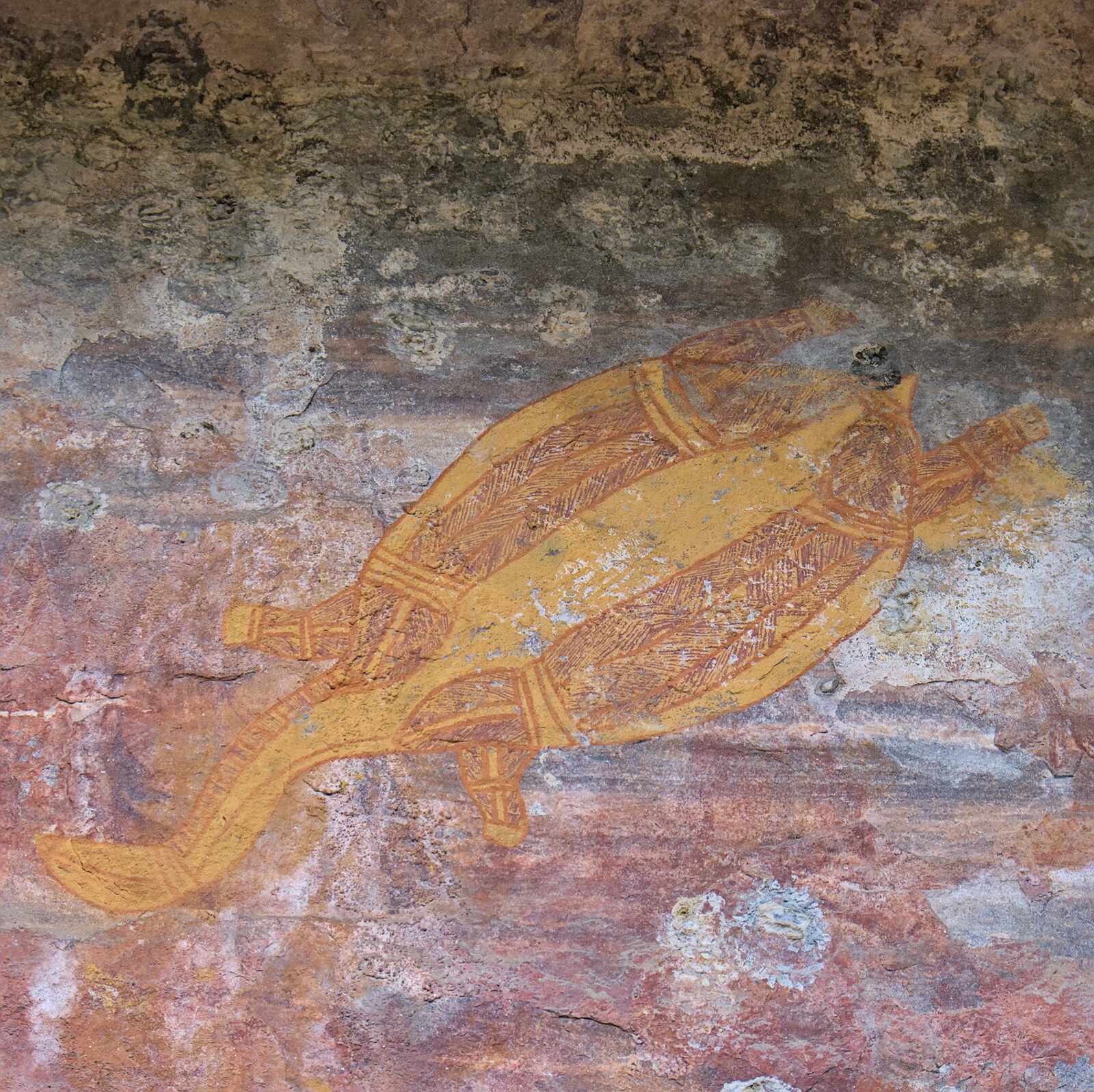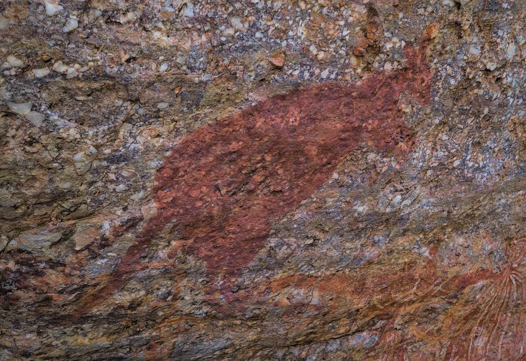 Auch am Fluss gibt es Felszeichnungen. Besonders schön sind die Kängurus.